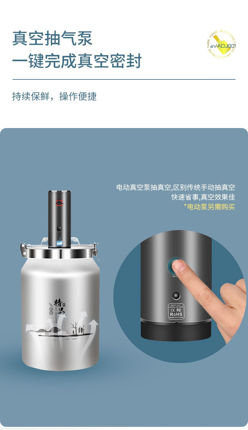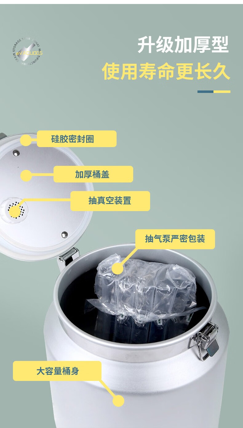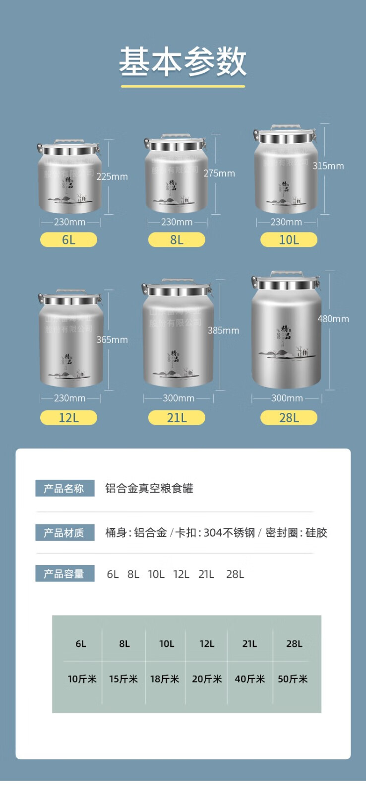 Qiyi Fuhai Qiyi vacuumable aluminum alloy rice barrel vacuum storage 304 stainless steel insect-proof, mildew-proof and moisture-proof household 28L+ pump
