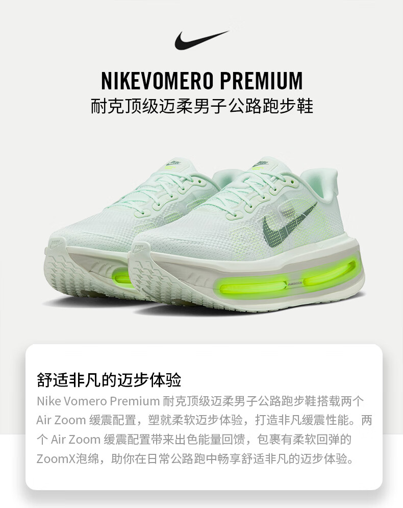 Nike NIKE Men's Running Shoes VOMERO PREMIUM Valentine's Day Gift Running Shoes HQ2050-300 Green 45
