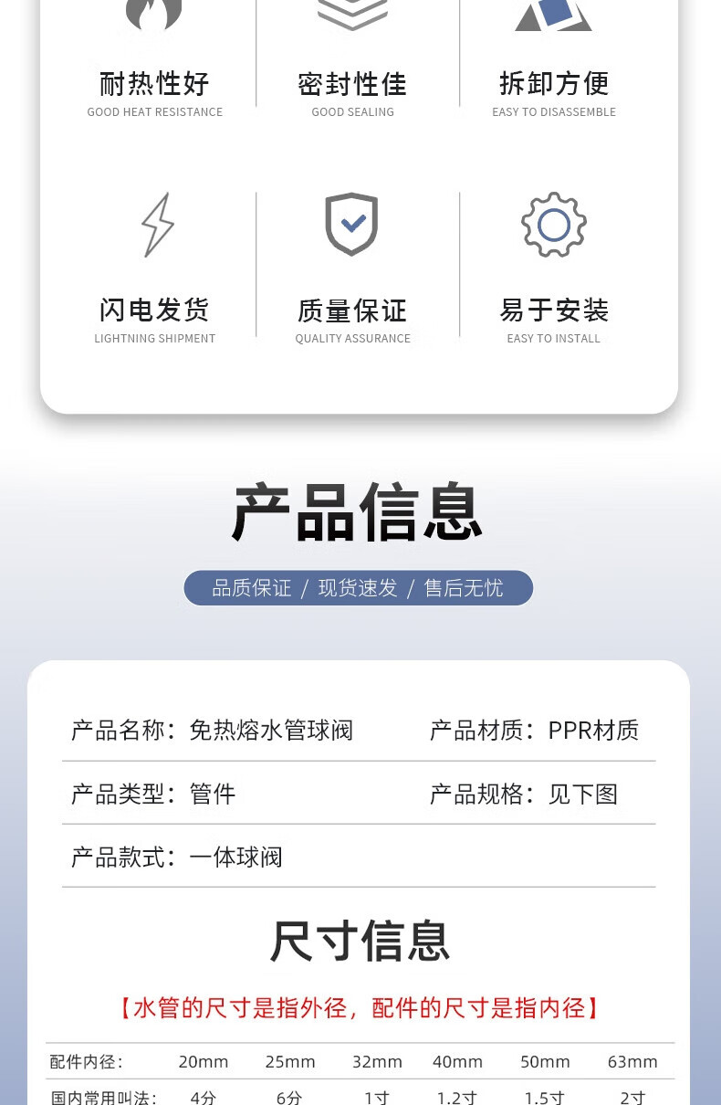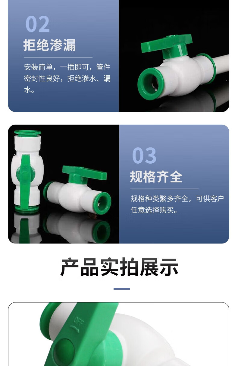 Masifo ppr hot melt-free ball valve quick-connect water pipe ball valve accessories straight-in direct accessories 6-point integrated ball valve