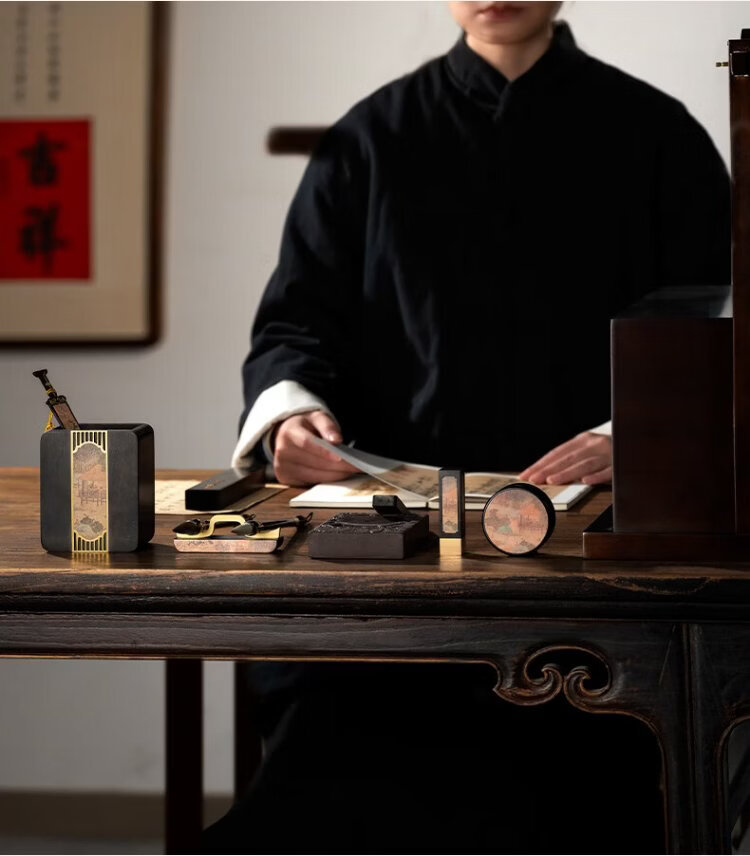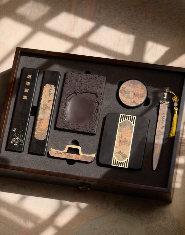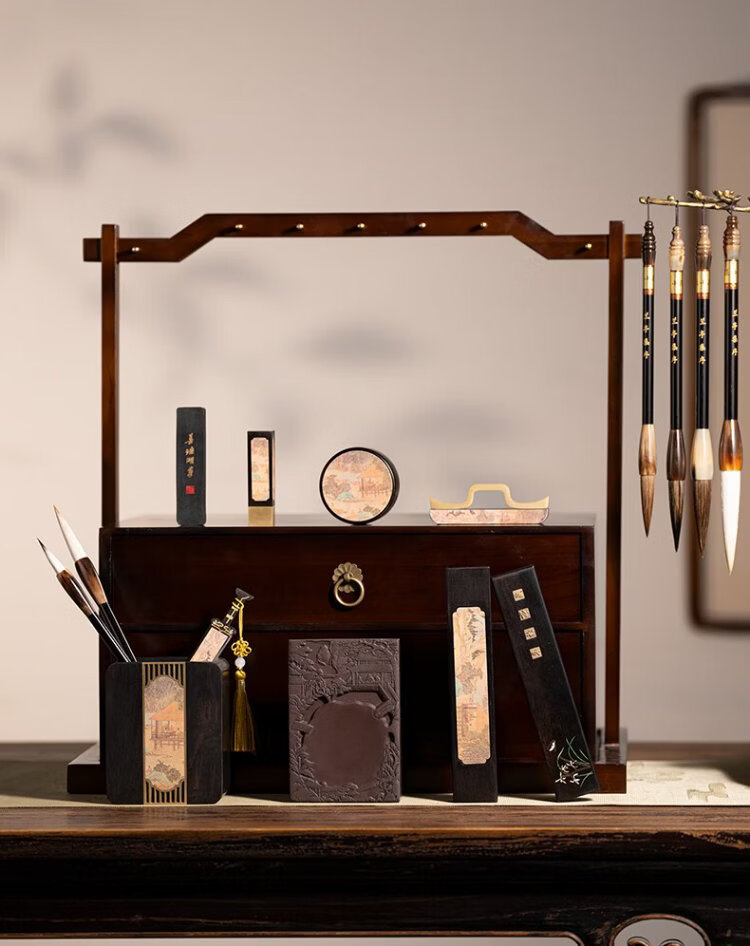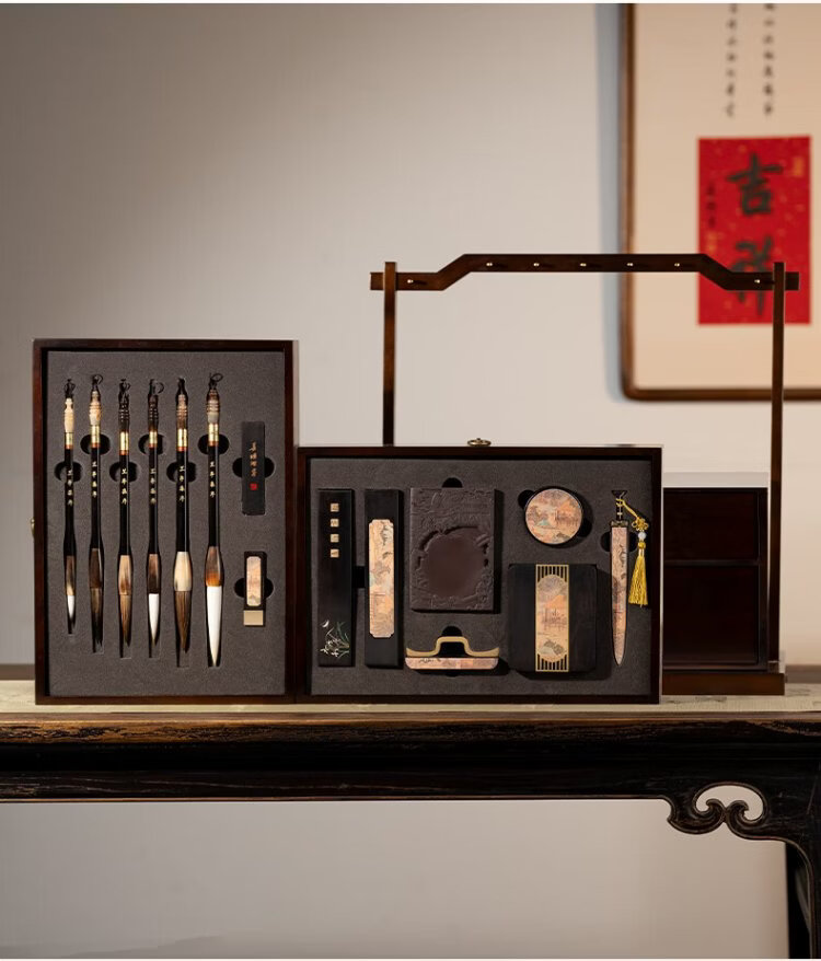 Shanlianhu Pen, Lanting Yaji, Four Treasures of the Study Set, Master's Handmade High-end Brush Set, Pen, Ink, Paper, Inkstone, Lang Hao Duan Inkstone, High-end Calligraphy, Personal Use, New Year's Gift Box