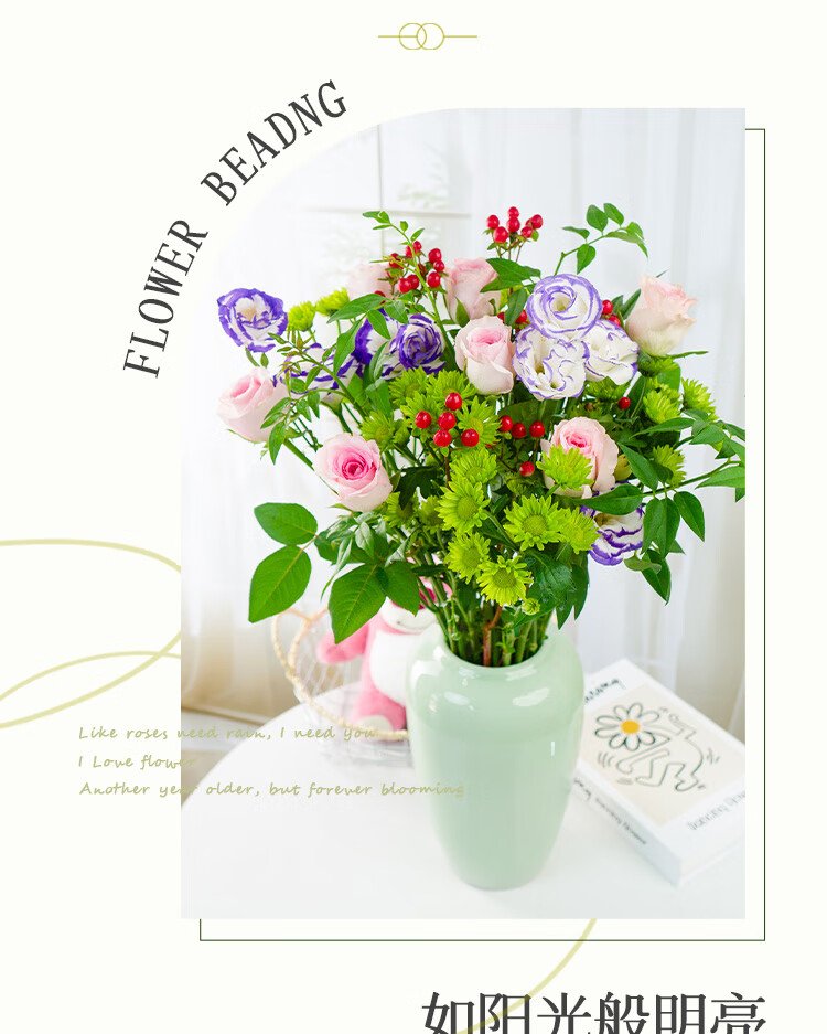 Jingdong Flowers (Zen Lotus Heart)-Kunming Flower Base Straight Hair Roses Lily Multi-head Bouquet Flowers Straight Hair Source