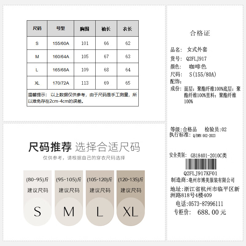 China (cm) 160-165/84-86 165-170 / 88-90 167-172 / 92-96 168-173 / 98-102 170-176 / 106-110