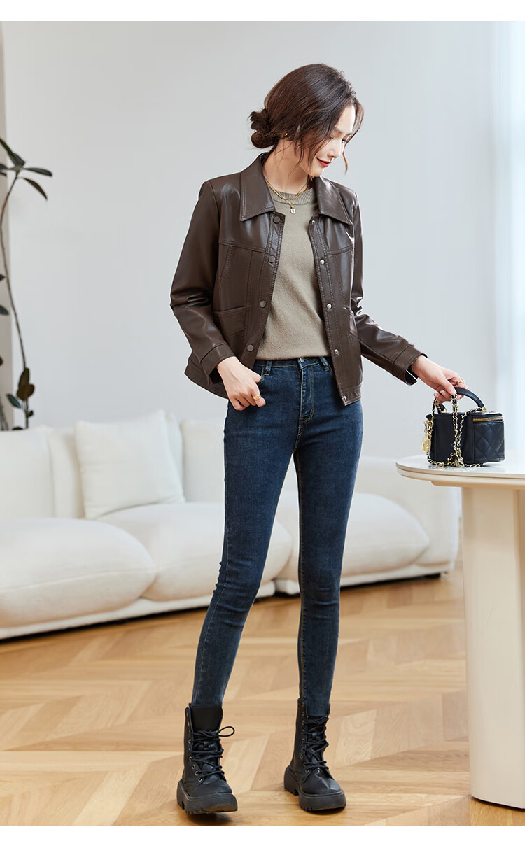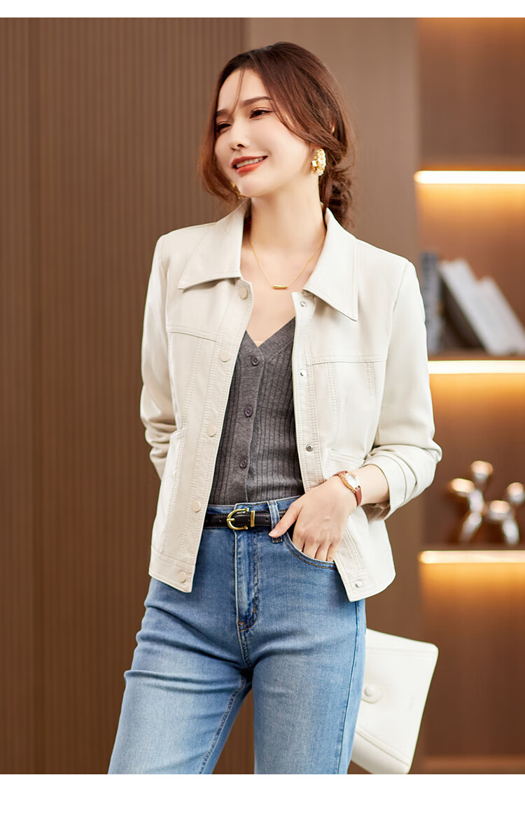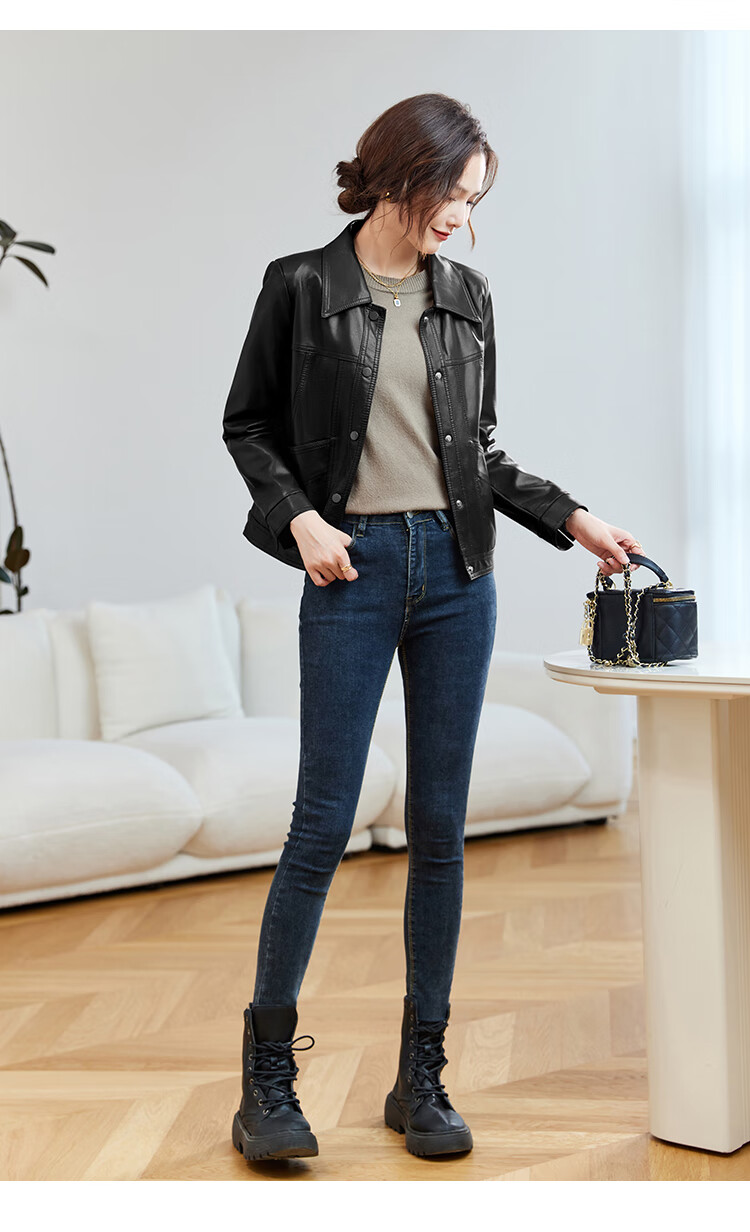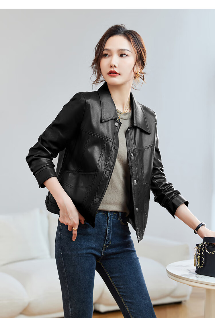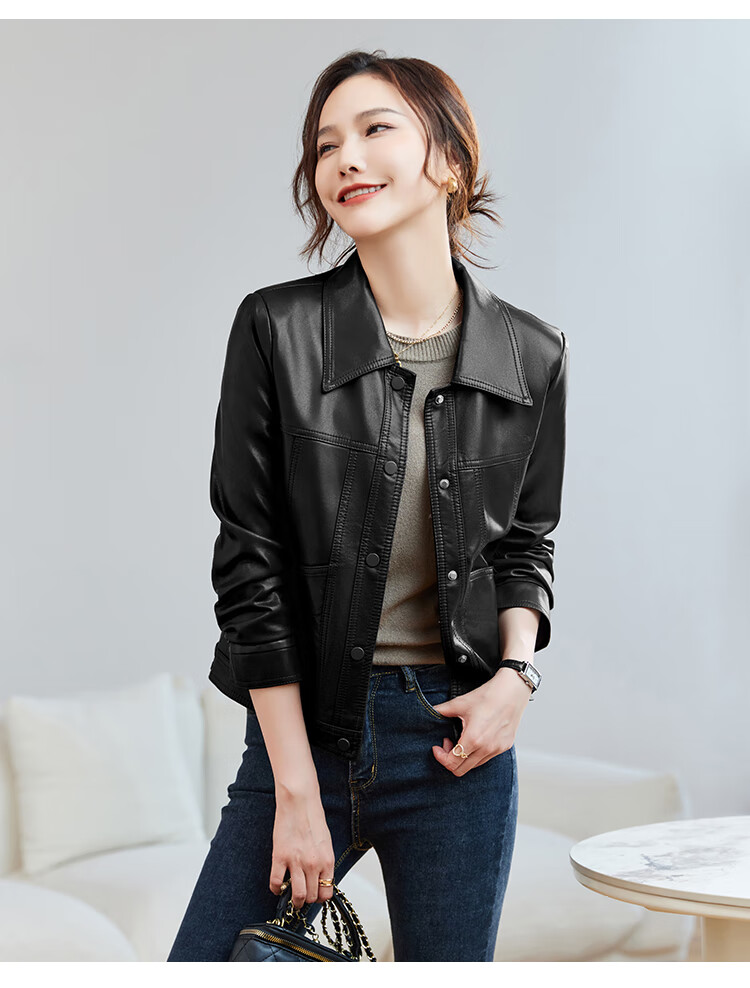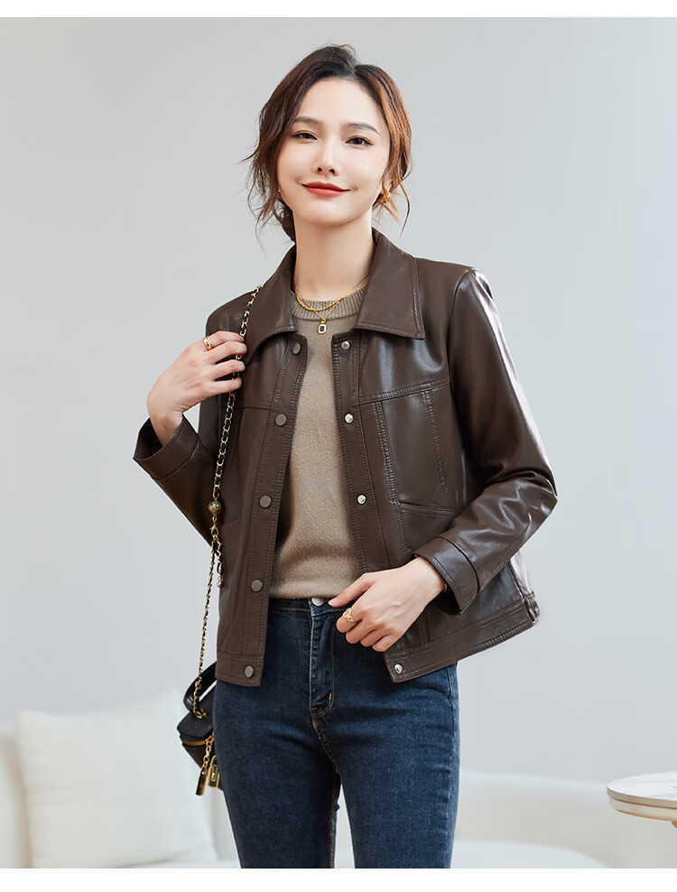 TERRE BLEUE Leather Jacket for Women 2025 Autumn New Loose Slim Small Design Single-breasted PU Leather Motorcycle Jacket