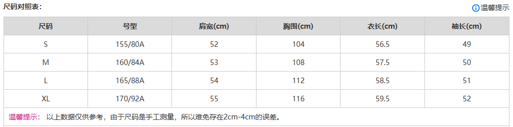 China(cm) 72-76 76-81 81-87 87-93 93-98