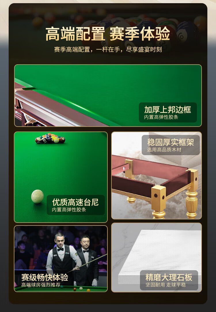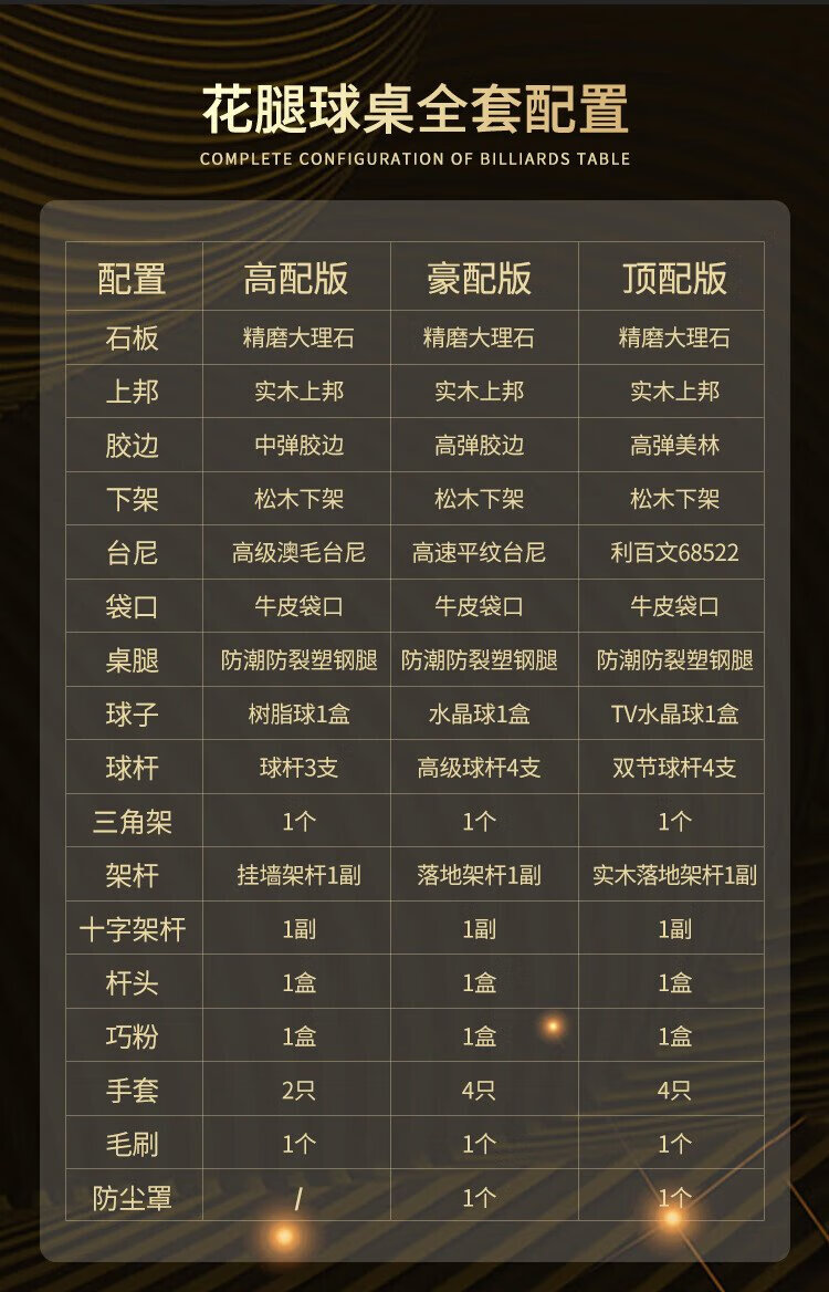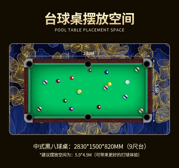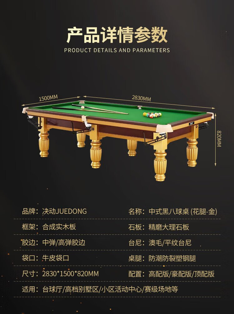 Determined billiard table standard black eight or nine feet gold leg marble billiard table Chinese ball hall high configuration package installation FH103