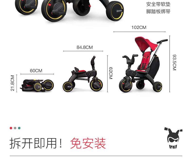 DOONA Liki S3 stroller for children 1-3 years old, tricycle, artifact bicycle, lightweight and foldable S3 bluestone green (official stock)