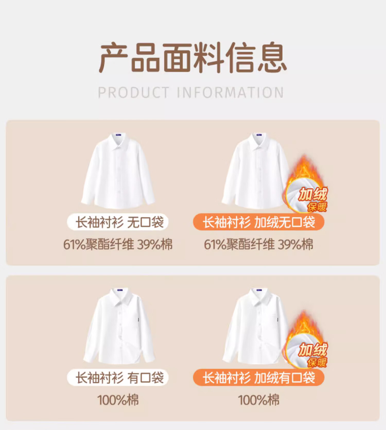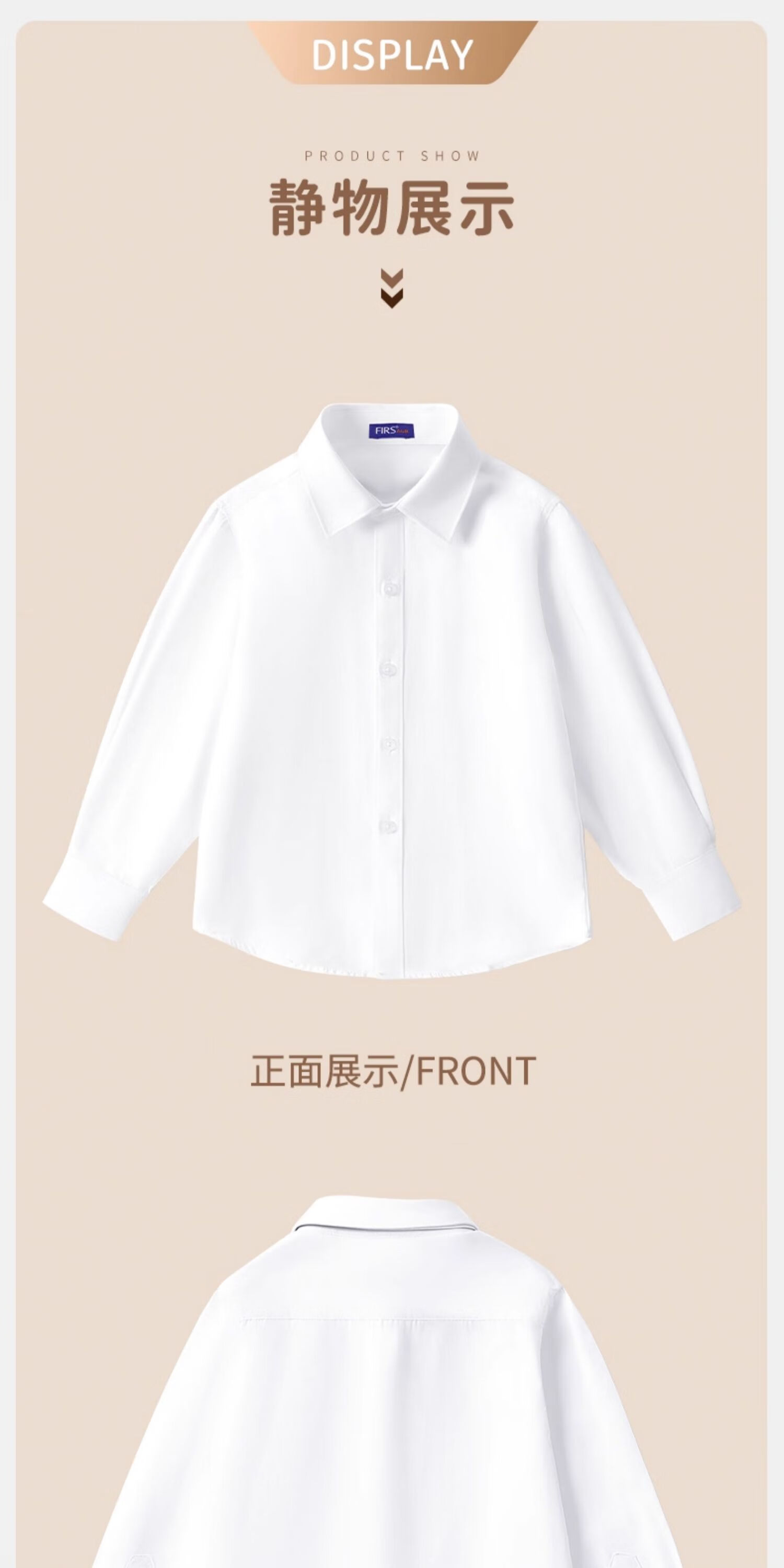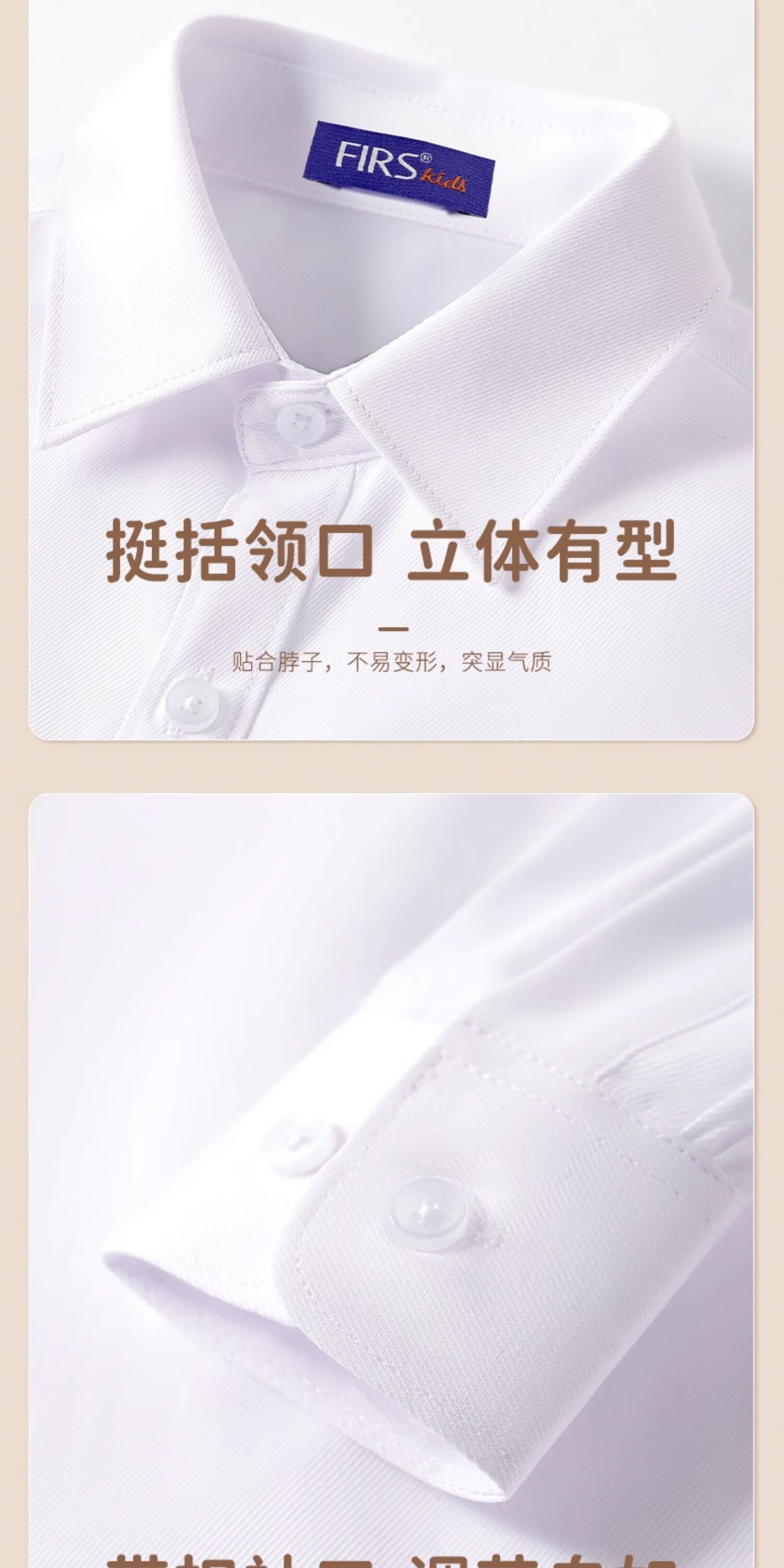 Shanshan boys' white shirt autumn and winter long-sleeved velvet children's white shirt primary school uniform performance clothing white 150