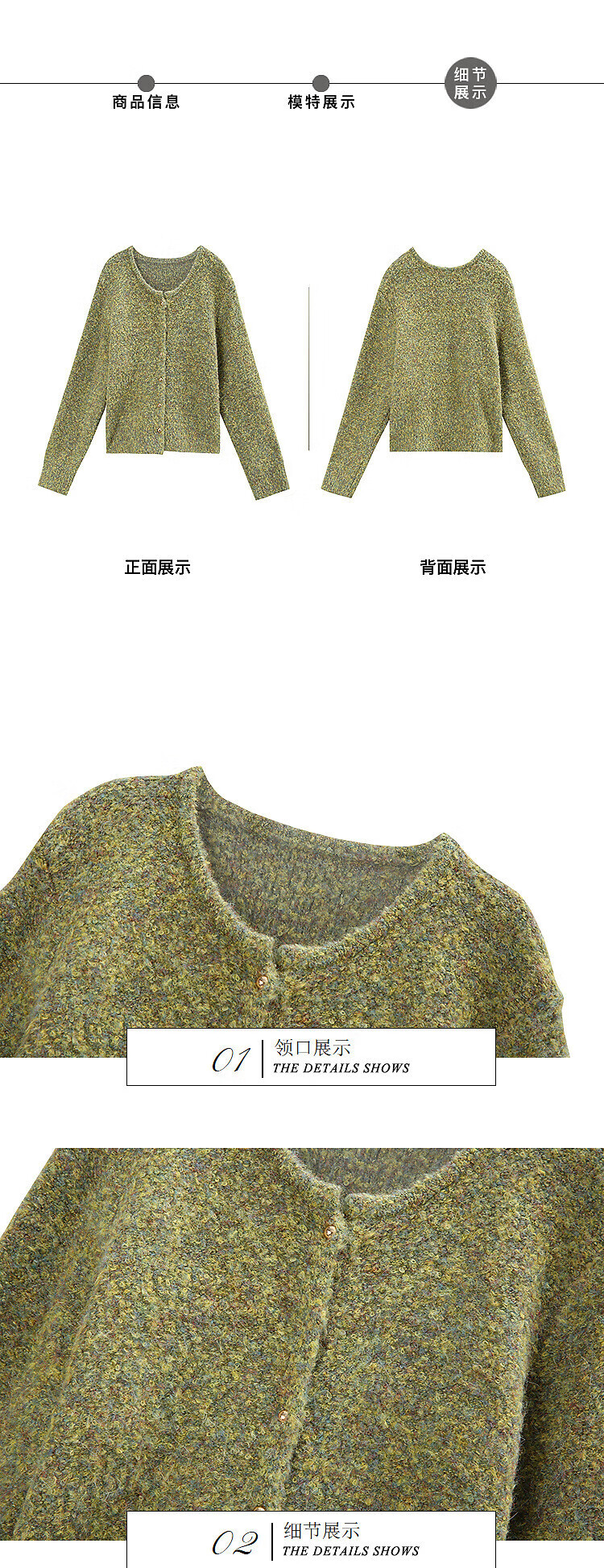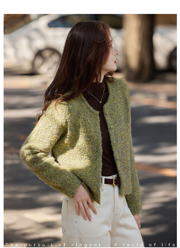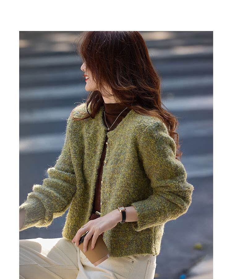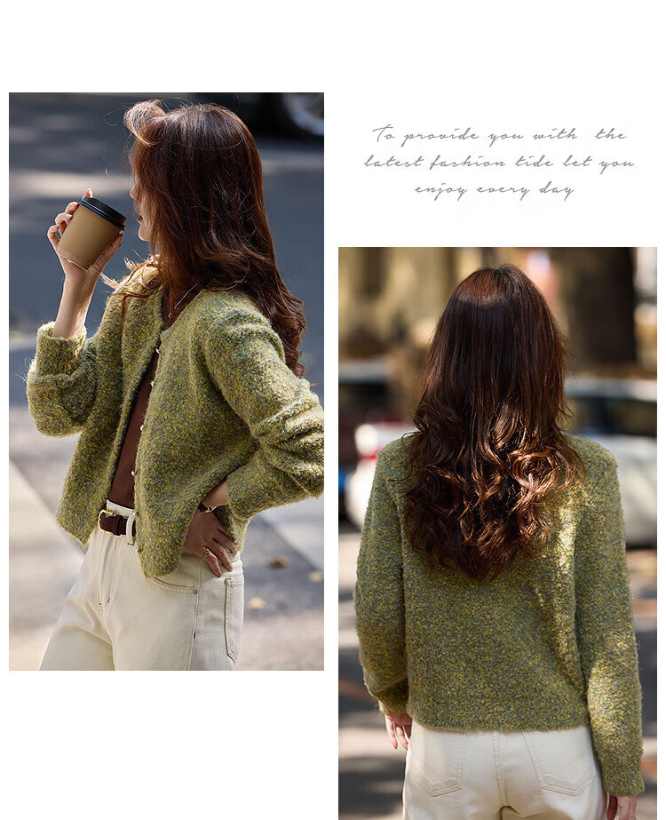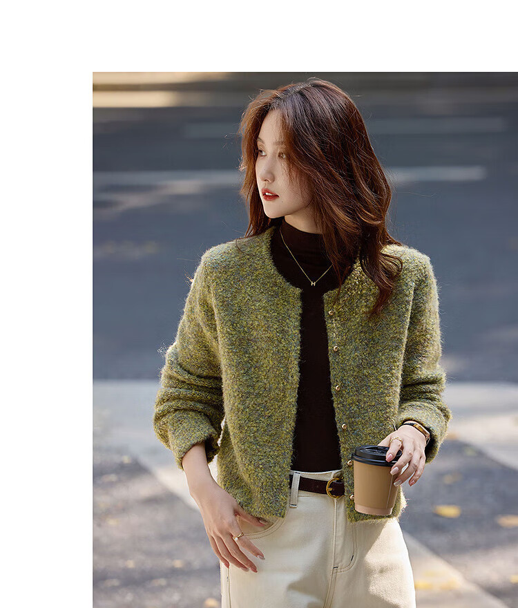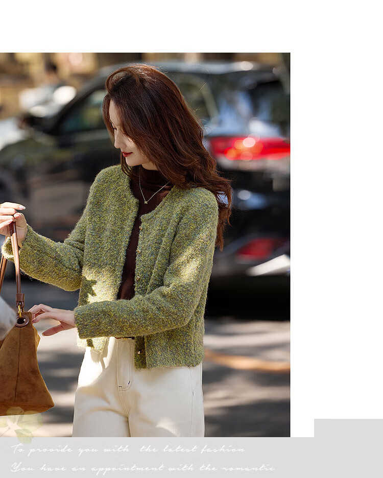 Awakening paradise, lazy variegated brushed winter fashion short knitted sweater cardigan for small people, dark green, one size fits all