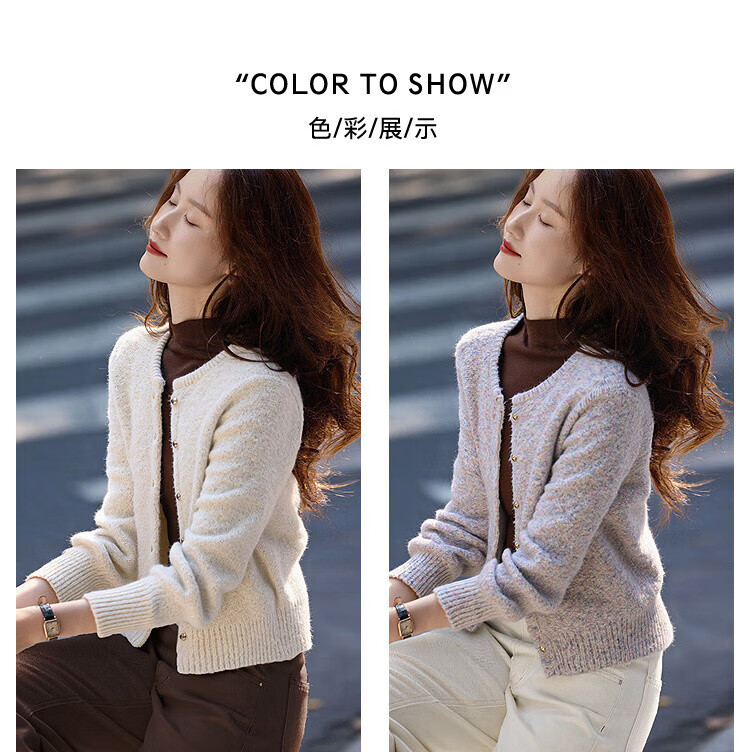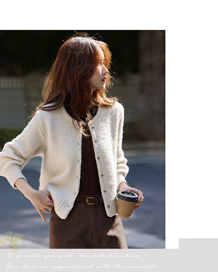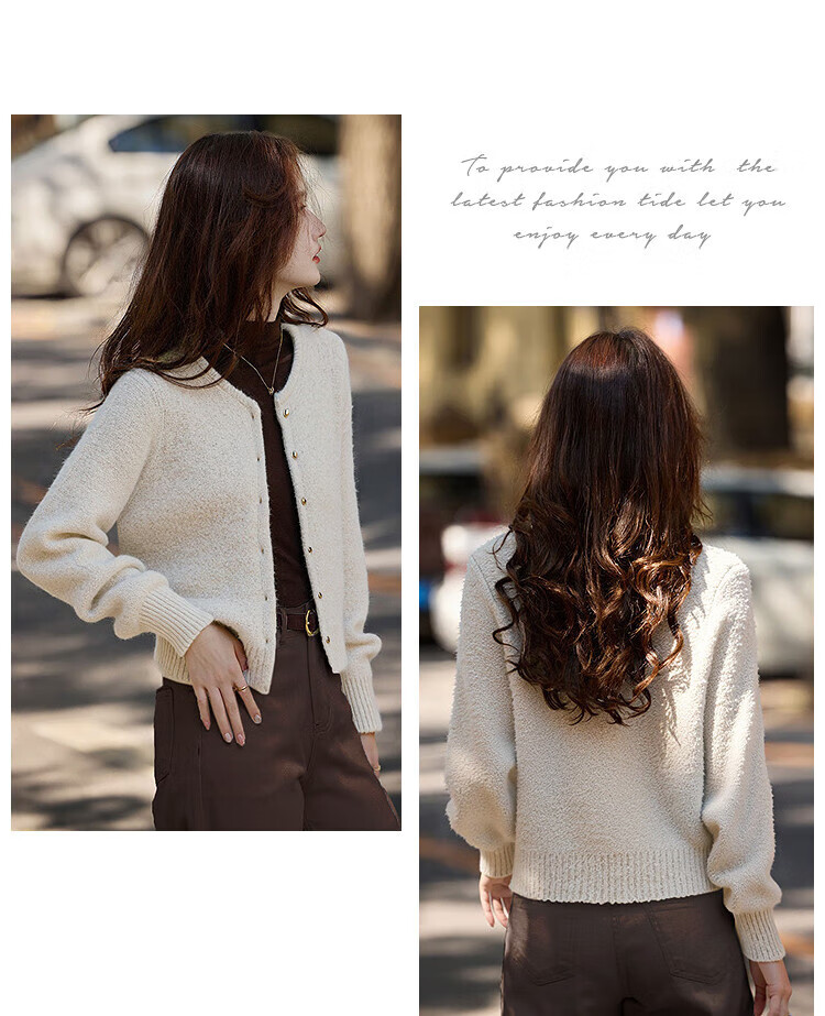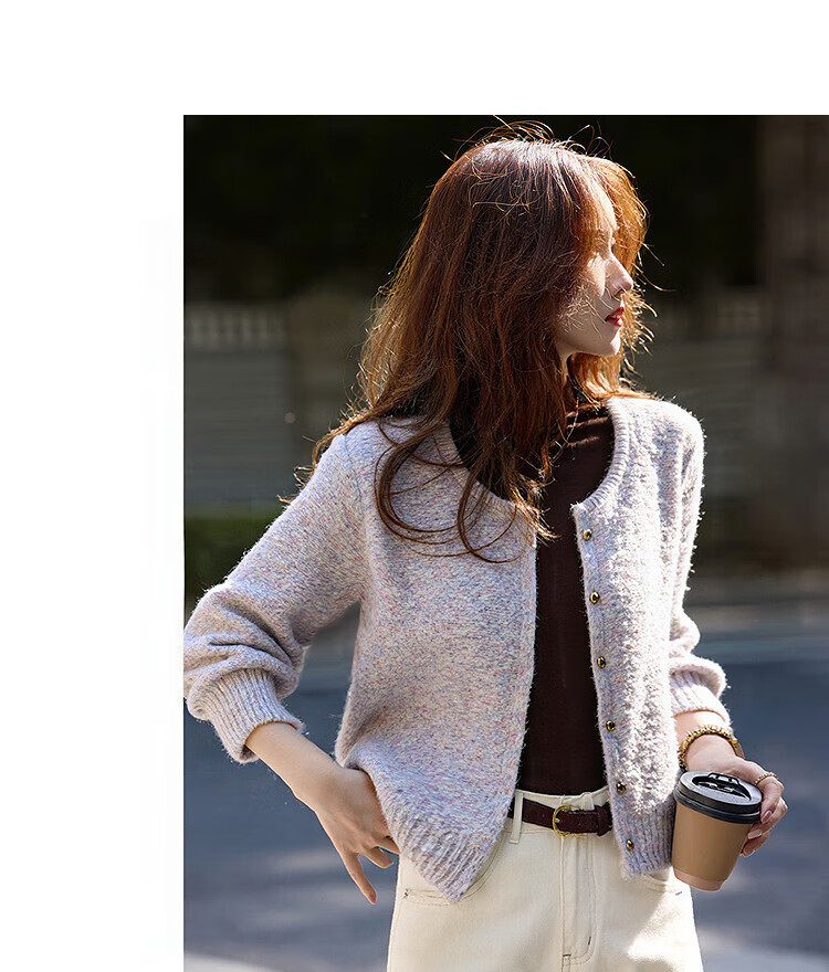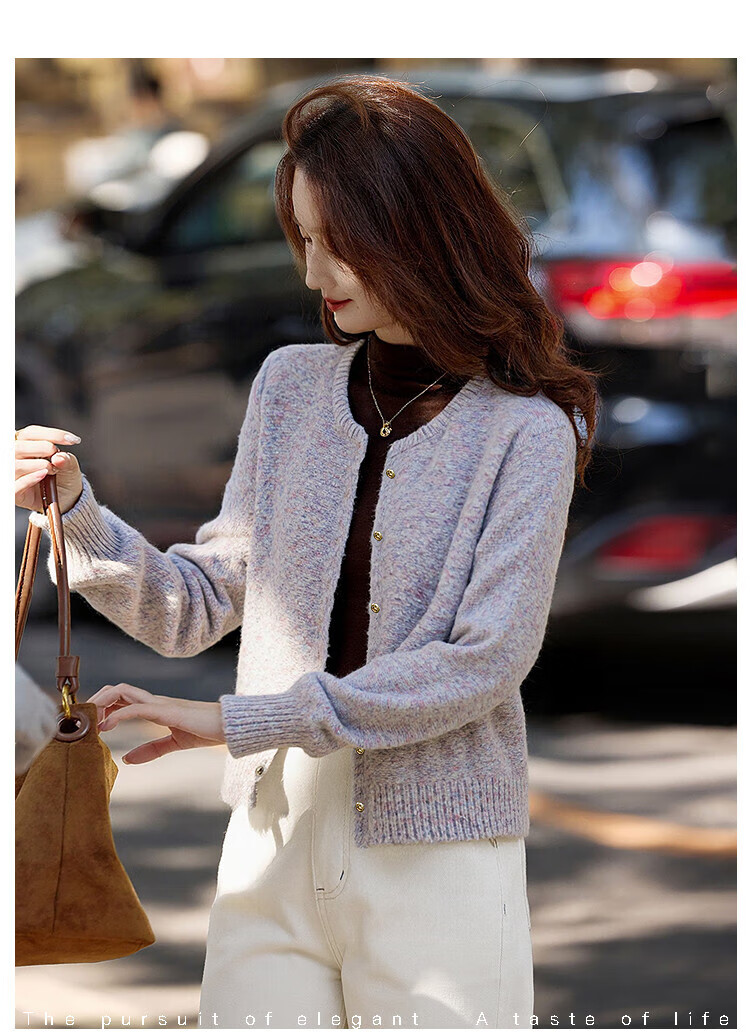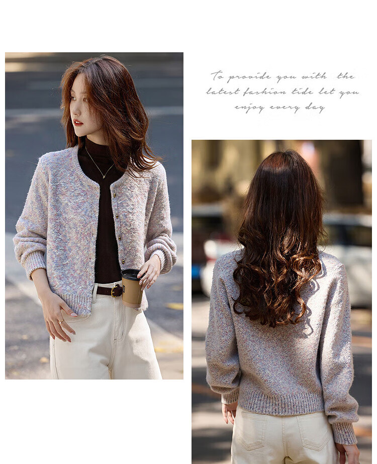 Awakening paradise, lazy variegated brushed winter fashion short knitted sweater cardigan for small people, dark green, one size fits all
