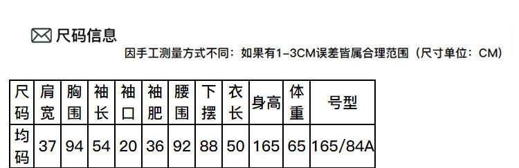 China (cm) 160-165/84-86 165-170 / 88-90 167-172 / 92-96 168-173 / 98-102 170-176 / 106-110