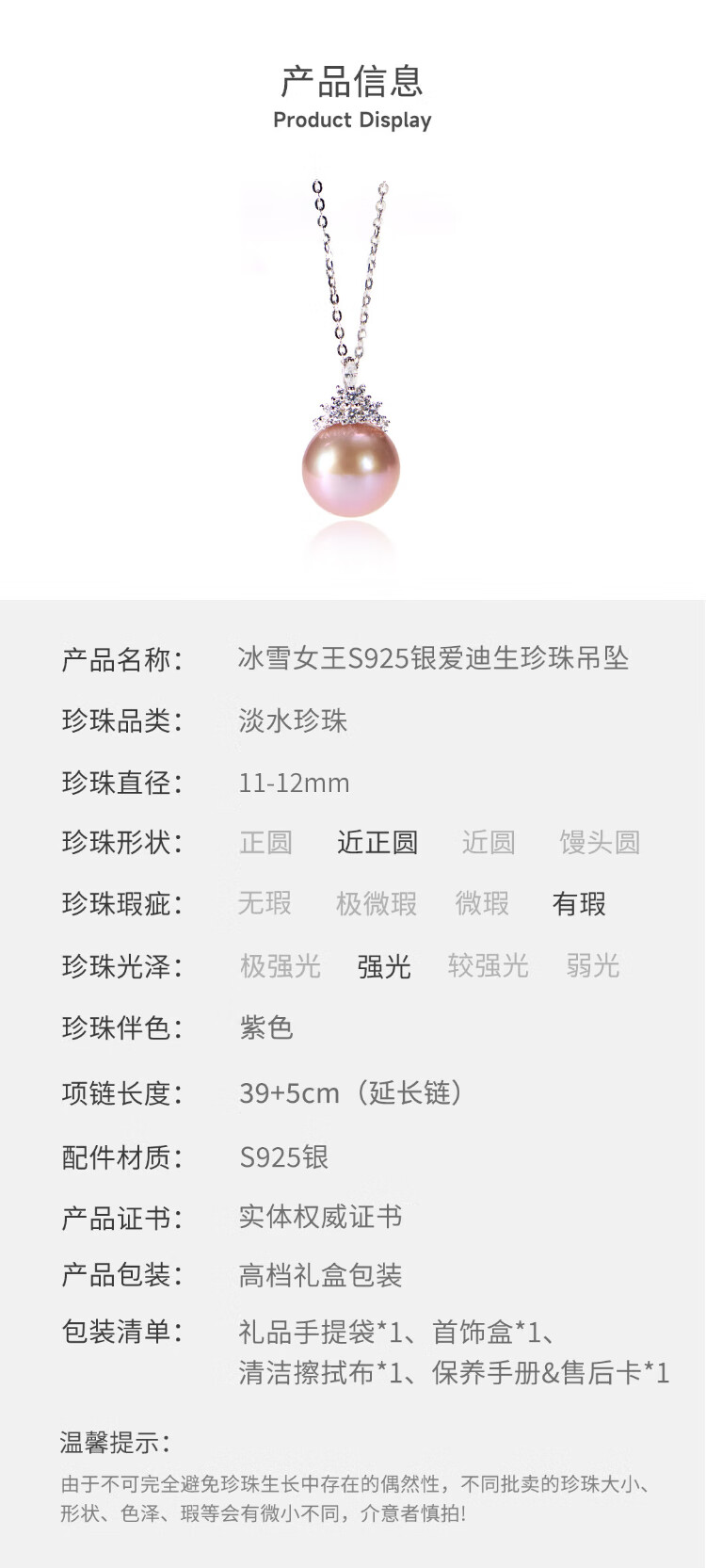 Angel's Tears Freshwater Pearl Necklace Pendant S925 Silver Edison Purple Pearl Ice Queen 11-12mm Birthday Gift for Women