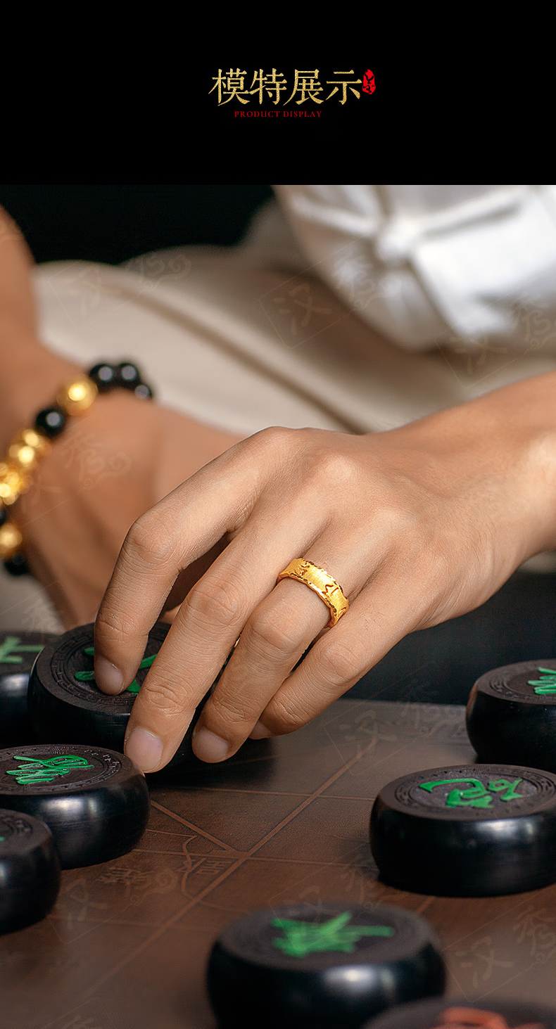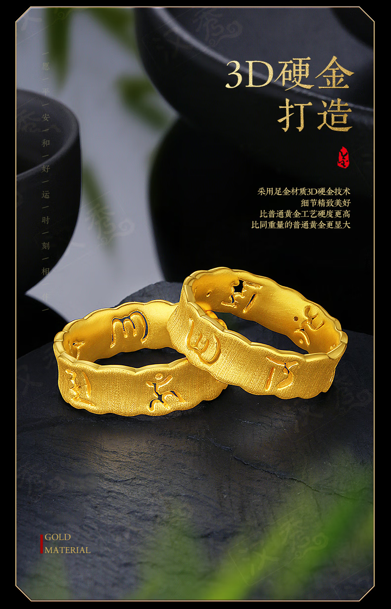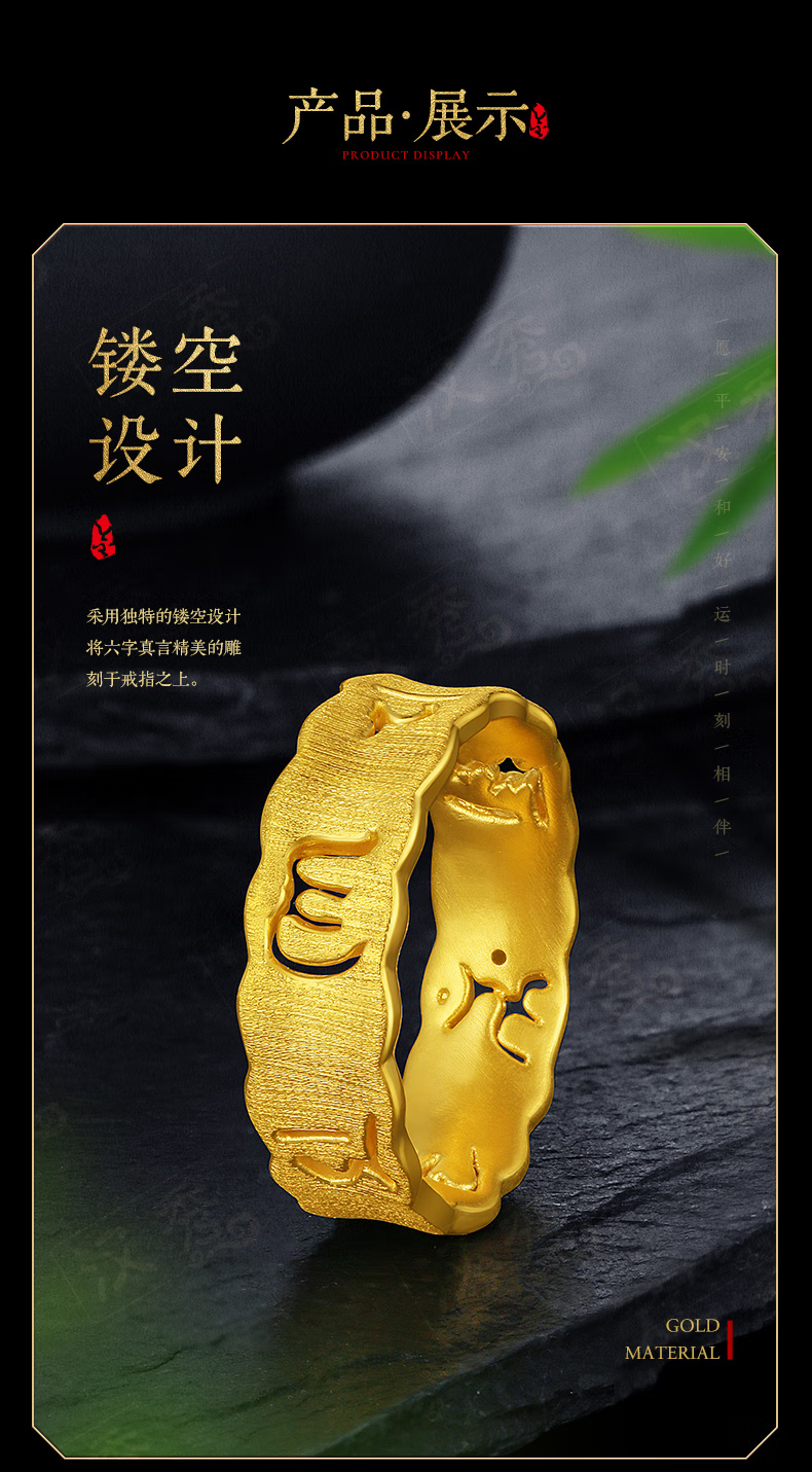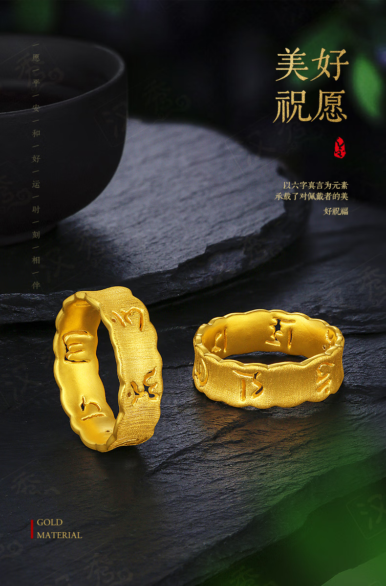 Hanxiu gold ring pure gold six-character motto for men and women, couple ring 3D hard gold ring for birthday, girlfriend, wife, No. 15 (gold weight about 2.8 grams) pre-sale