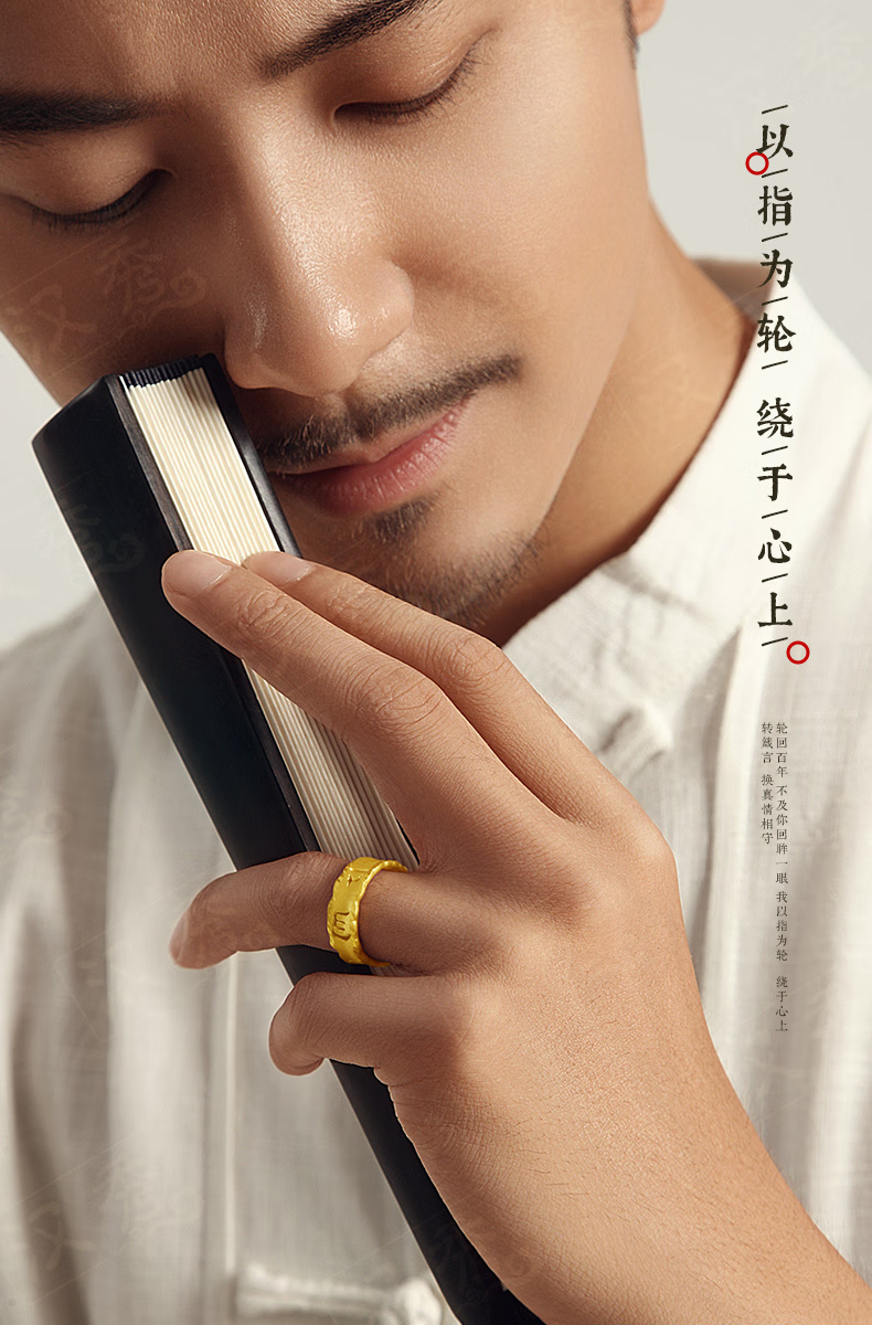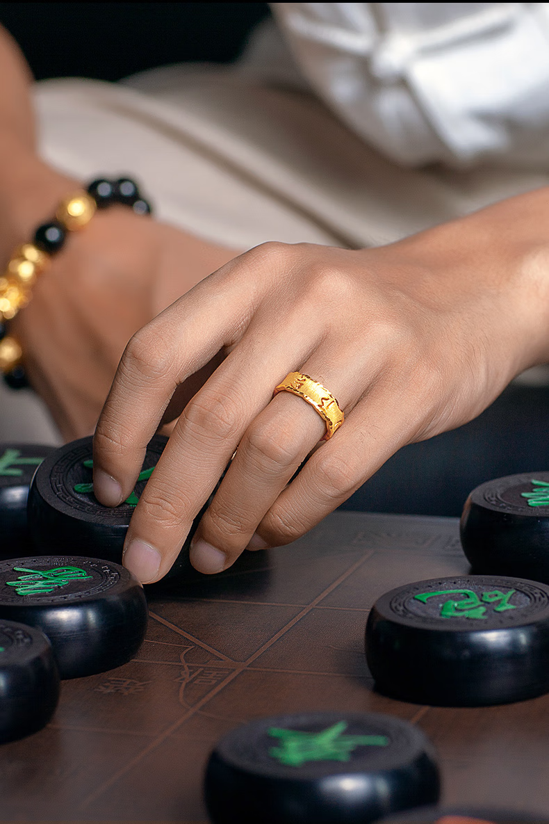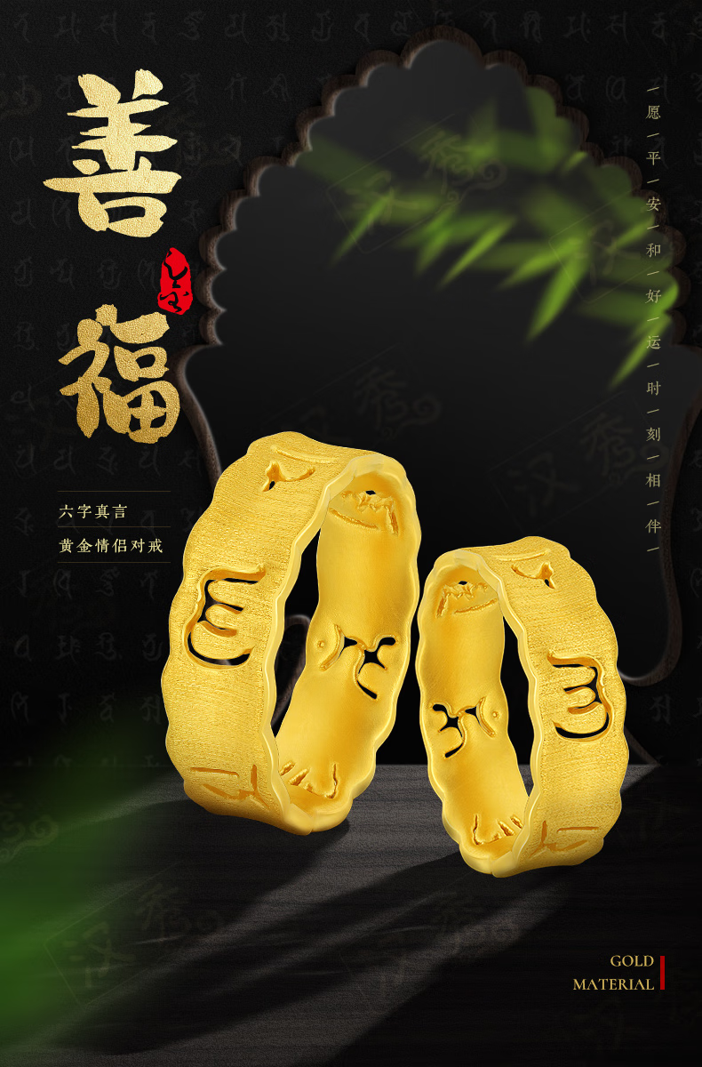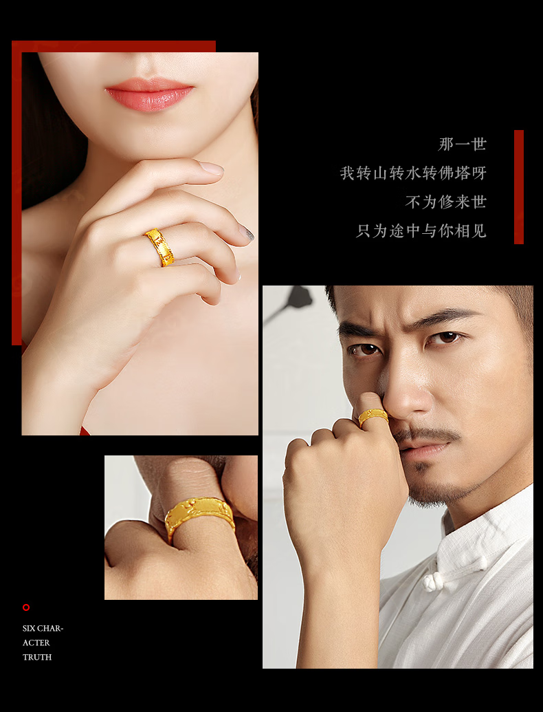 Hanxiu gold ring pure gold six-character motto for men and women, couple ring 3D hard gold ring for birthday, girlfriend, wife, No. 15 (gold weight about 2.8 grams) pre-sale