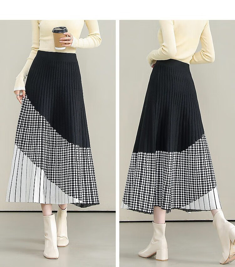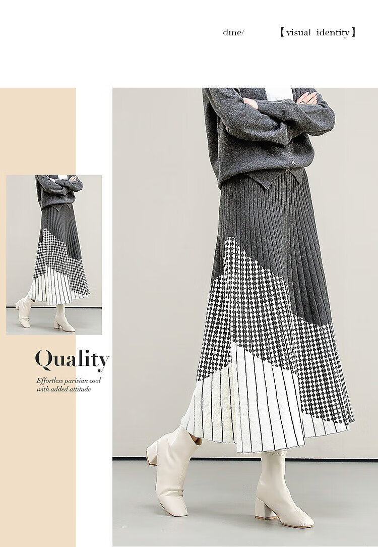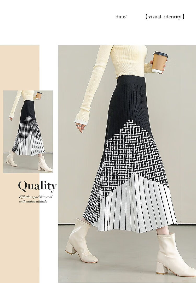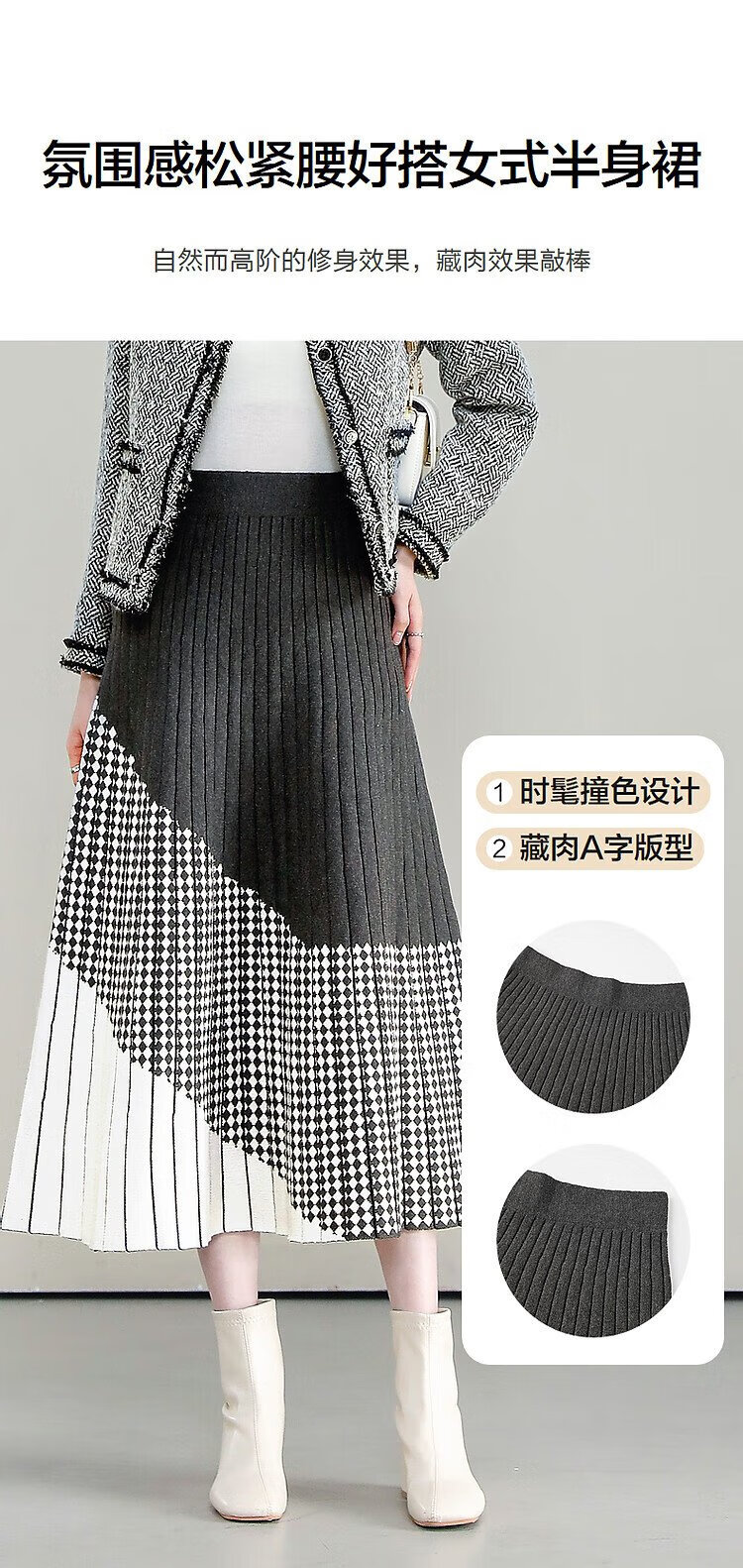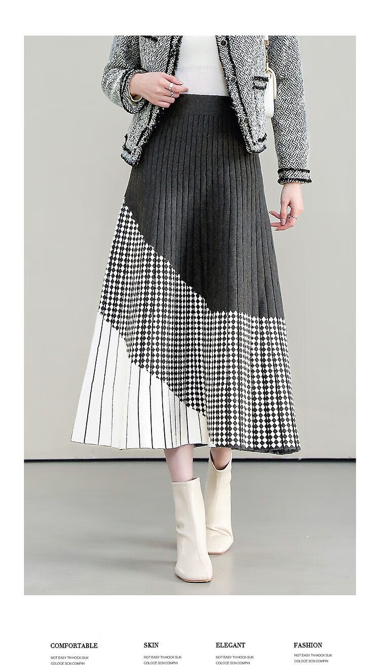 Demana, good-looking everyday, winter atmosphere, elastic waist, contrasting color, A-line hidden flesh, easy to match skirt, mid-length for women