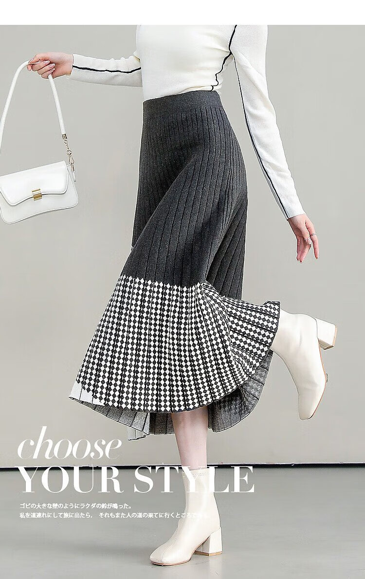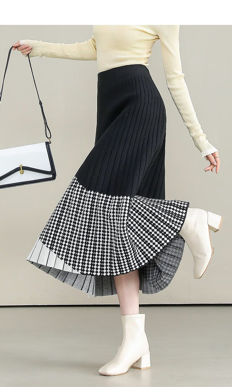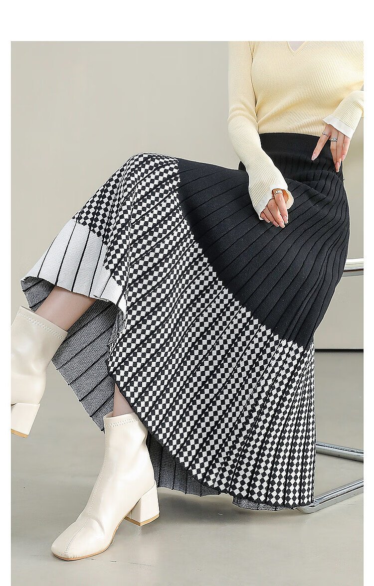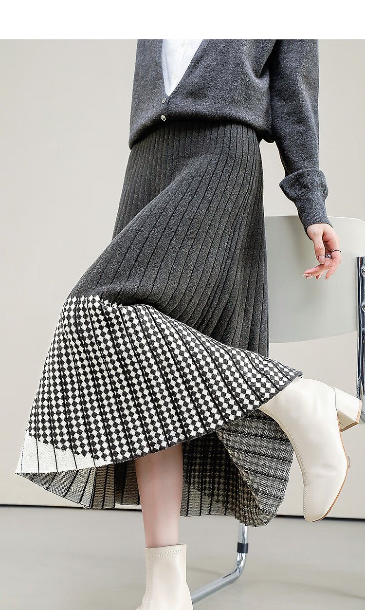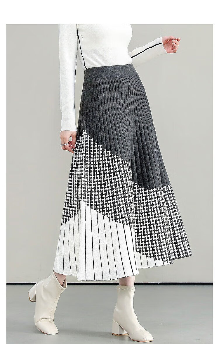 Demana, good-looking everyday, winter atmosphere, elastic waist, contrasting color, A-line hidden flesh, easy to match skirt, mid-length for women