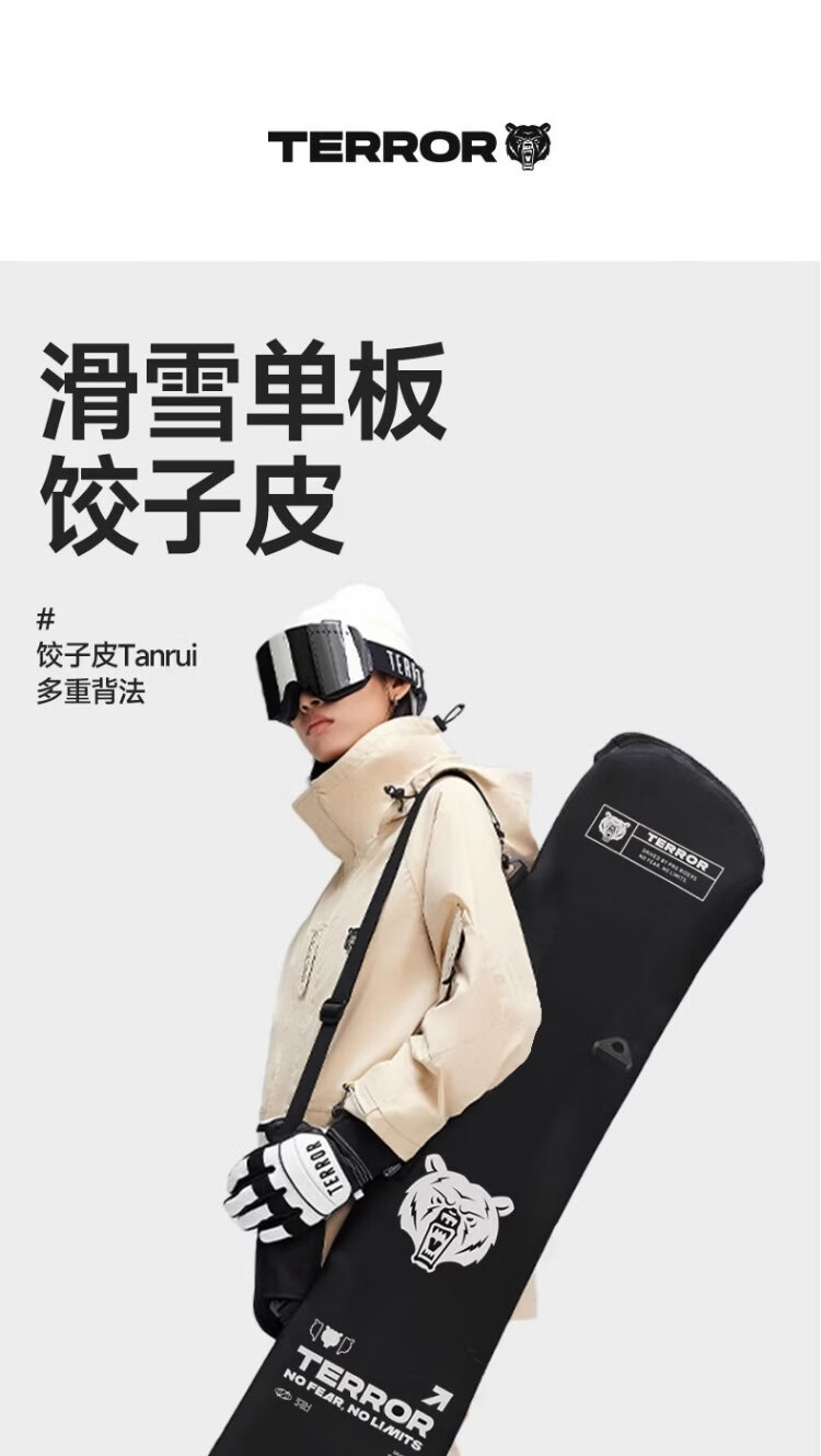 TERROR Ski Bag Snowboard Snowboard Large Capacity Single Shoulder Strap Board Bag Ski Equipment Dumpling Skin XL (155-160) Black