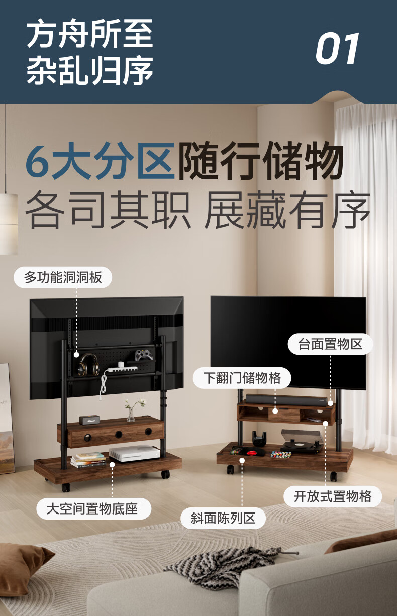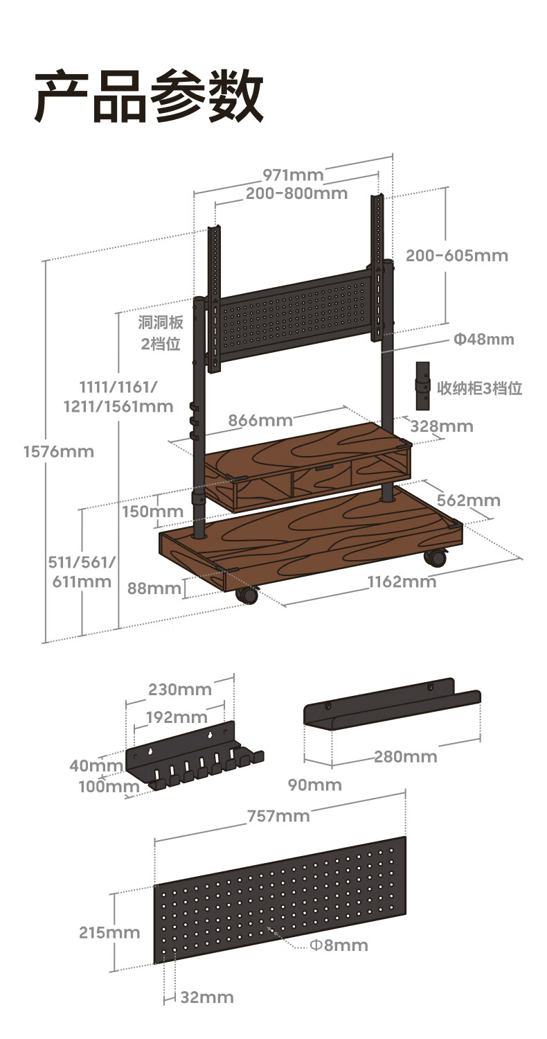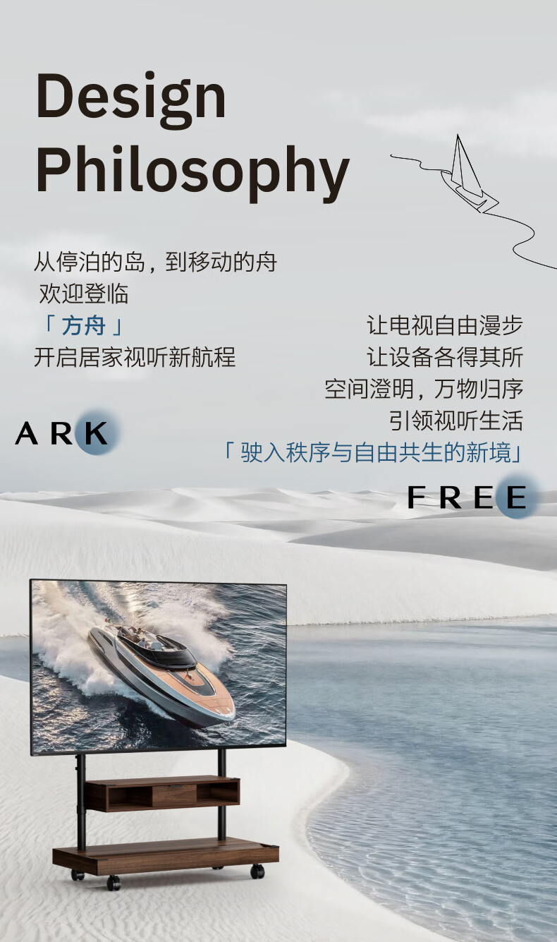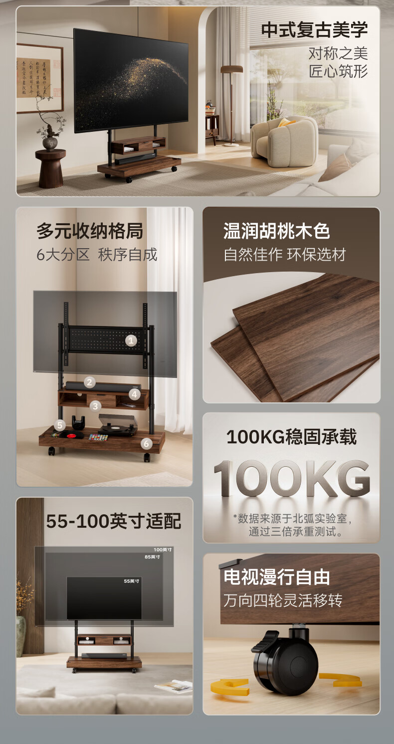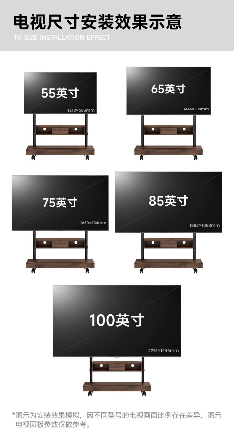 Brateck Northern Arc (55-100 inches) TV mobile bracket movable TV stand floor-standing TV art stand TV stand solid wood wind wall mount cart FS500MAX