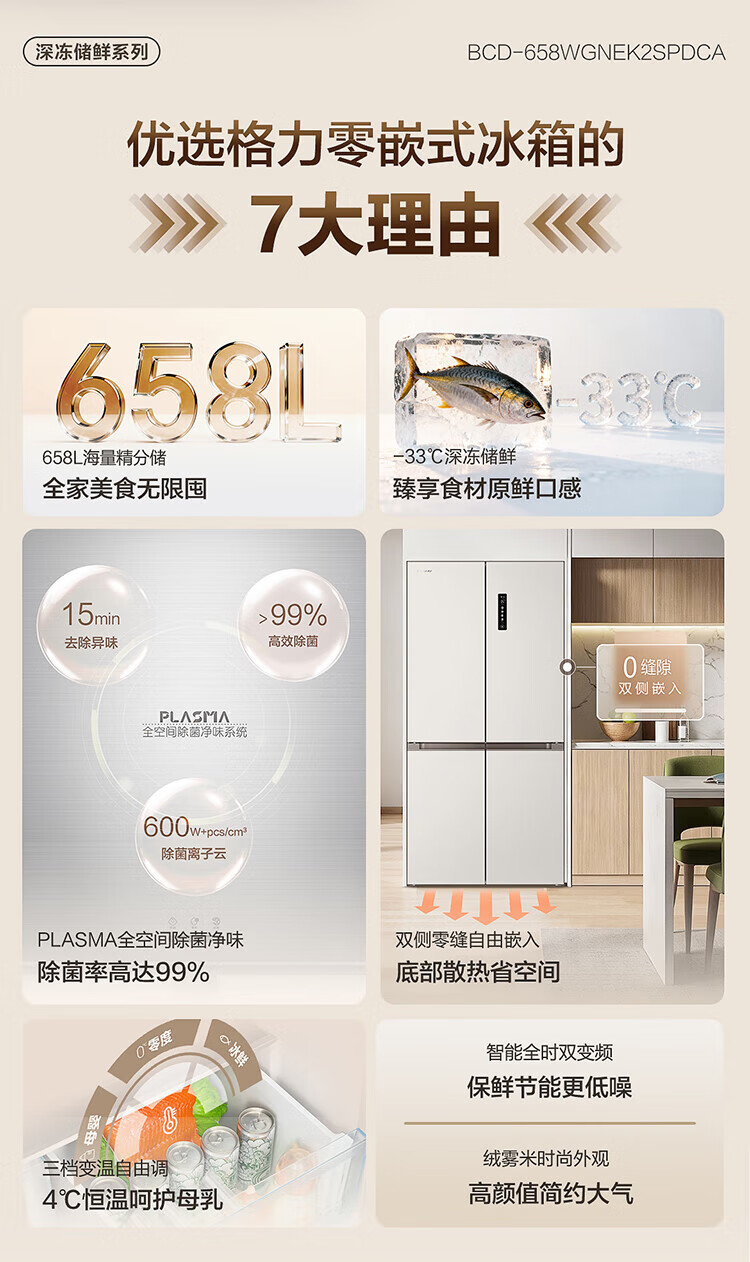 Gree Refrigerator Cross Door 658L New Level Energy Efficiency Inverter Zero Built-in Refrigerator National Subsidy BCD-658WGNEK2SPDCA/Rongwumi