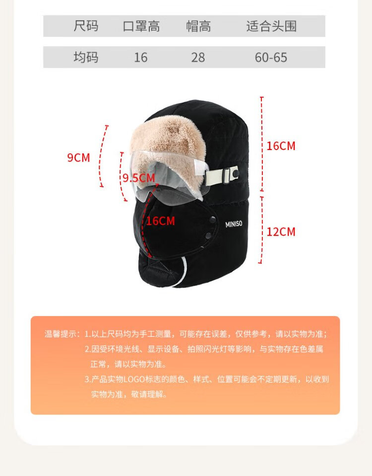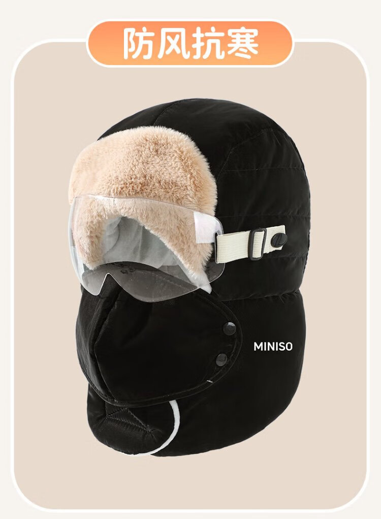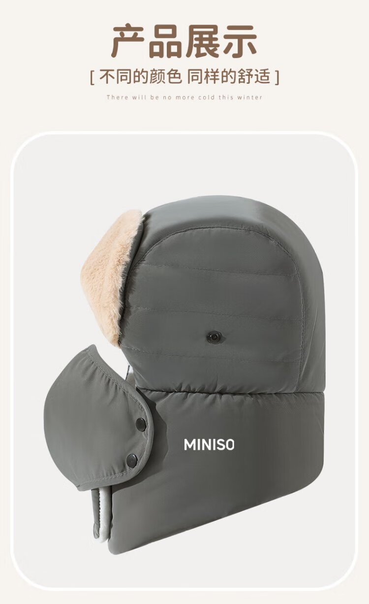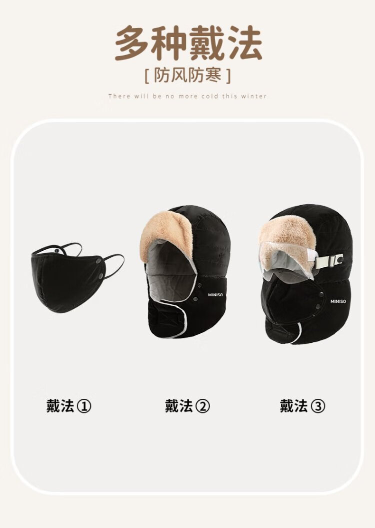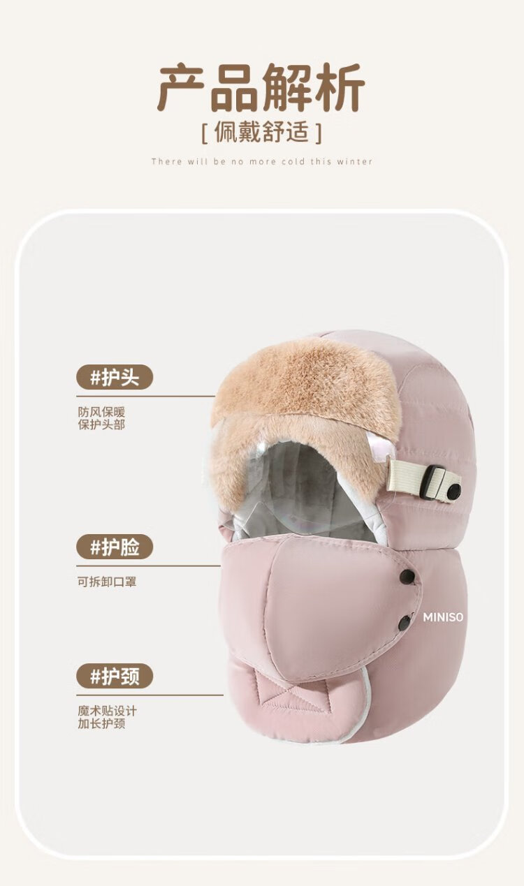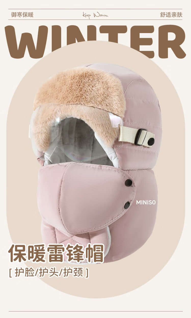 MINISO Lei Feng Hat Women's Winter Warmth, Windproof and Coldproof Plus Velvet Thickened Cycling Ear Protection Hat Men's Mask Set Pink