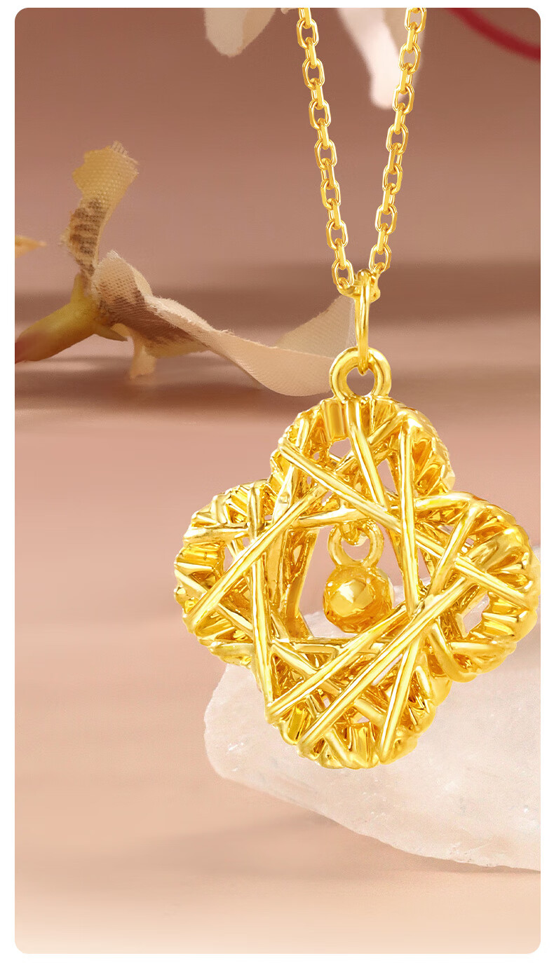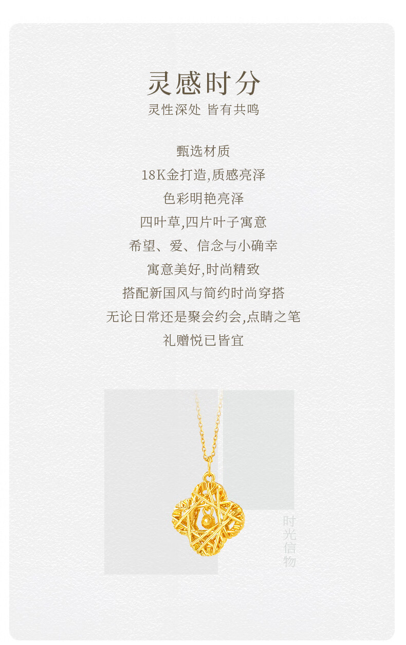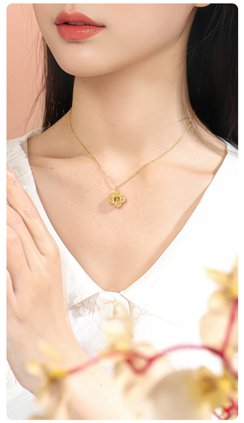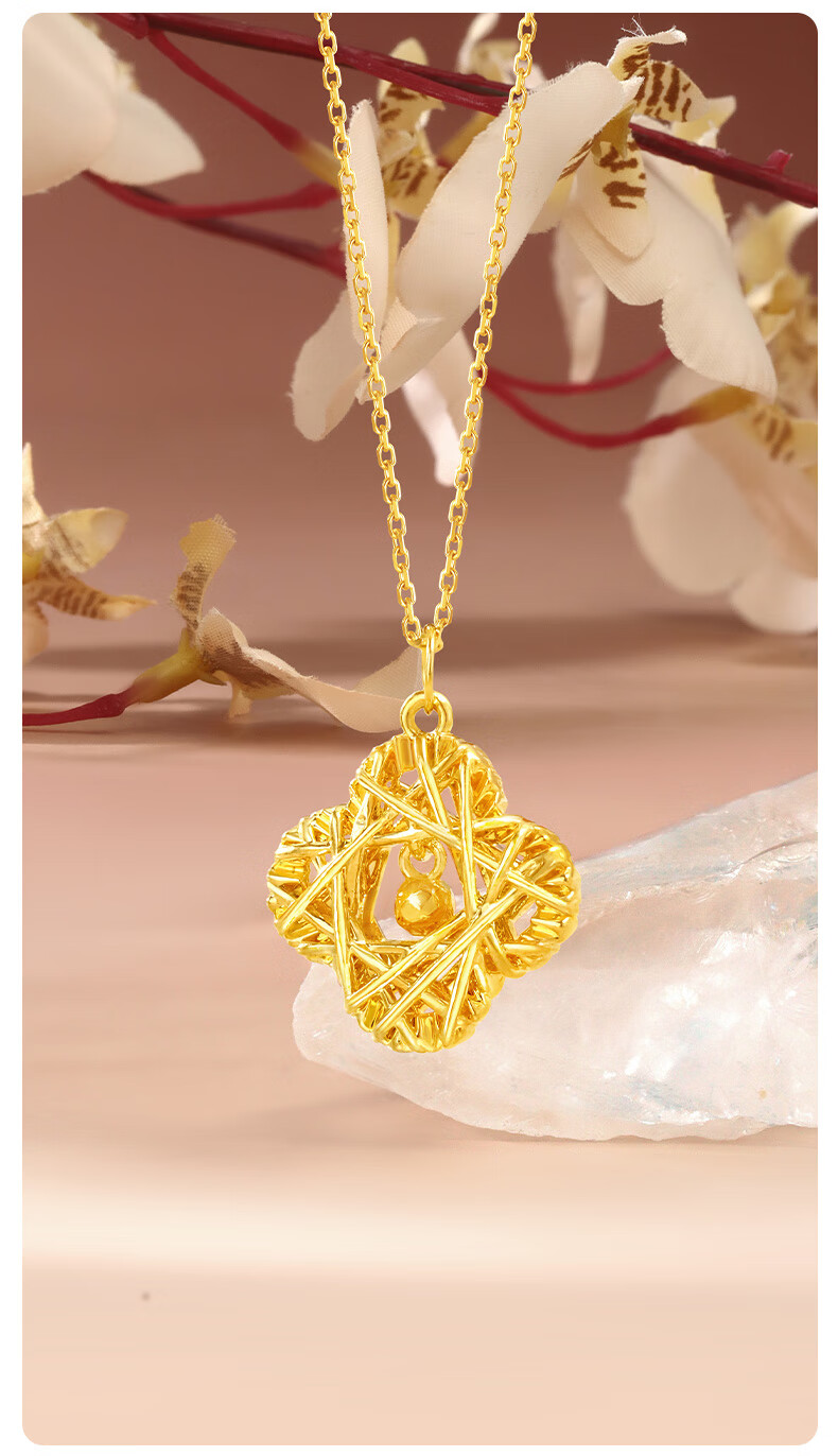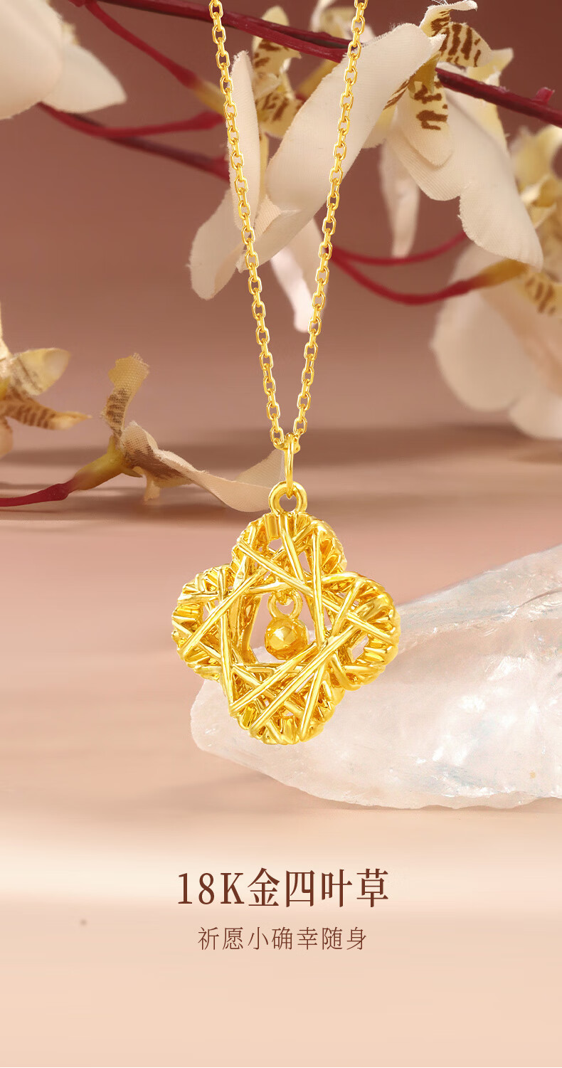 Shipulin yellow 18K gold silk four-leaf clover pendant birthday gift for girlfriend and best friend