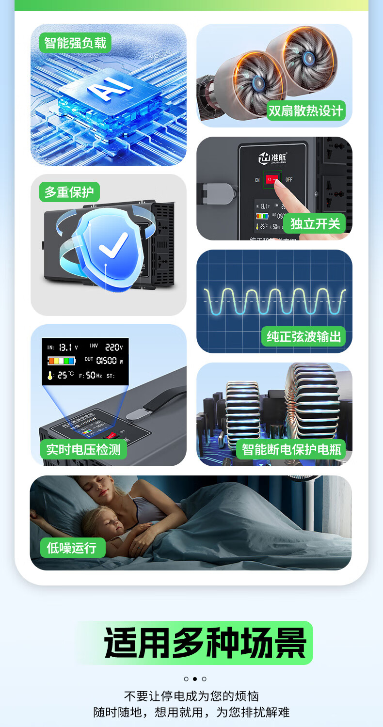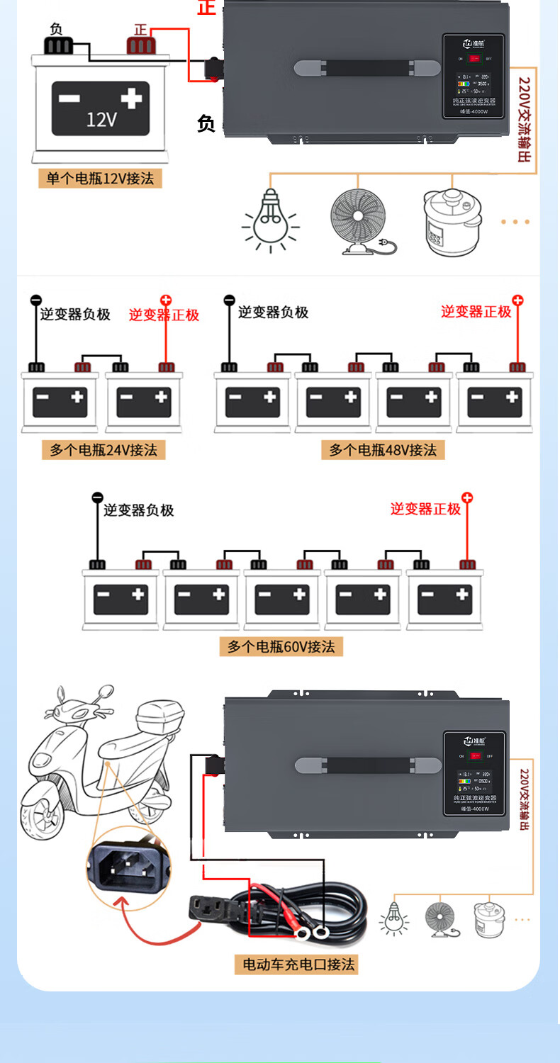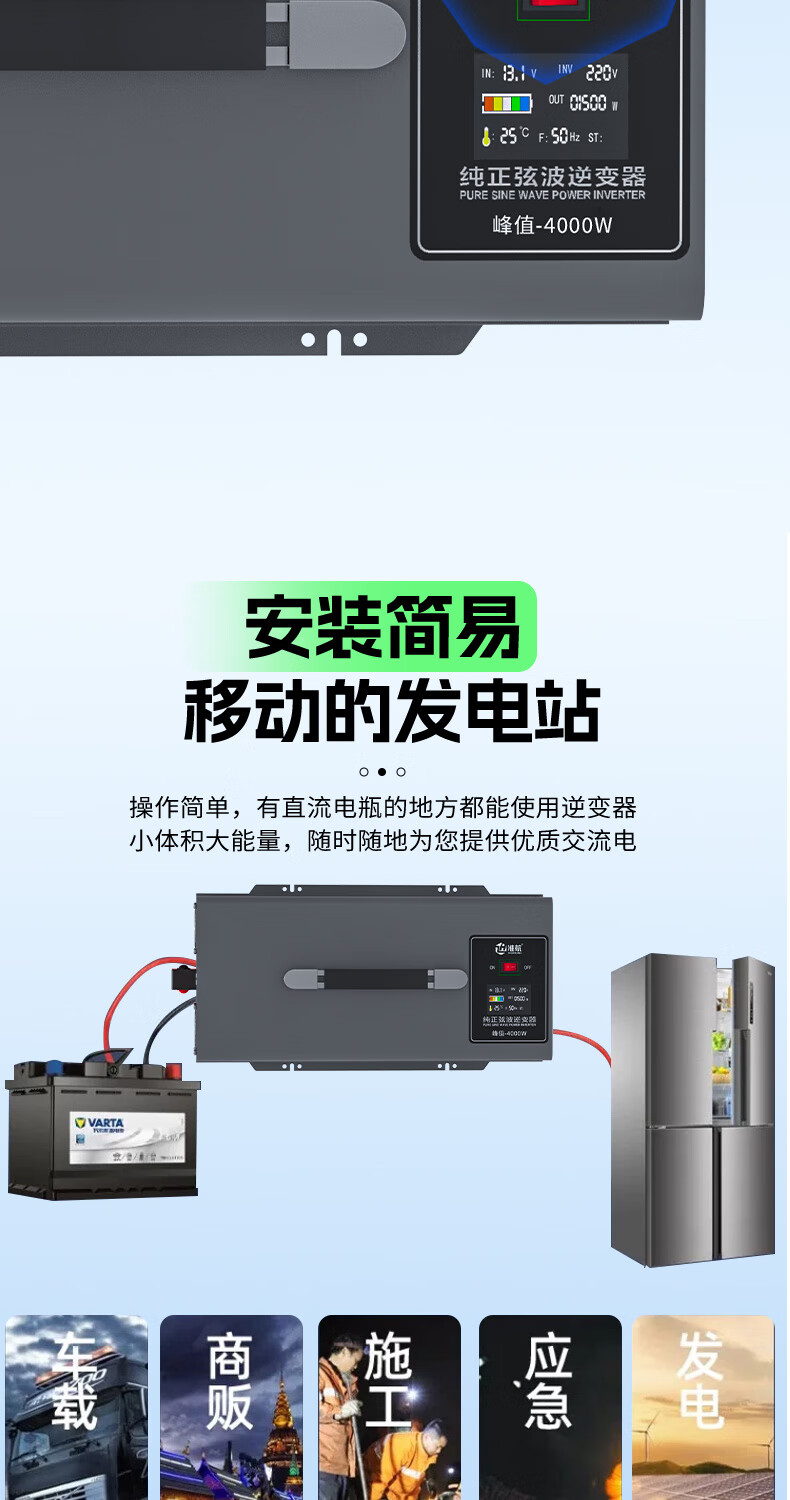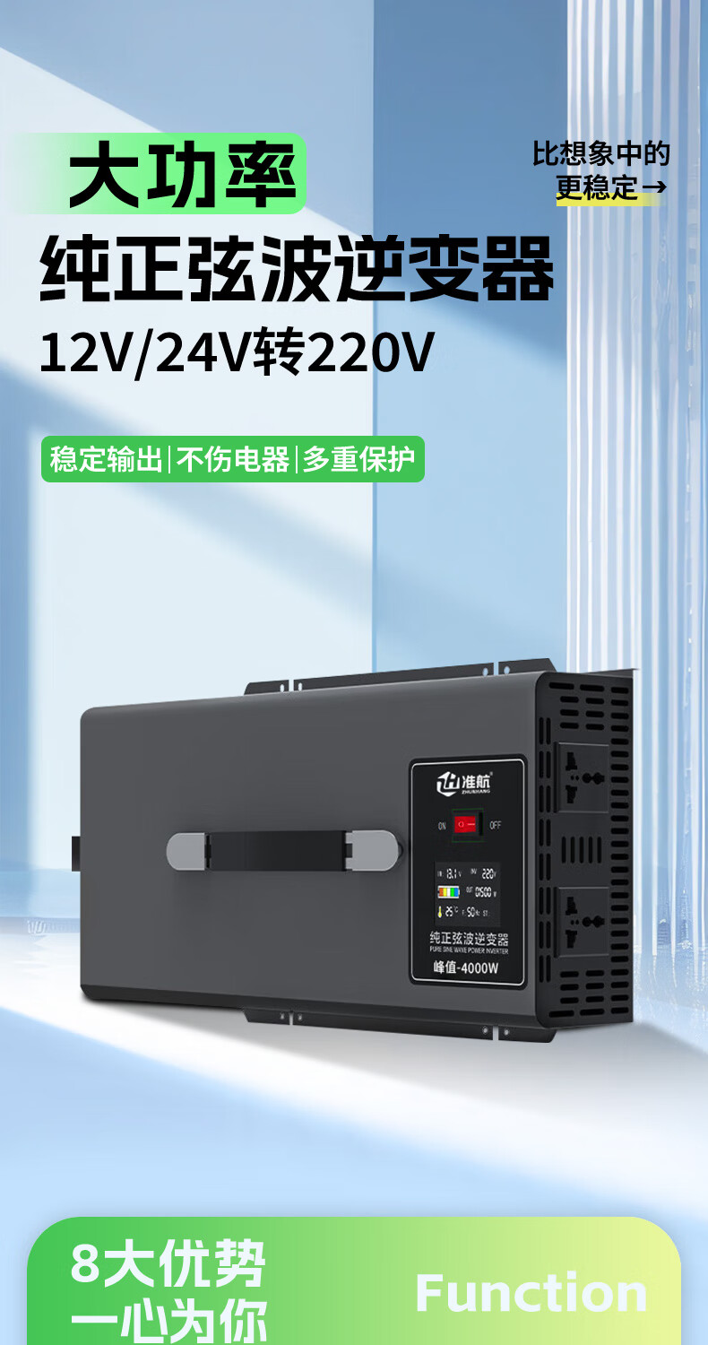Zhunhang pure sine wave inverter car charger 12V24V to 220V high power 4000W for tricycle stall