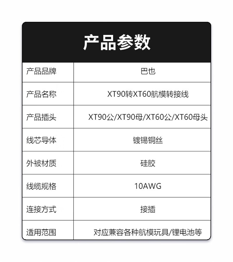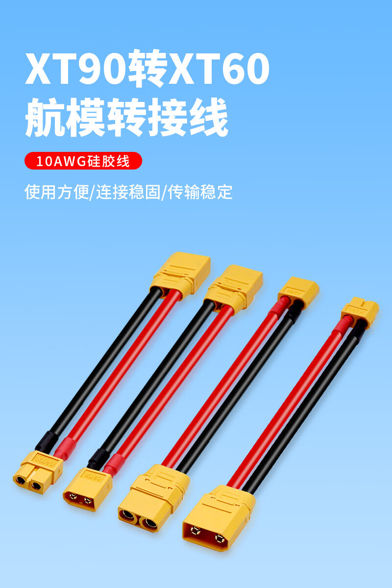 Baye Model Aircraft Adapter Cable XT90 Female to XT60 Female Lithium Battery Cable 10AWG/0.1m BY-XT90F60F001