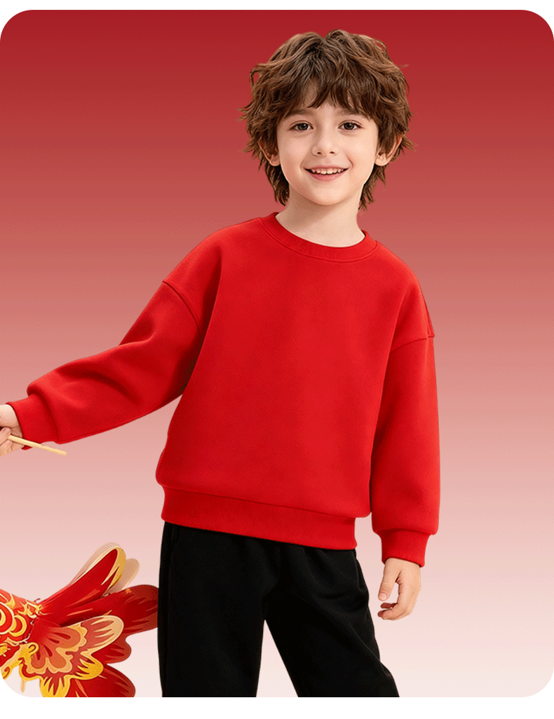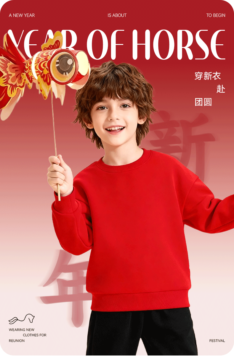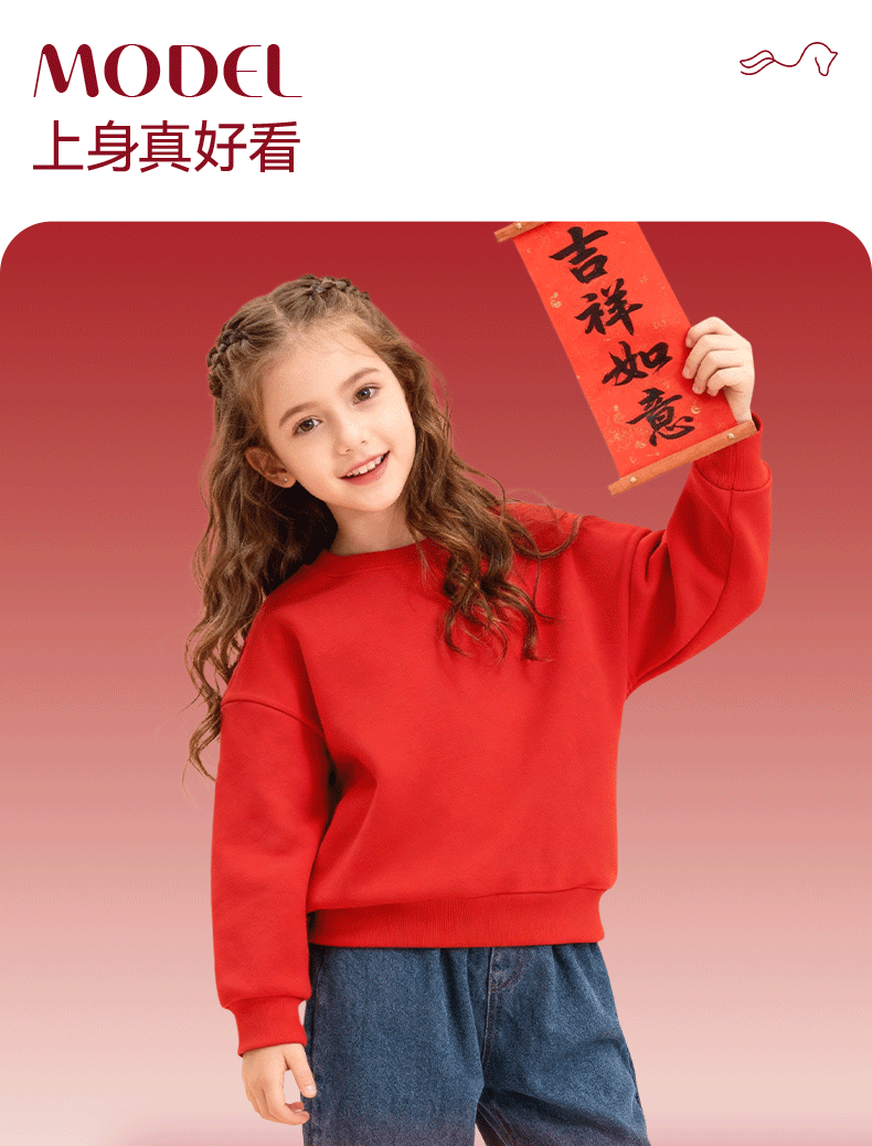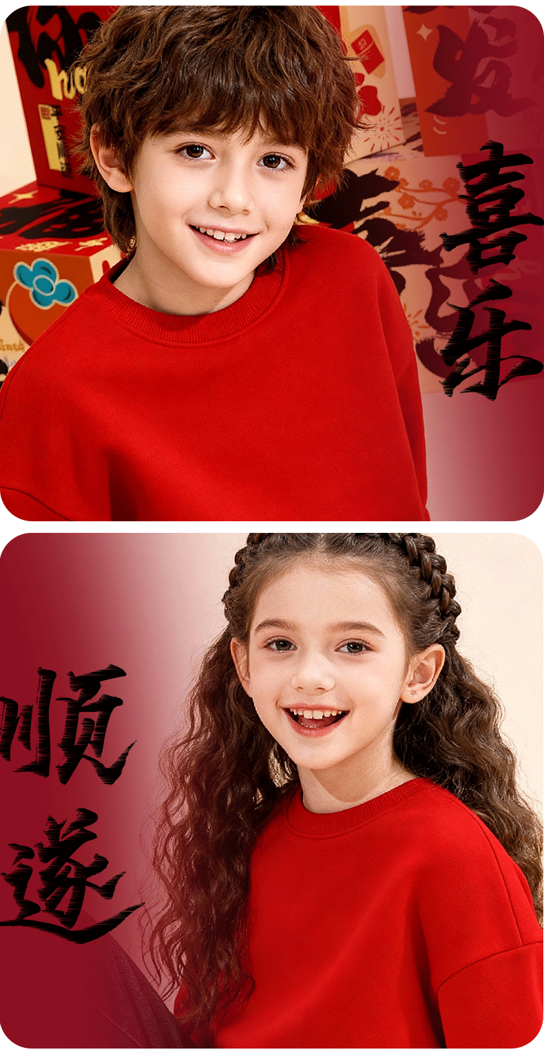 Baleno children's red sweatshirt 2026 Year of the Horse animal year clothes for boys and girls winter velvet warm bottoming shirt New Year's greetings clothes