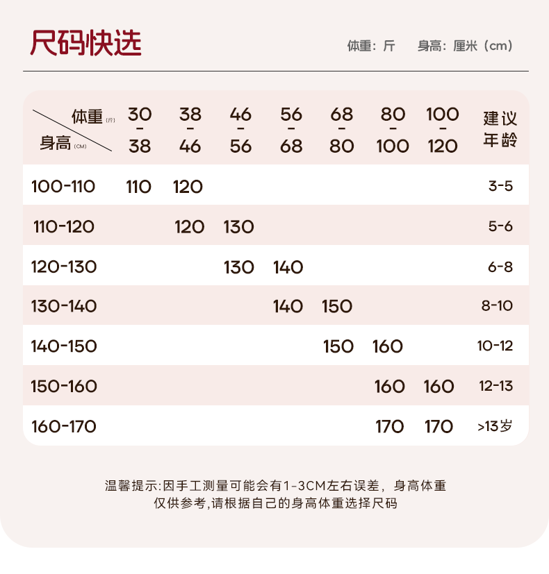 China (cm) 160-165/84-86 165-170 / 88-90 167-172 / 92-96 168-173 / 98-102 170-176 / 106-110