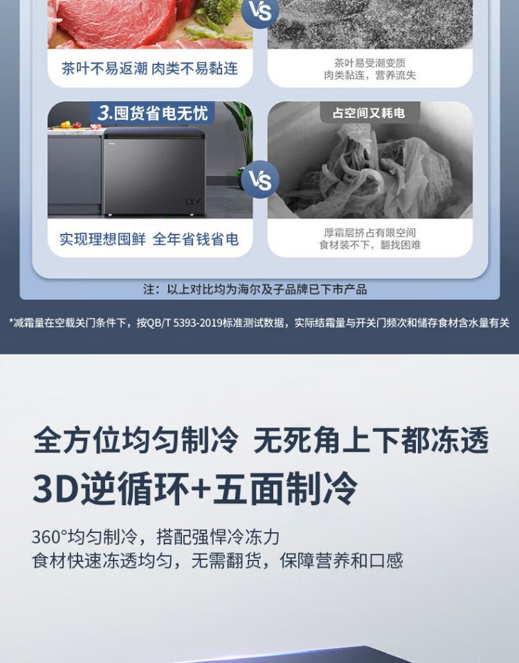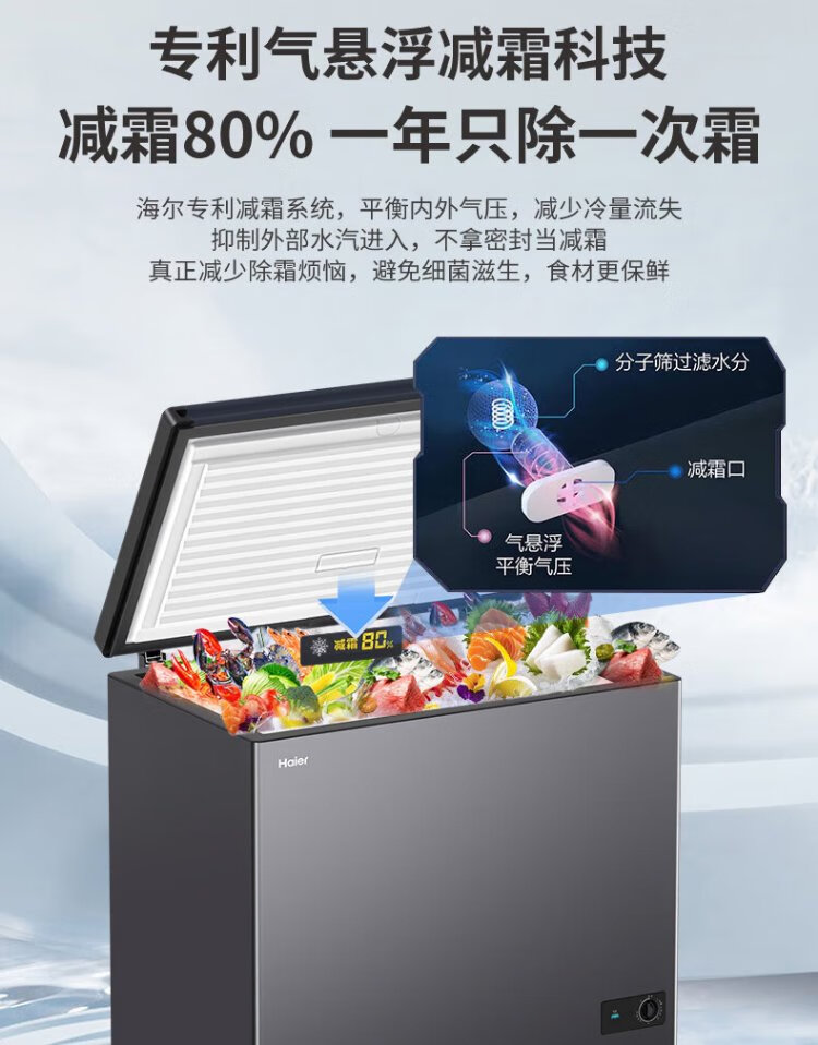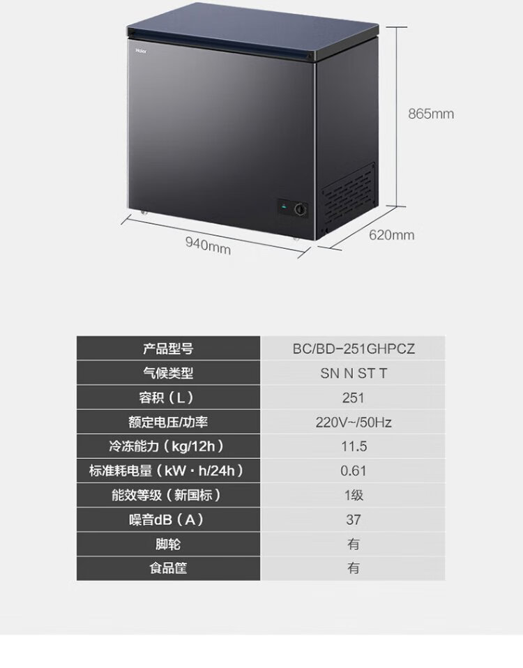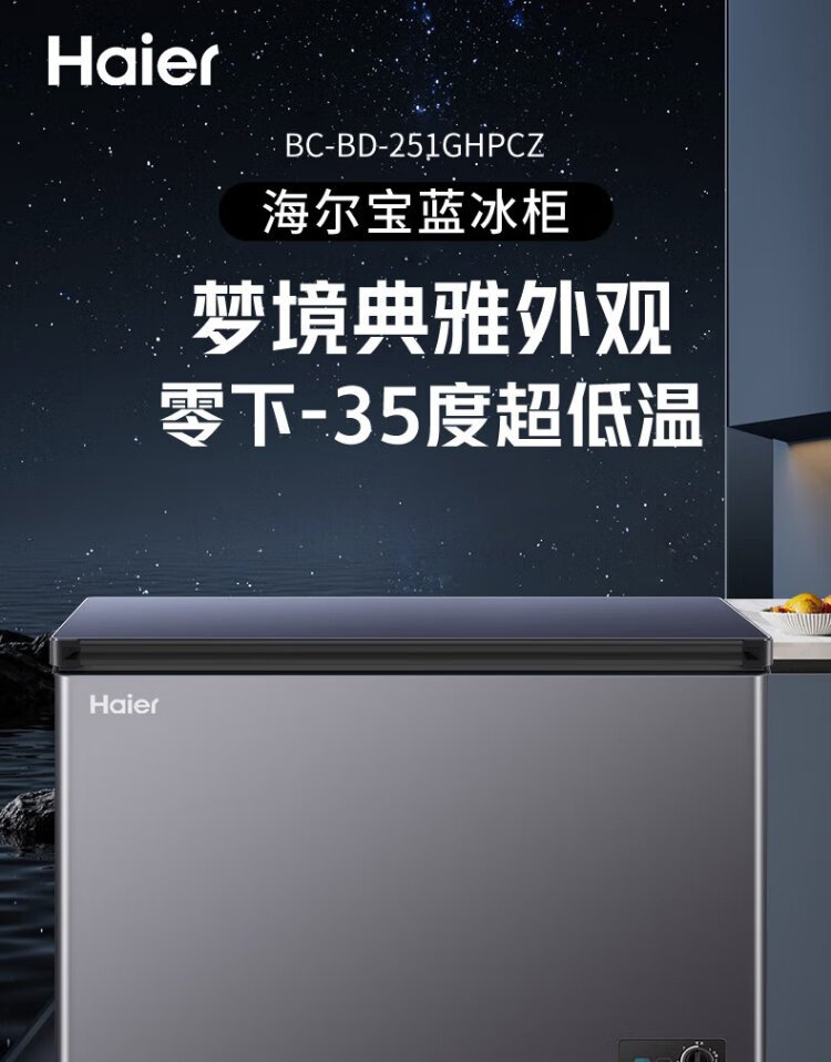 海尔(Haier)宝蓝251升单温冰柜家用小型-35度超低温大容量无需频繁除霜300升以下冷冻柜BC/BD-251GHPCZ补贴