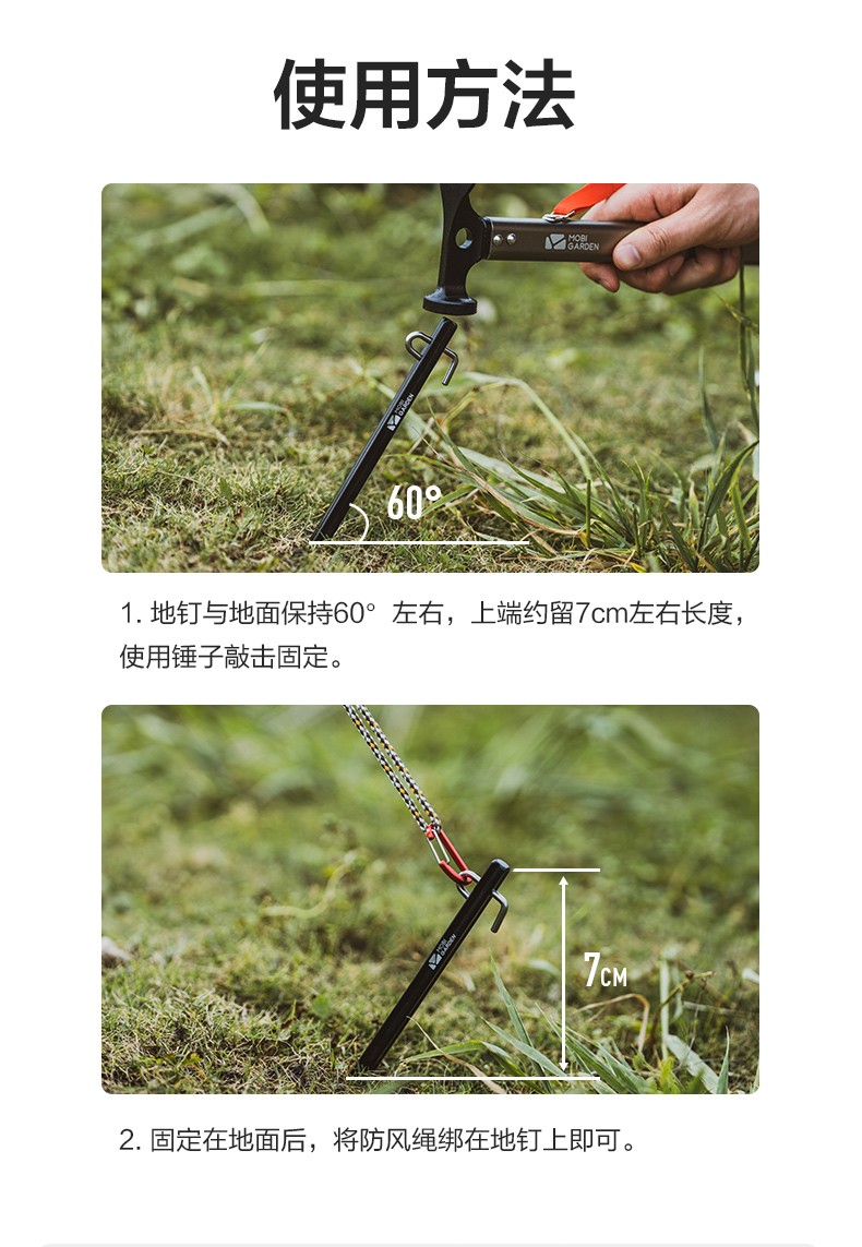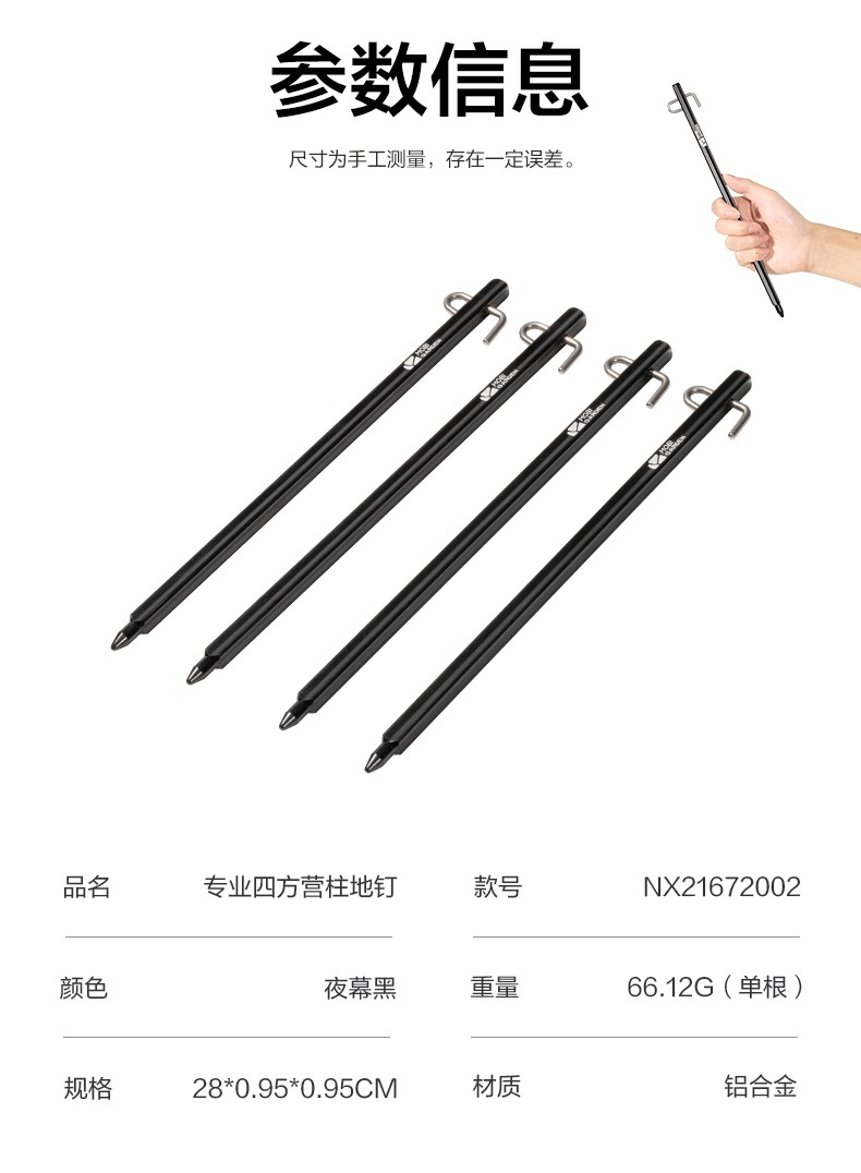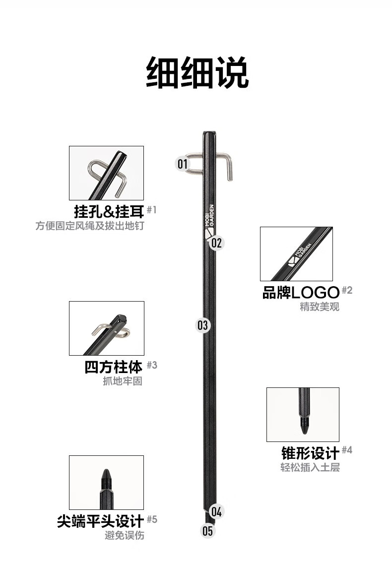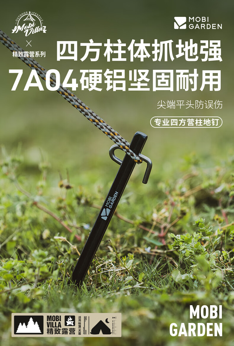 MOBIGARDEN ground nails, outdoor camping aluminum alloy ground nails, extended canopy tent windproof nails, professional square camp poles, night black (pack of 4)