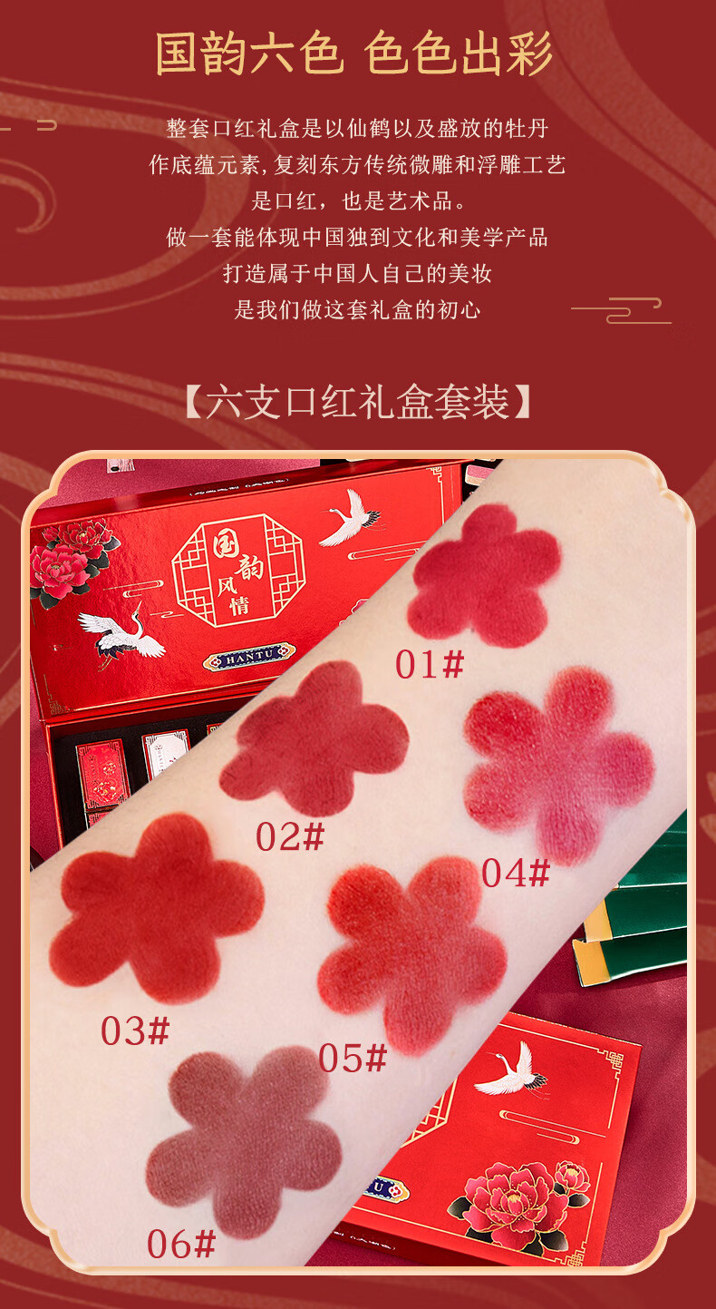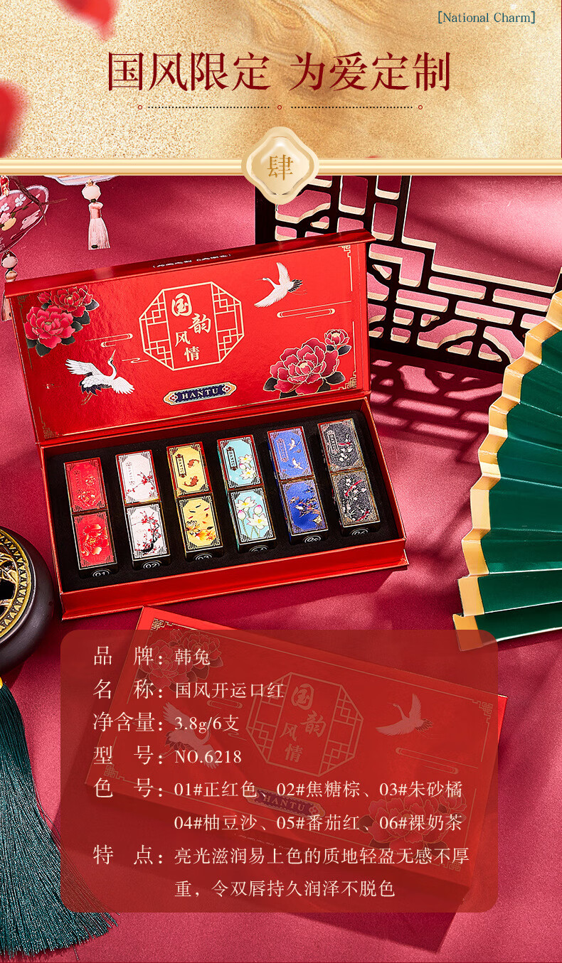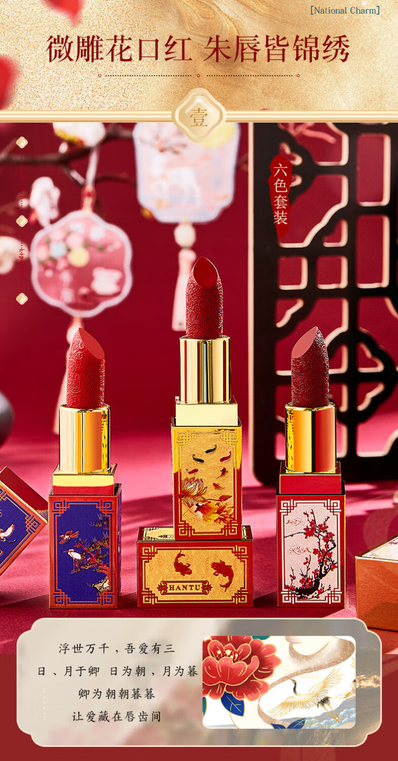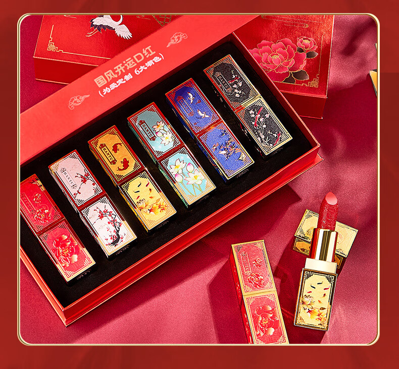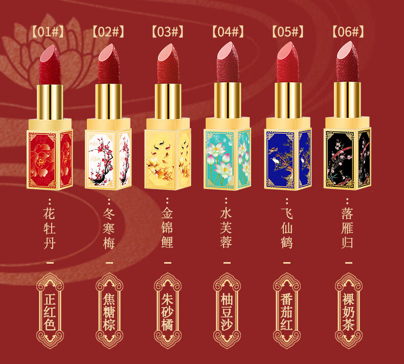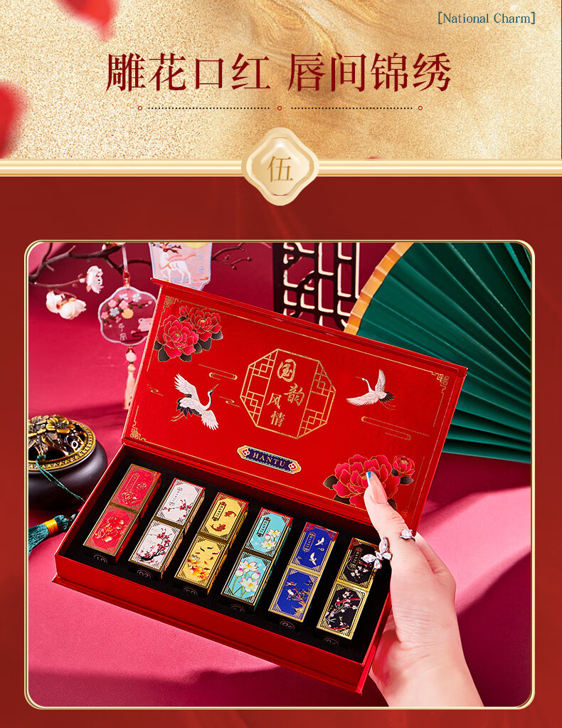 Korean rabbit authentic Forbidden City lipstick set box carved lipstick set Chinese style retro matte 520 Valentine's Day gift 6-piece set