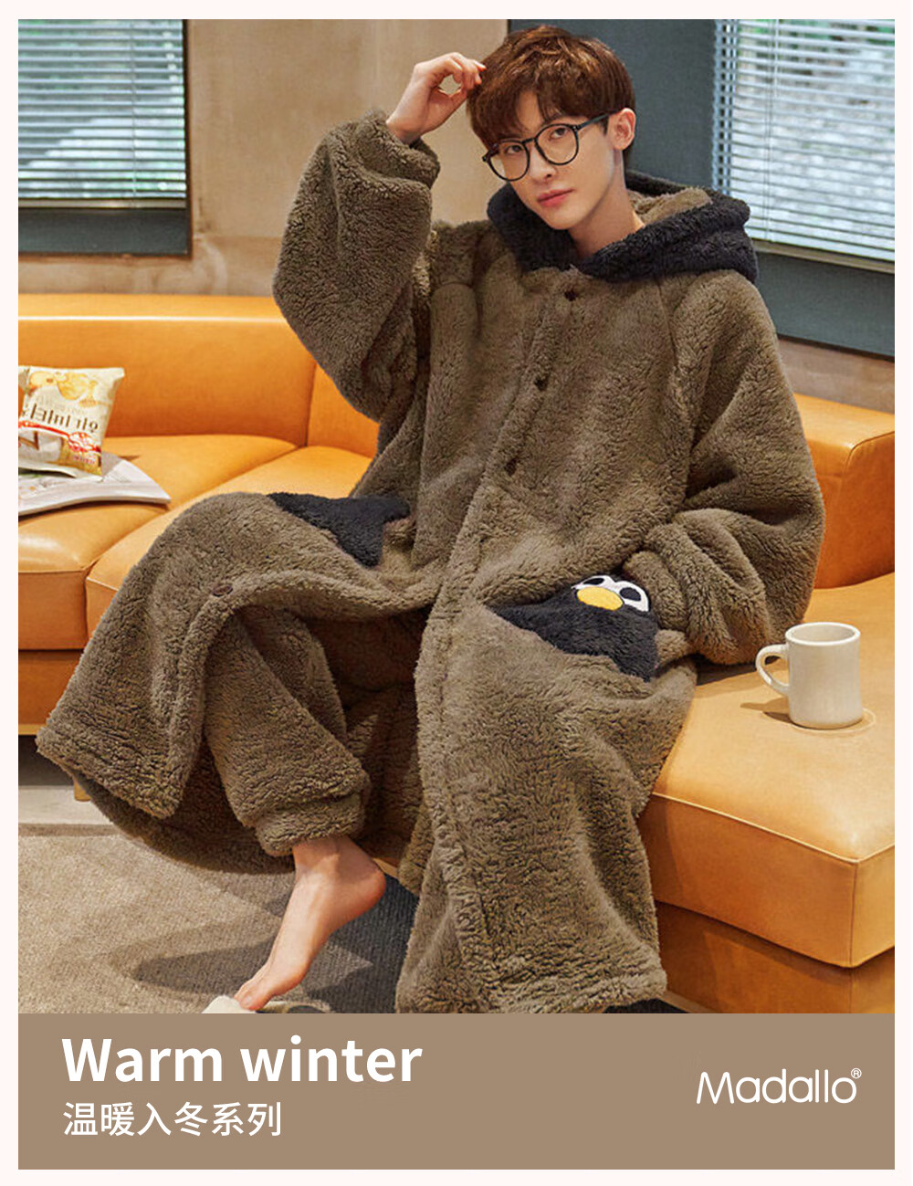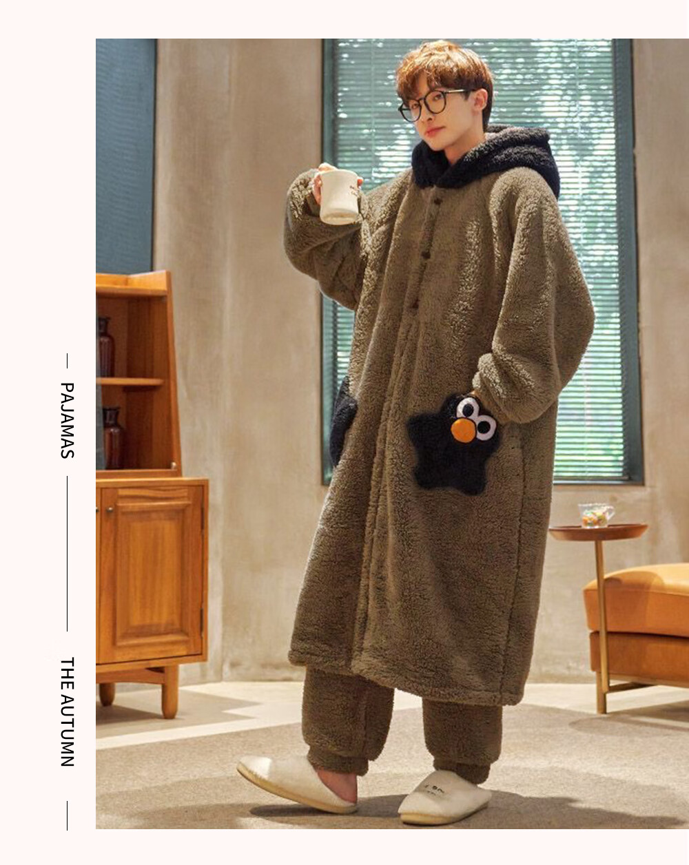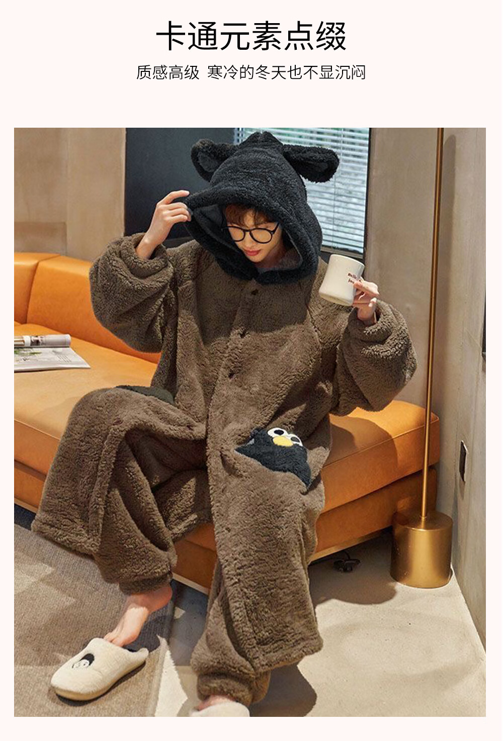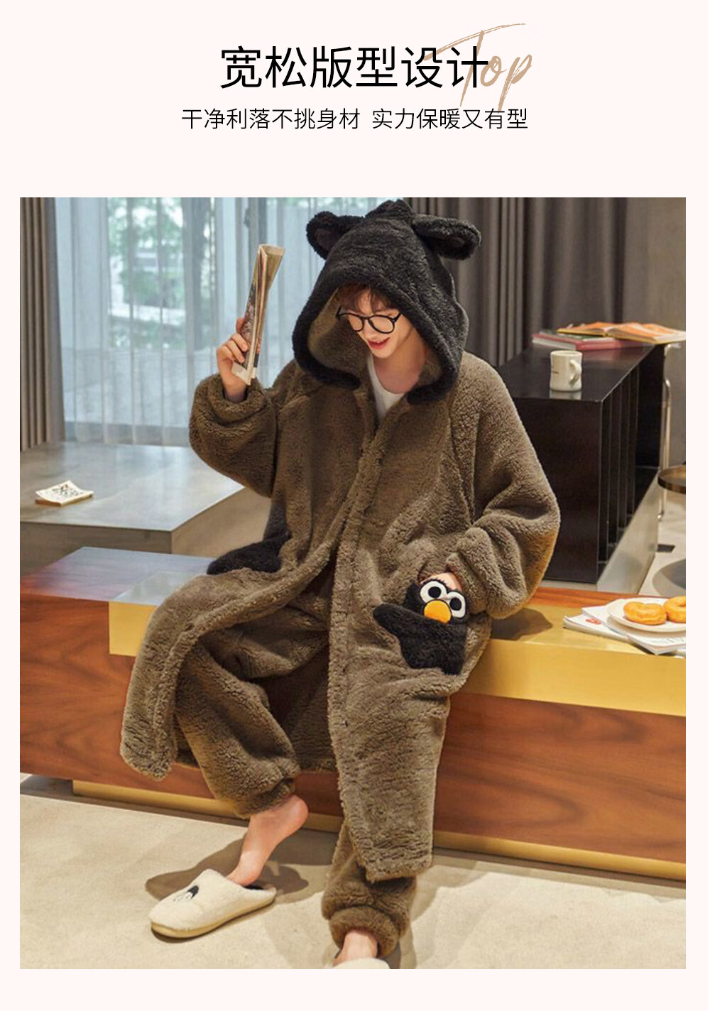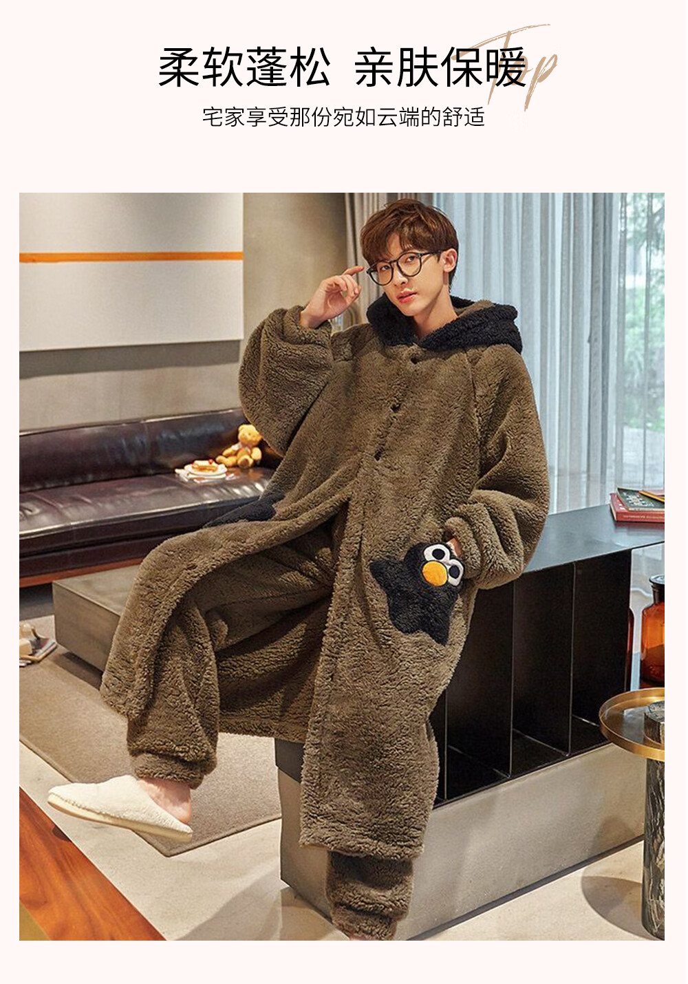 Модальные пижамы из кораллового флиса, мужские осенне-зимние новые плюс бархатные теплые пижамы, повседневный мультяшный комплект, можно носить вне дома.