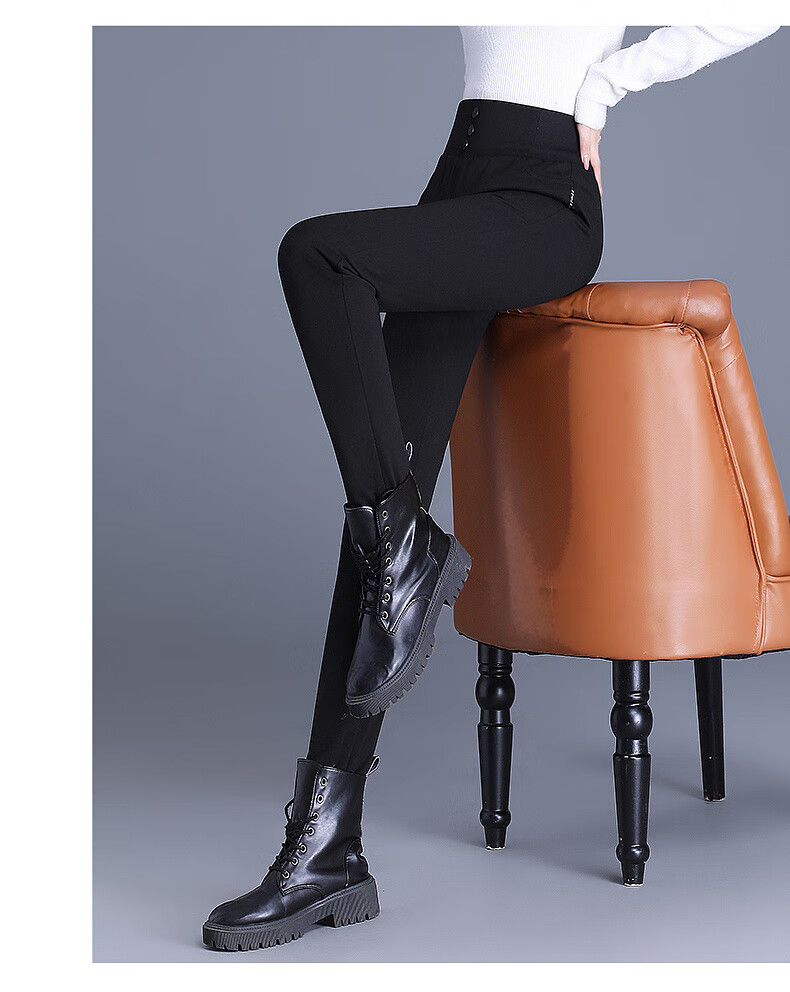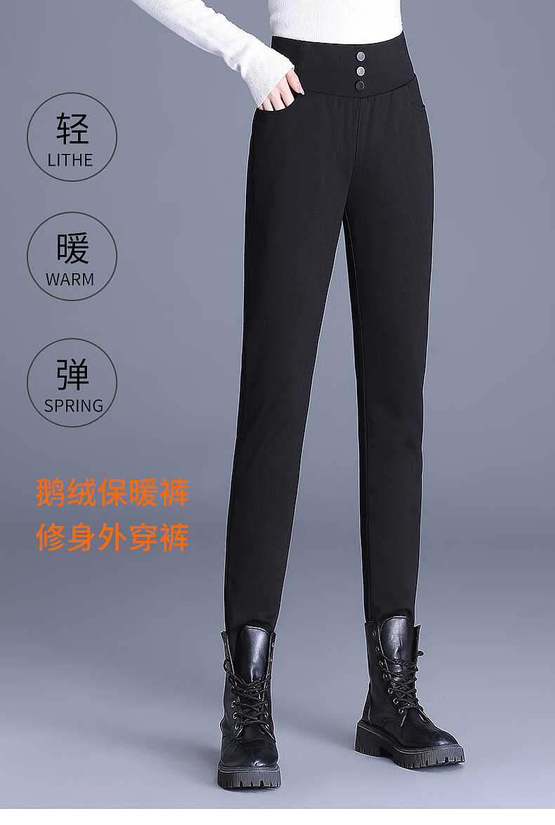 Mo Dou 2025 Down Pants Women's Winter Outerwear Thickened Warm Goose Down Pants Foot Slimming High Waist Slimming Pencil Pants Trousers