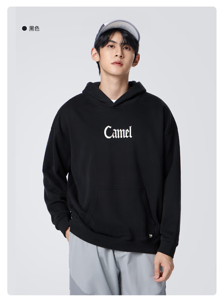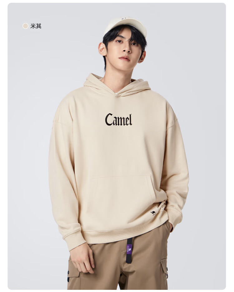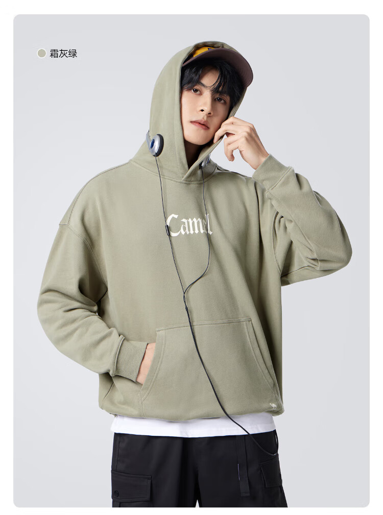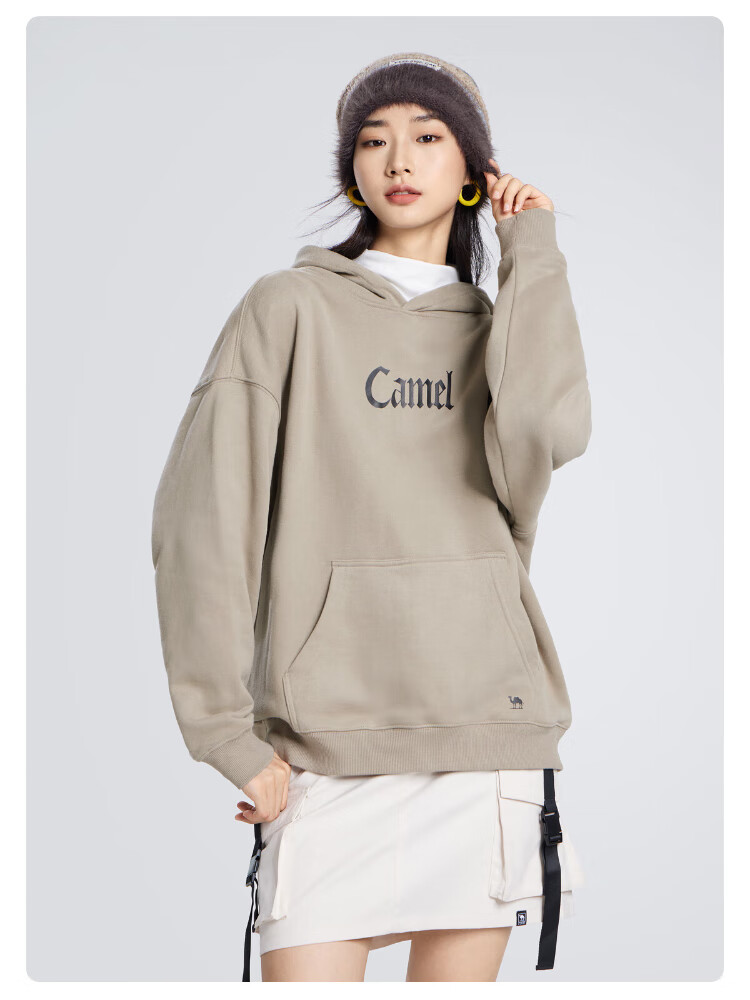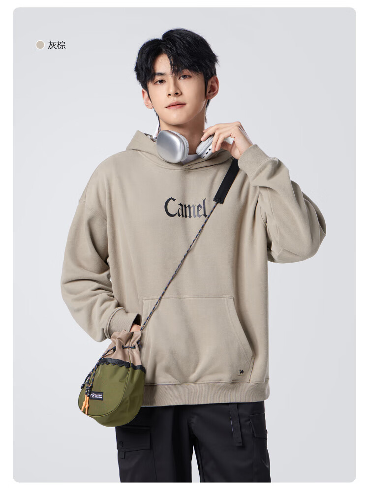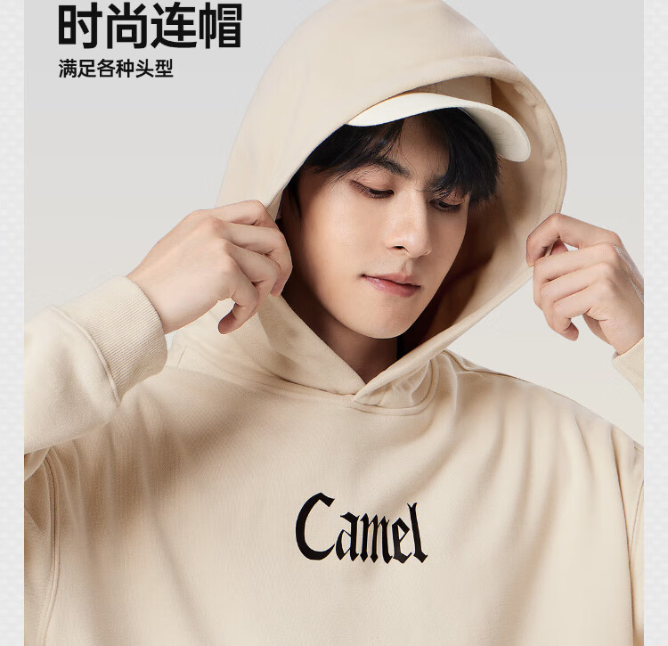 Camel (CAMEL) hooded sweatshirt men's autumn and winter Wang Junkai's same style American trendy loose plus velvet thick long-sleeved T-shirt M34CA88738A