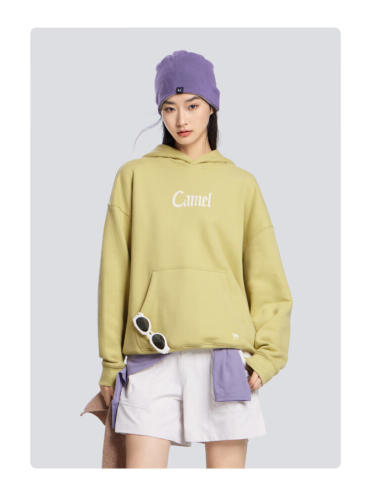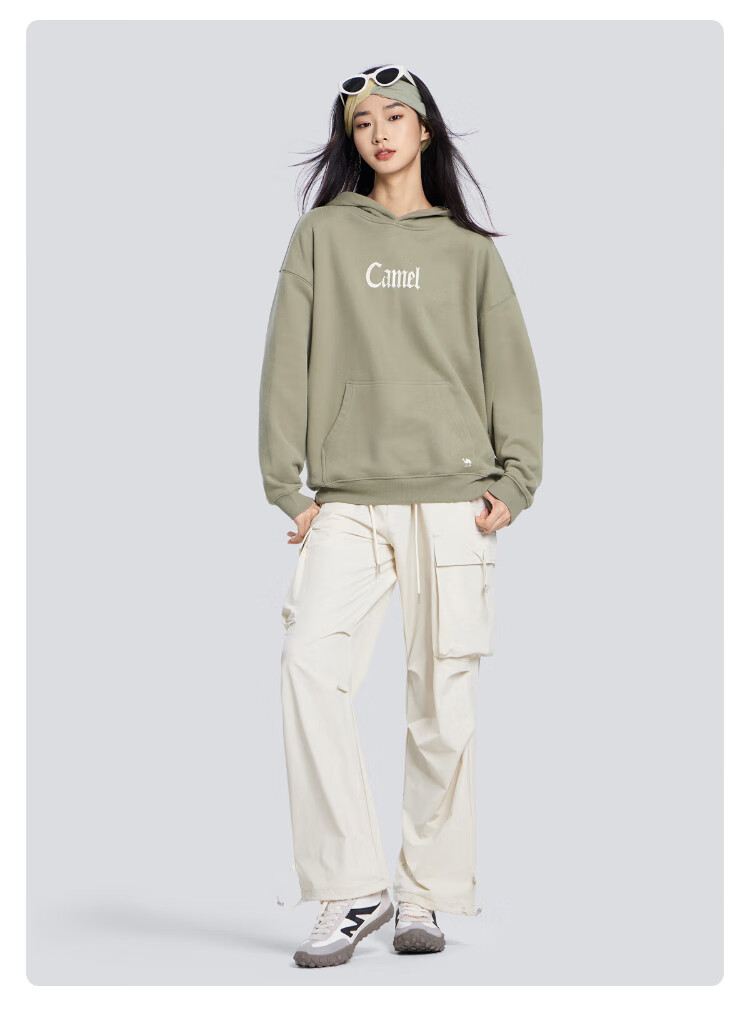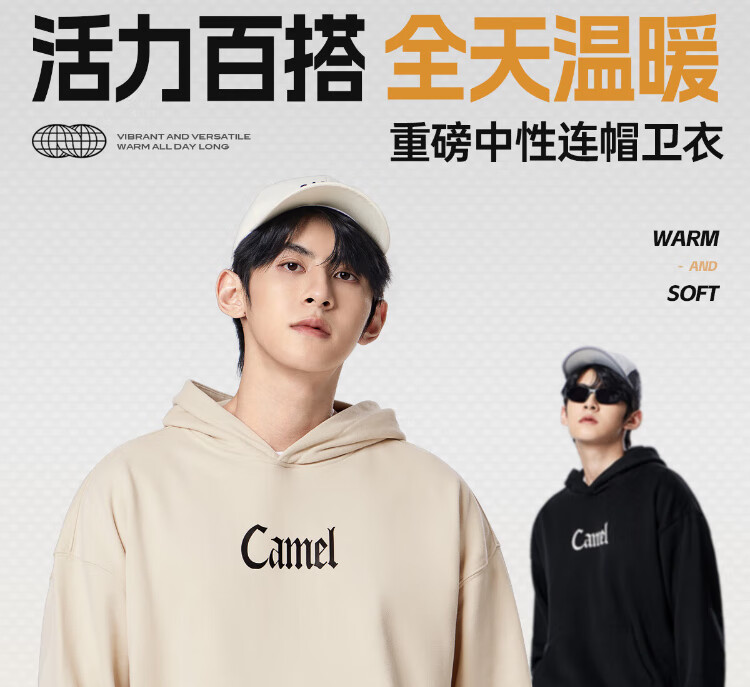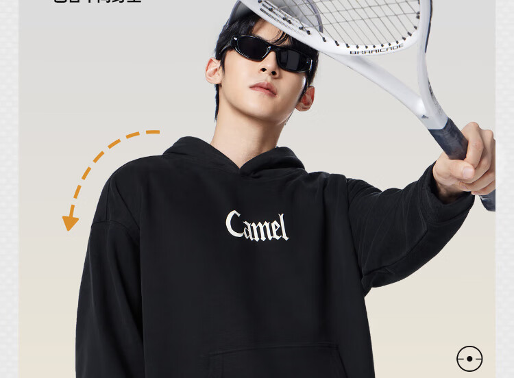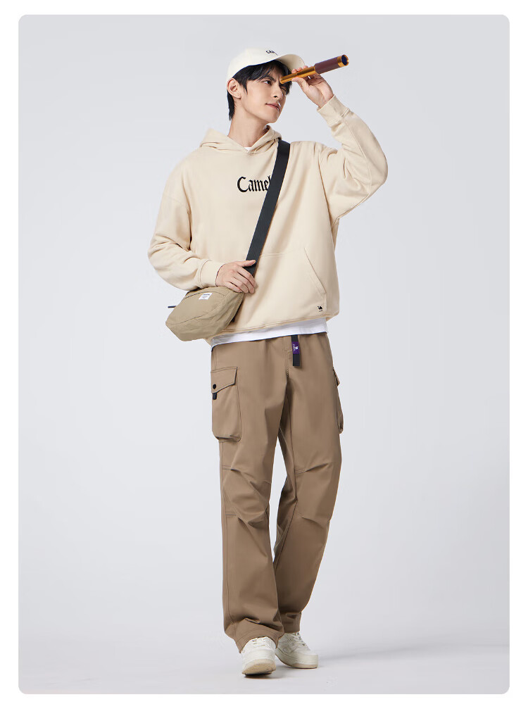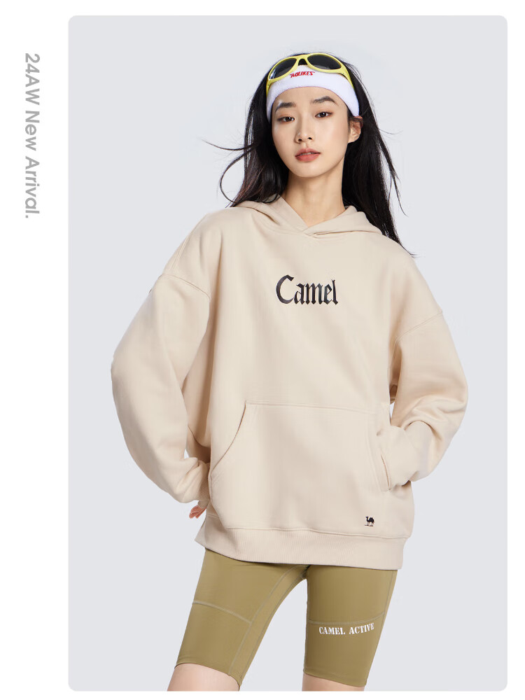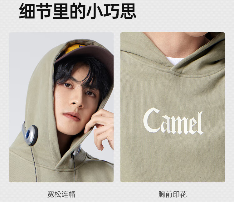 Camel (CAMEL) hooded sweatshirt men's autumn and winter Wang Junkai's same style American trendy loose plus velvet thick long-sleeved T-shirt M34CA88738A