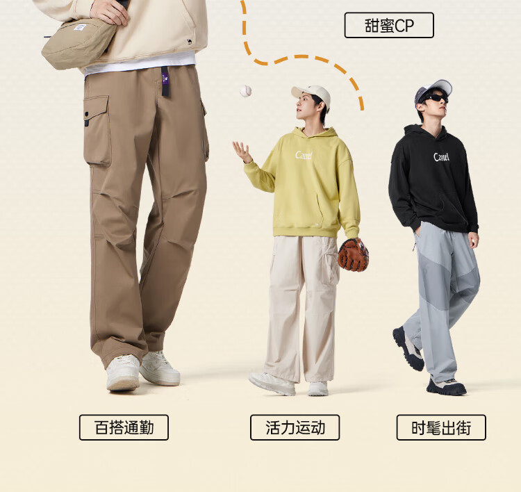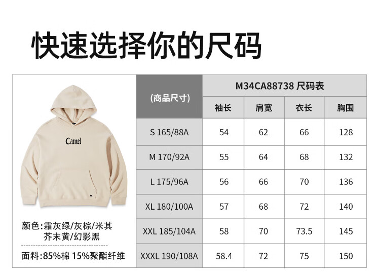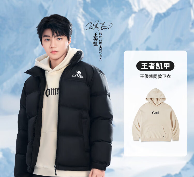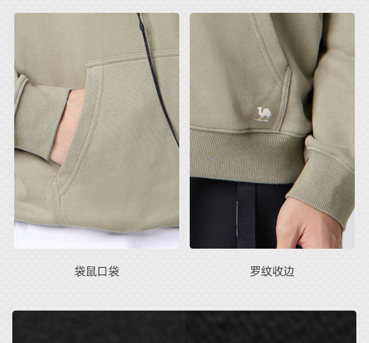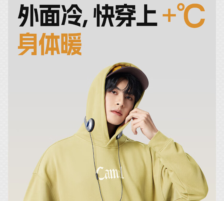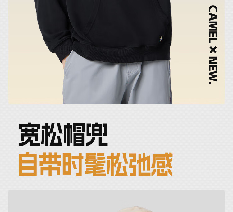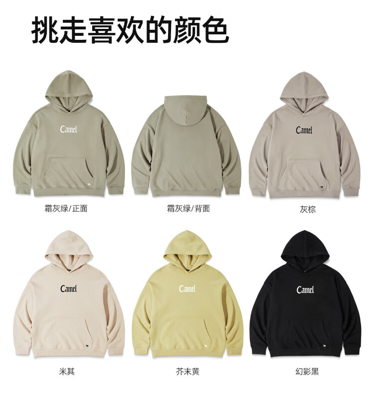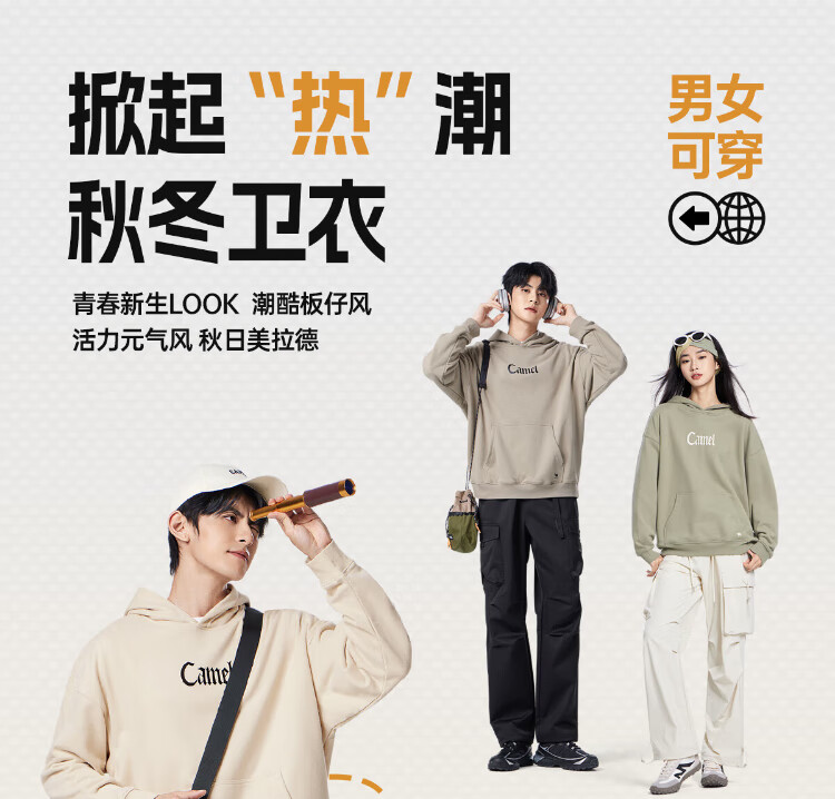 Camel (CAMEL) hooded sweatshirt men's autumn and winter Wang Junkai's same style American trendy loose plus velvet thick long-sleeved T-shirt M34CA88738A
