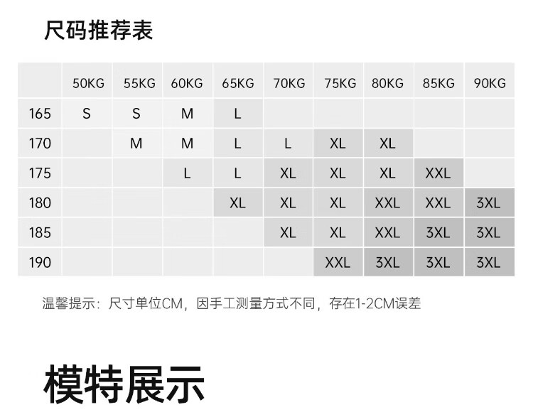China (cm) 165 / 88-90 170 / 96-98 175 / 108-110 180 / 118-122 185 / 126-130