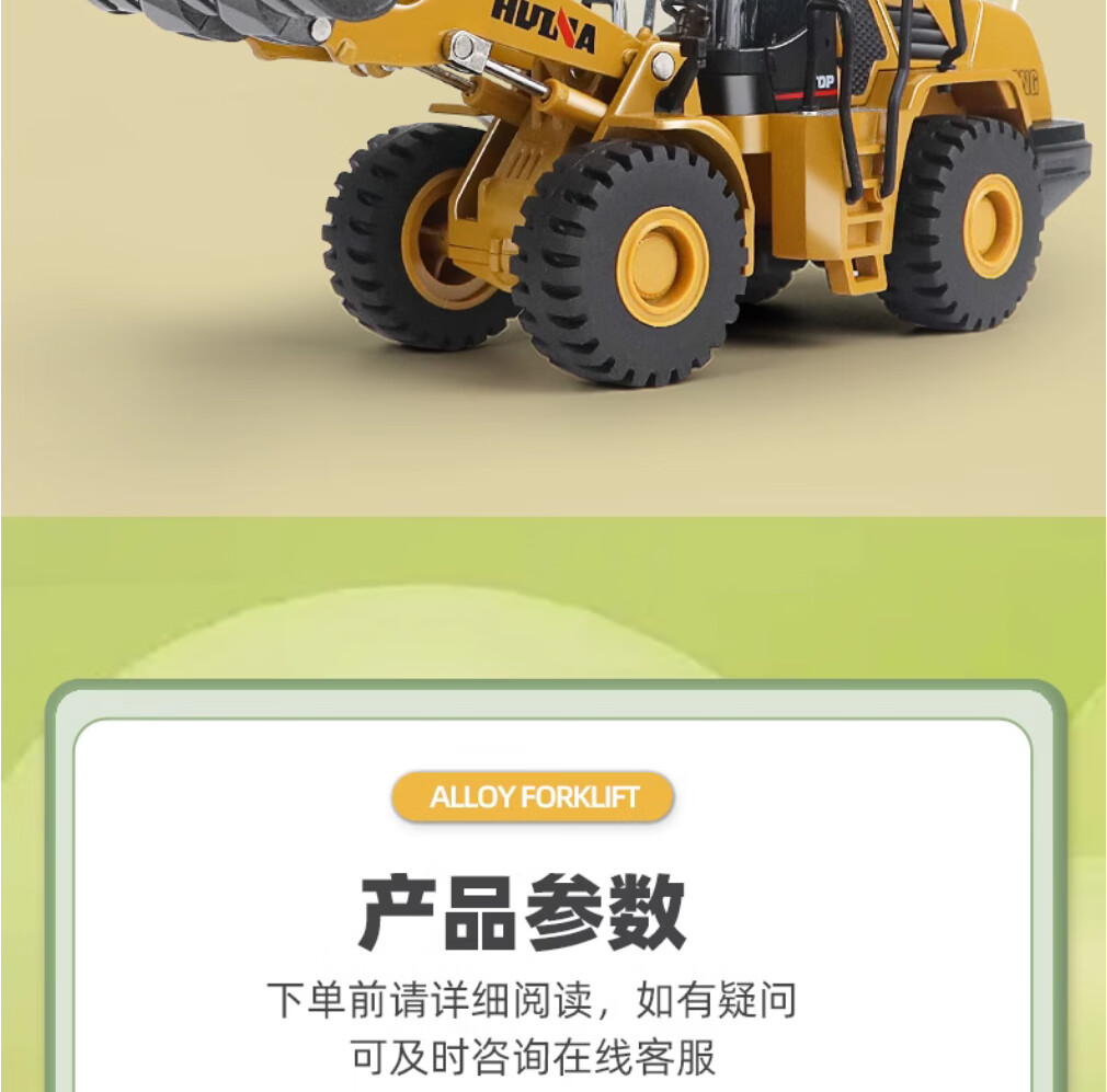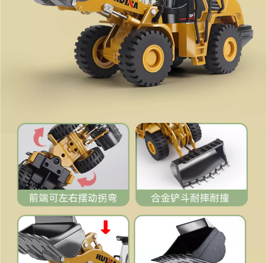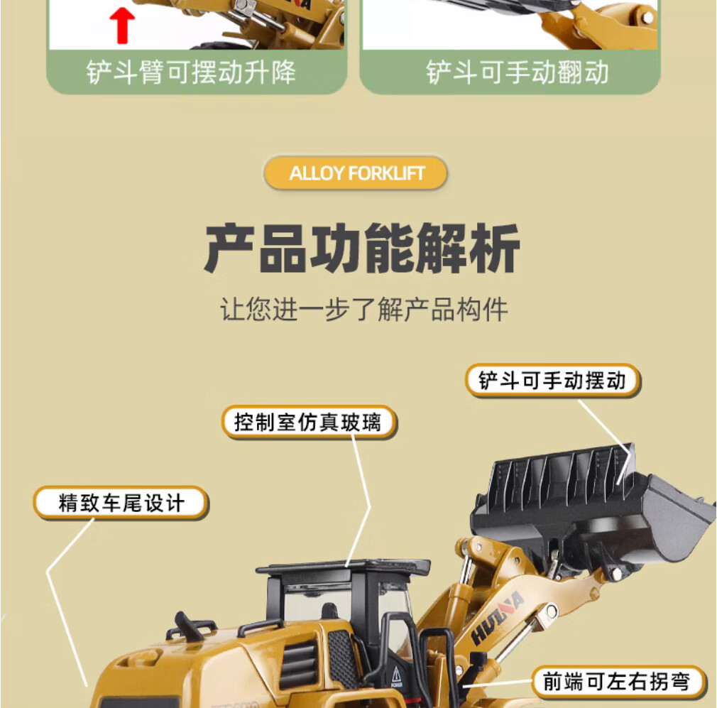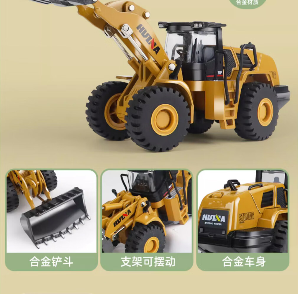 Huina model alloy engineering vehicle 1 50 loader truck bulldozer forklift static model hinged alloy inertia car model toy 1 50 alloy loader truck model 7714-1