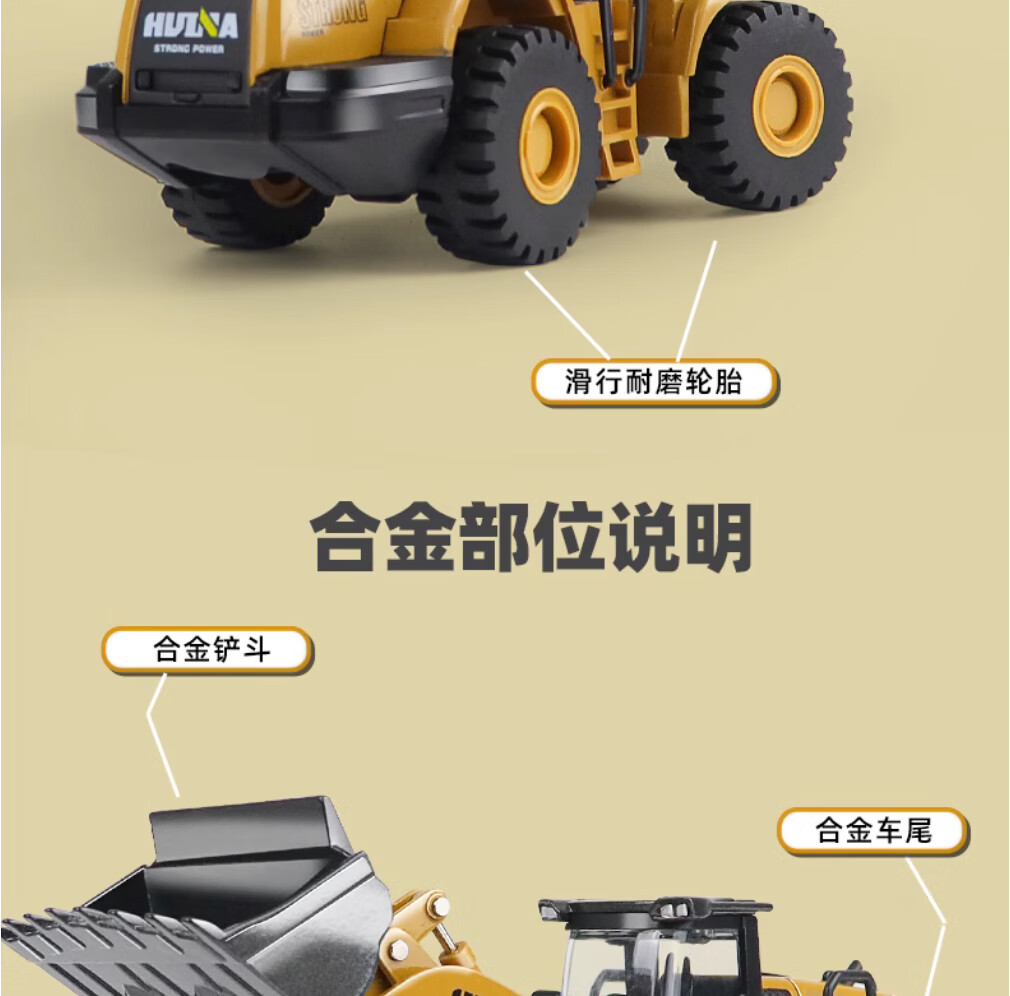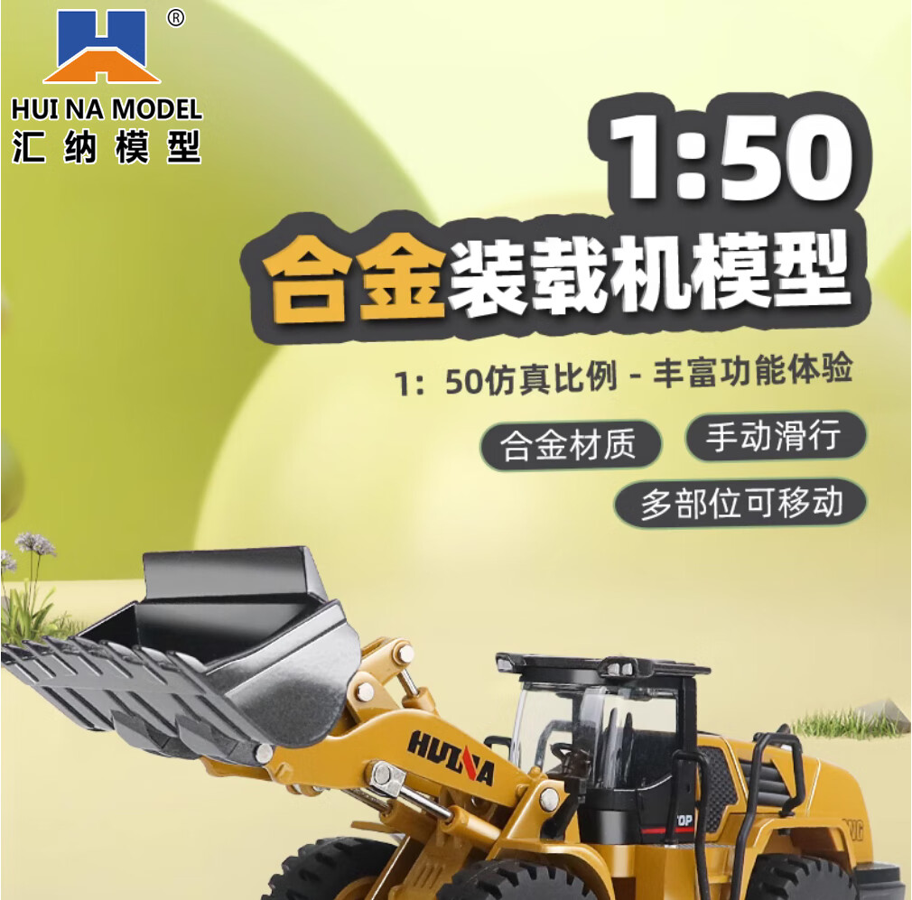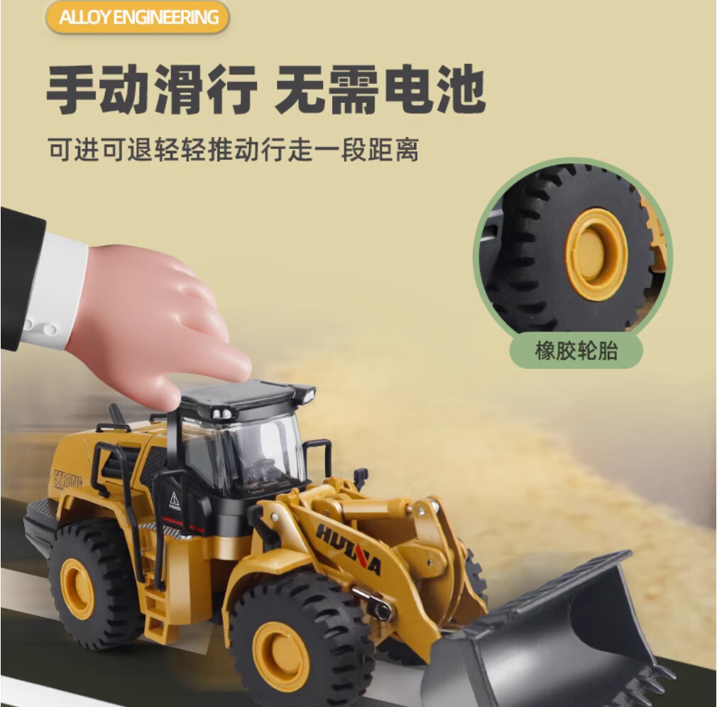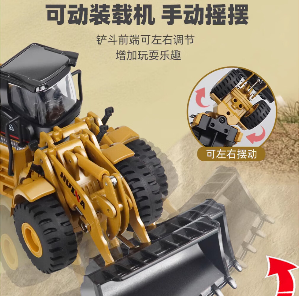 Huina model alloy engineering vehicle 1 50 loader truck bulldozer forklift static model hinged alloy inertia car model toy 1 50 alloy loader truck model 7714-1