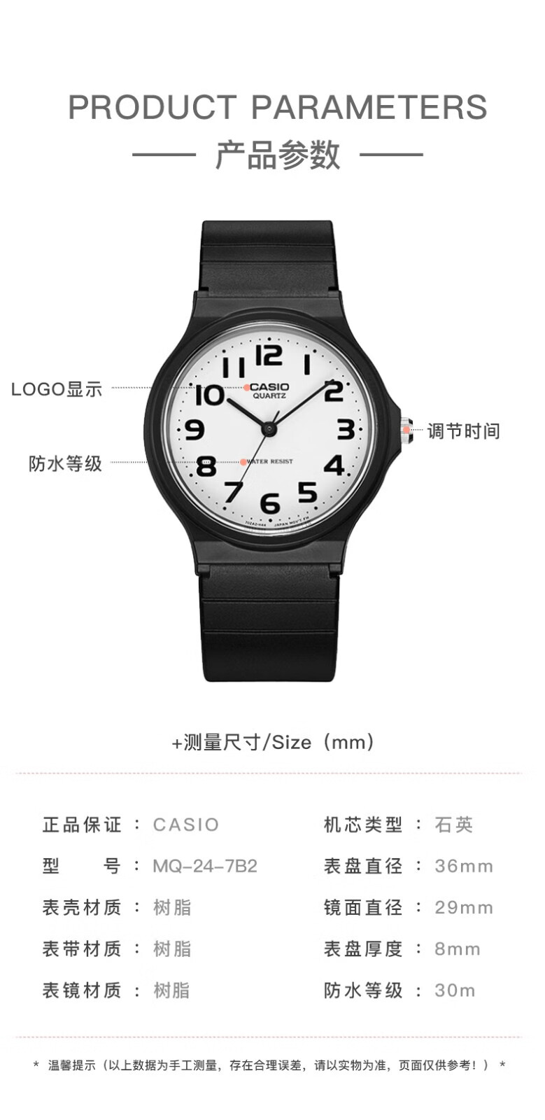 CASIO watch, Qiao Mei's same small black watch, simple, lightweight and versatile student watch, exam neutral watch, Valentine's Day gift MQ-24UC-8B recommended