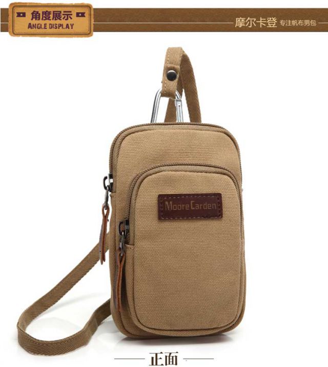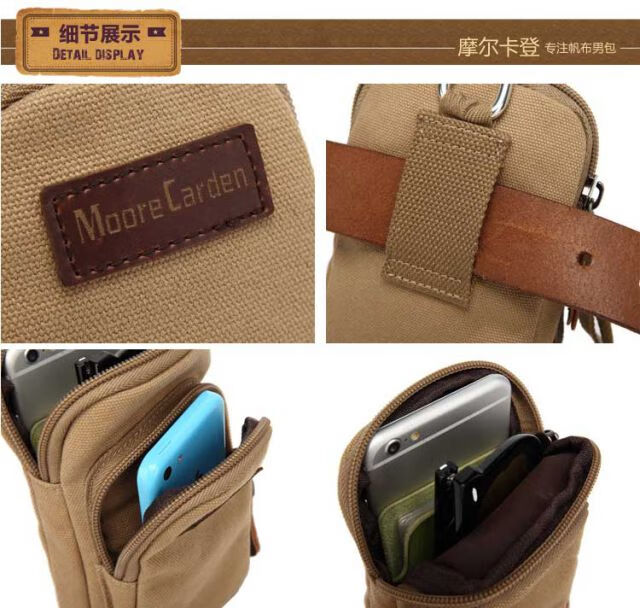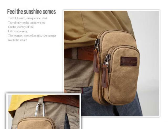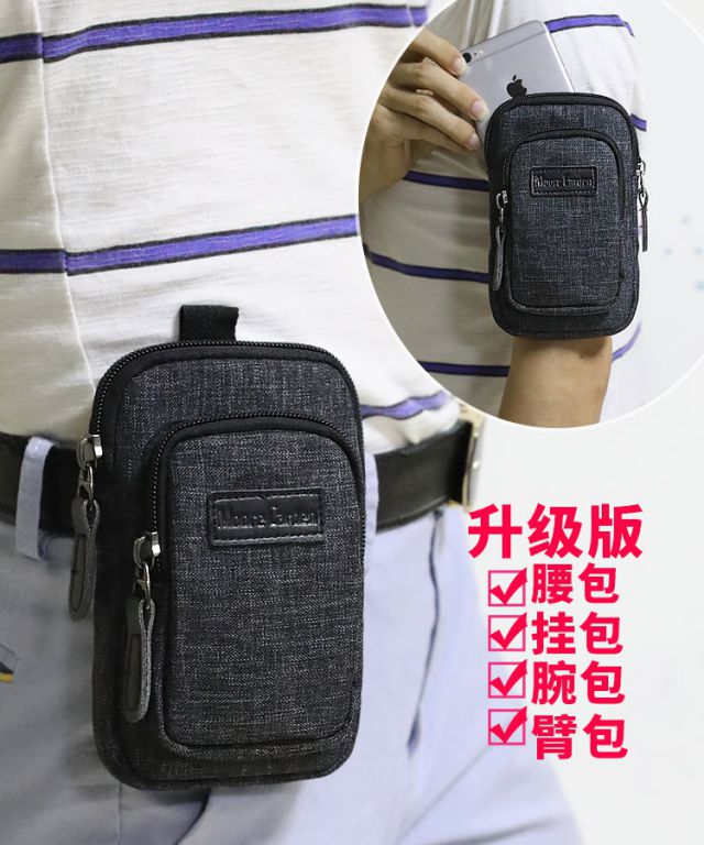 Men's waist bag holds mobile phone, mobile phone bag, men's running wrist bag, multi-functional canvas arm bag, construction site belt, men's belt, waist bag, mobile phone bag, upgraded version khaki
