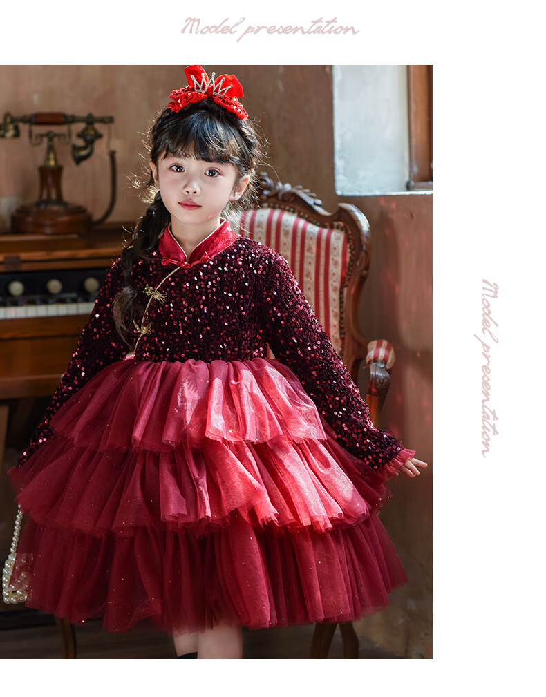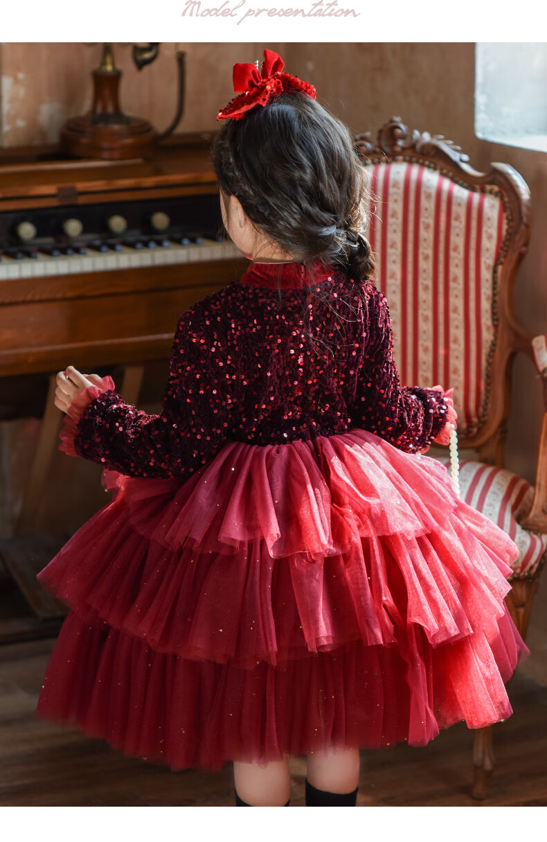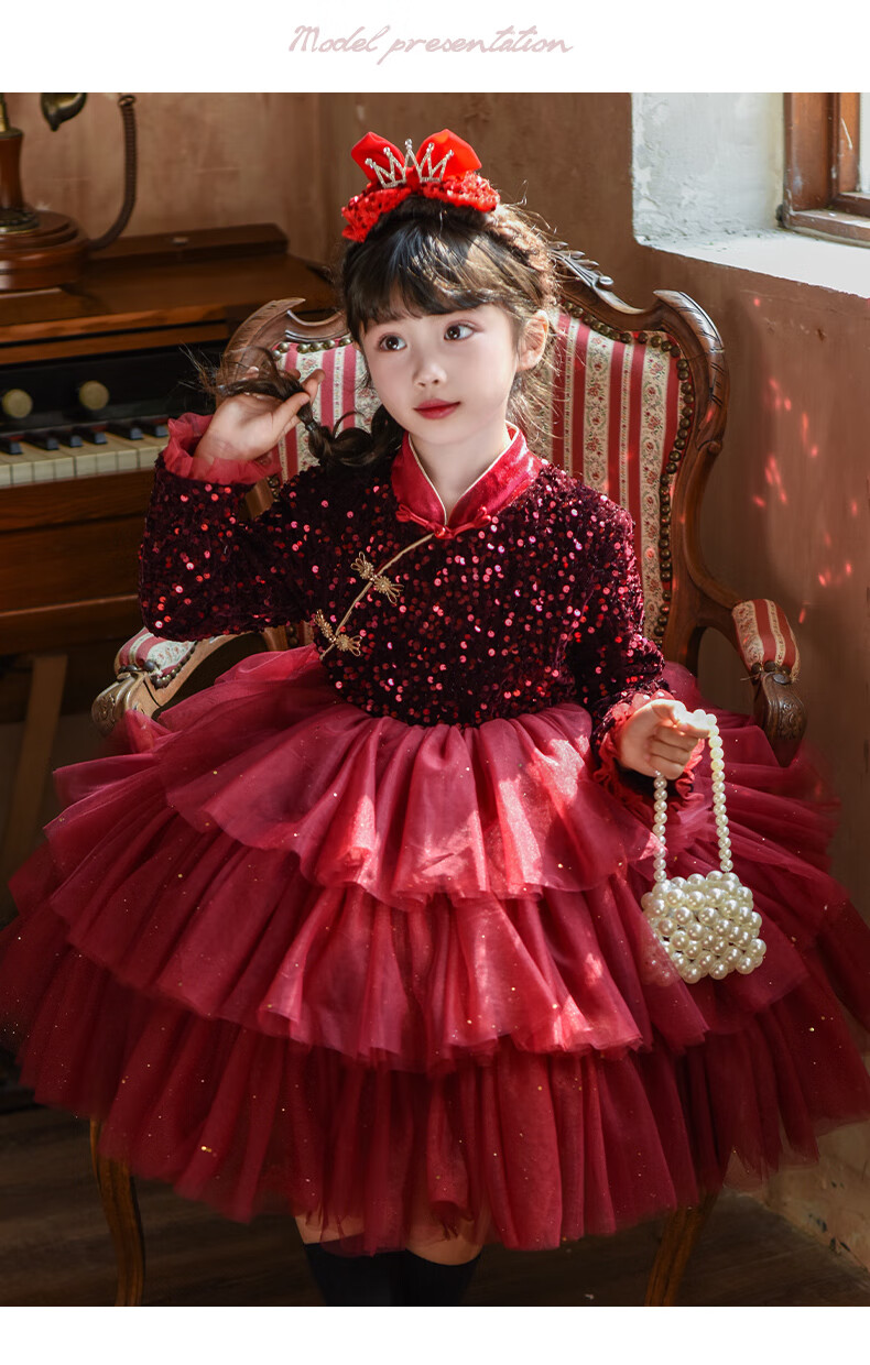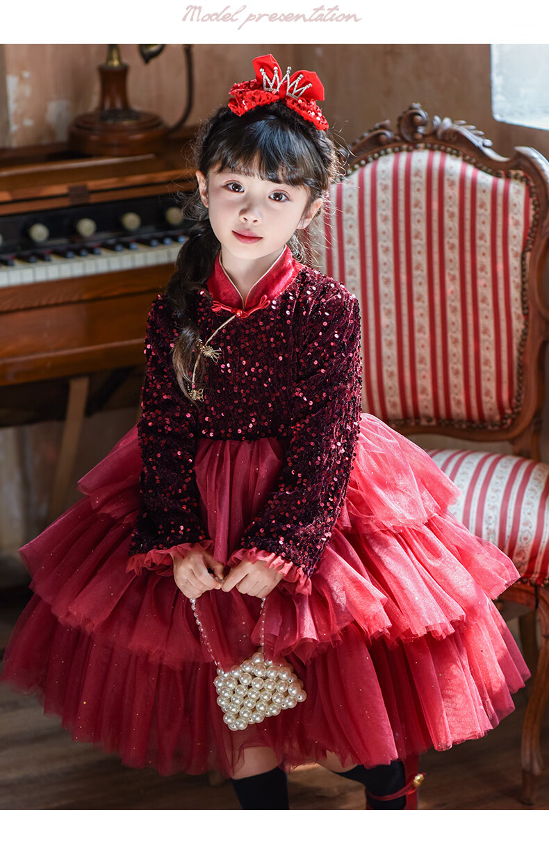 Nisha Beier Girls Red New Year Dress Children's Baby New Year Children's Clothes Skirt New Year's Eve Princess Dress Red 110