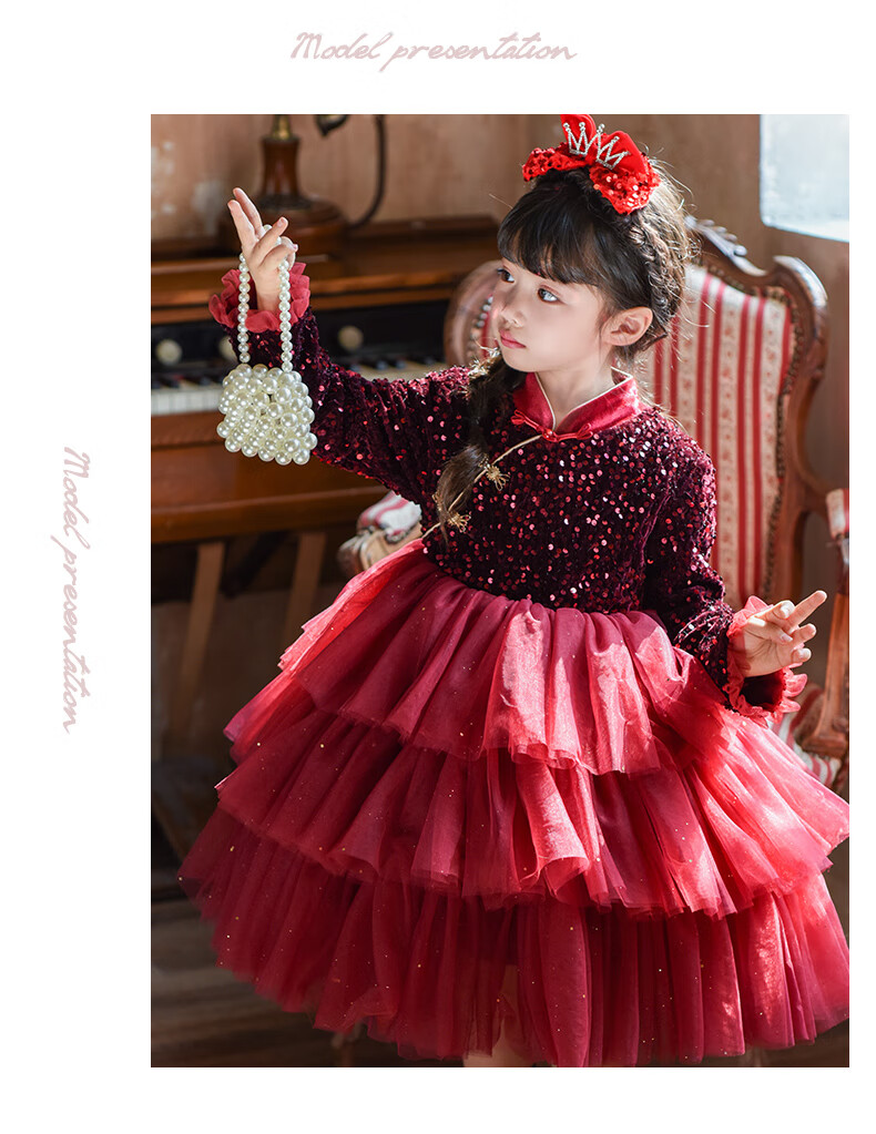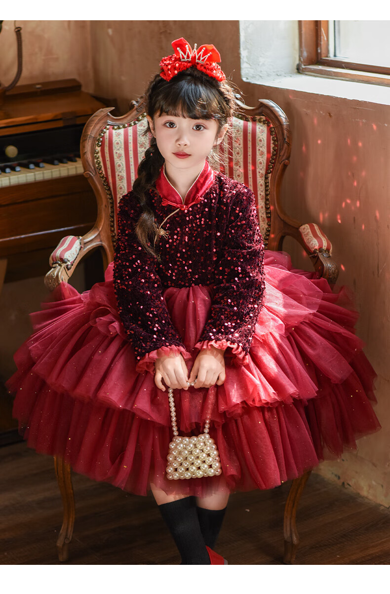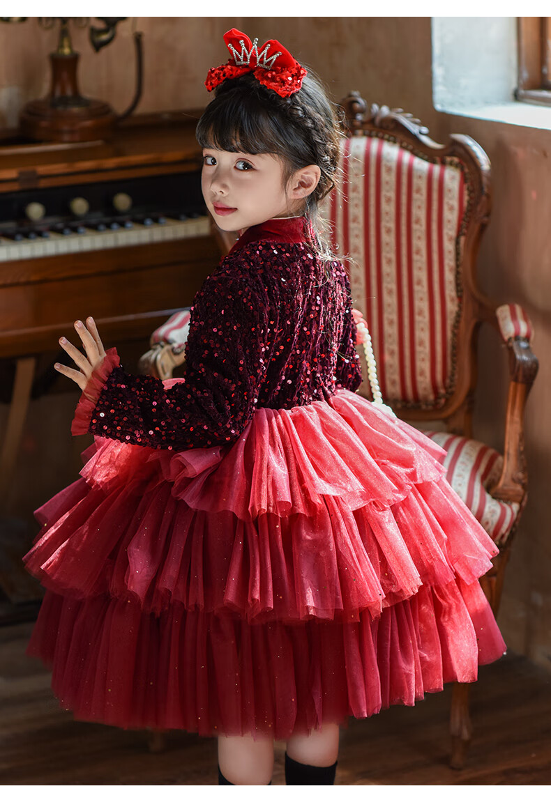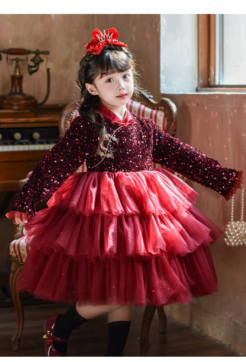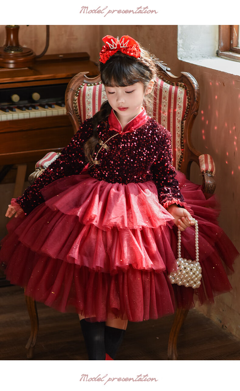 Nisha Beier Girls Red New Year Dress Children's Baby New Year Children's Clothes Skirt New Year's Eve Princess Dress Red 110