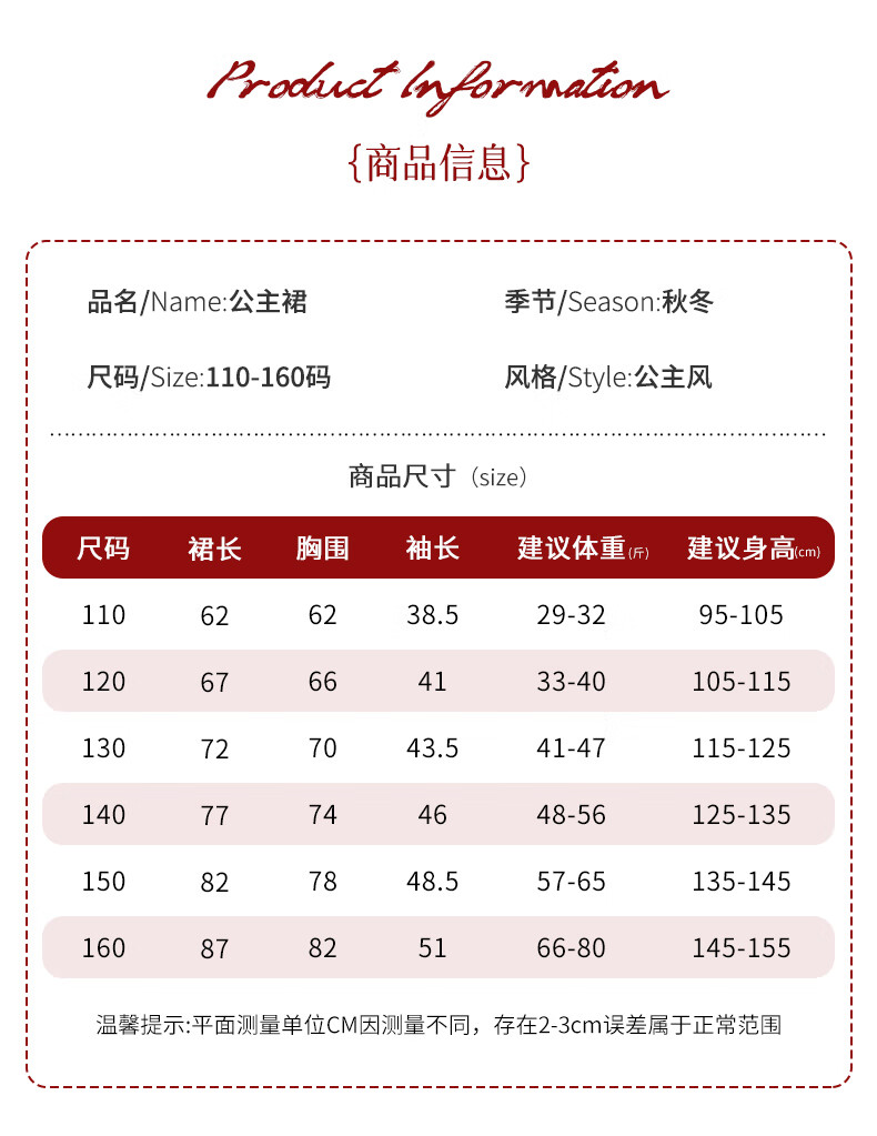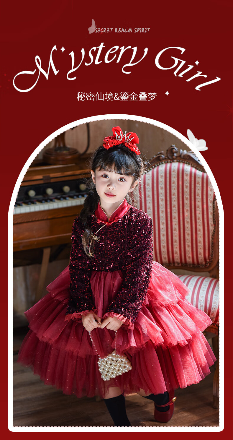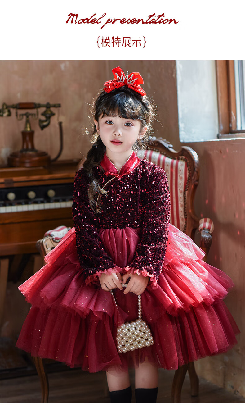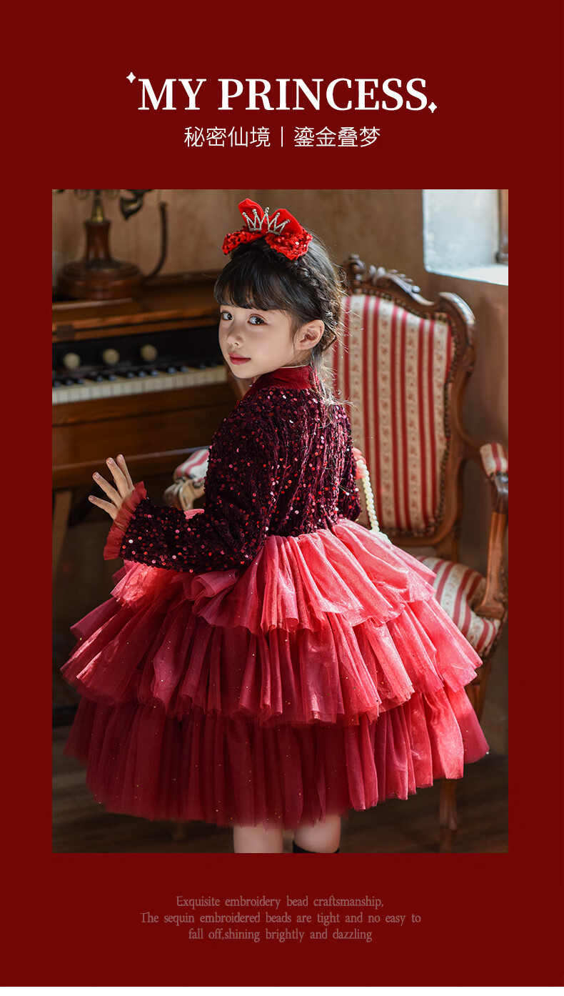 Nisha Beier Girls Red New Year Dress Children's Baby New Year Children's Clothes Skirt New Year's Eve Princess Dress Red 110