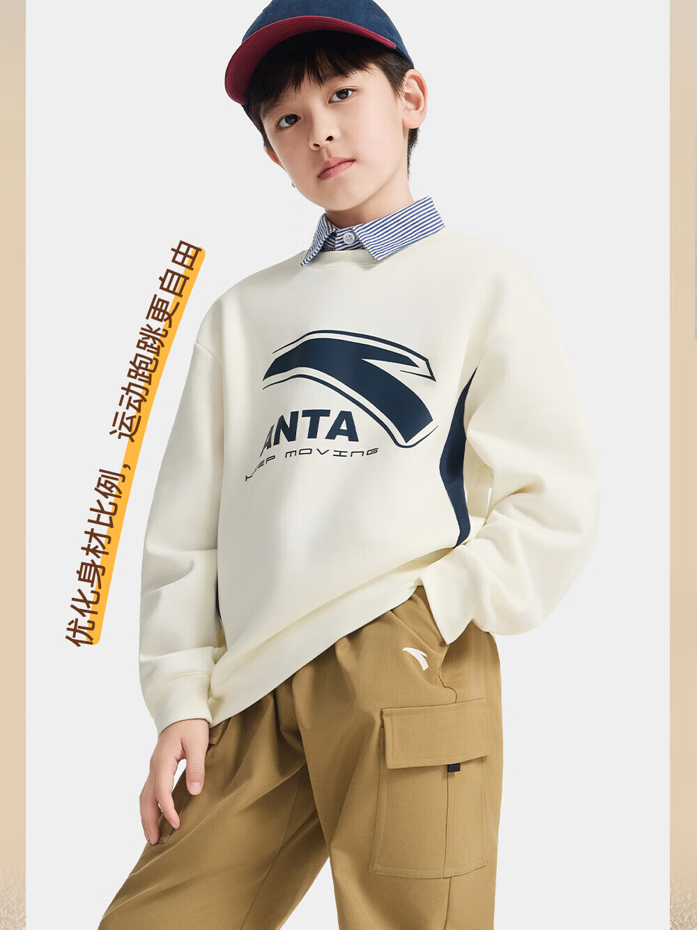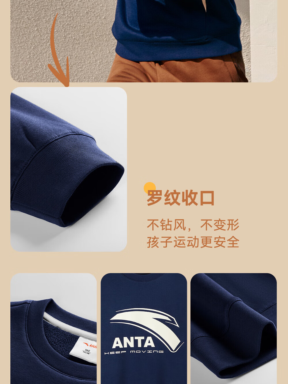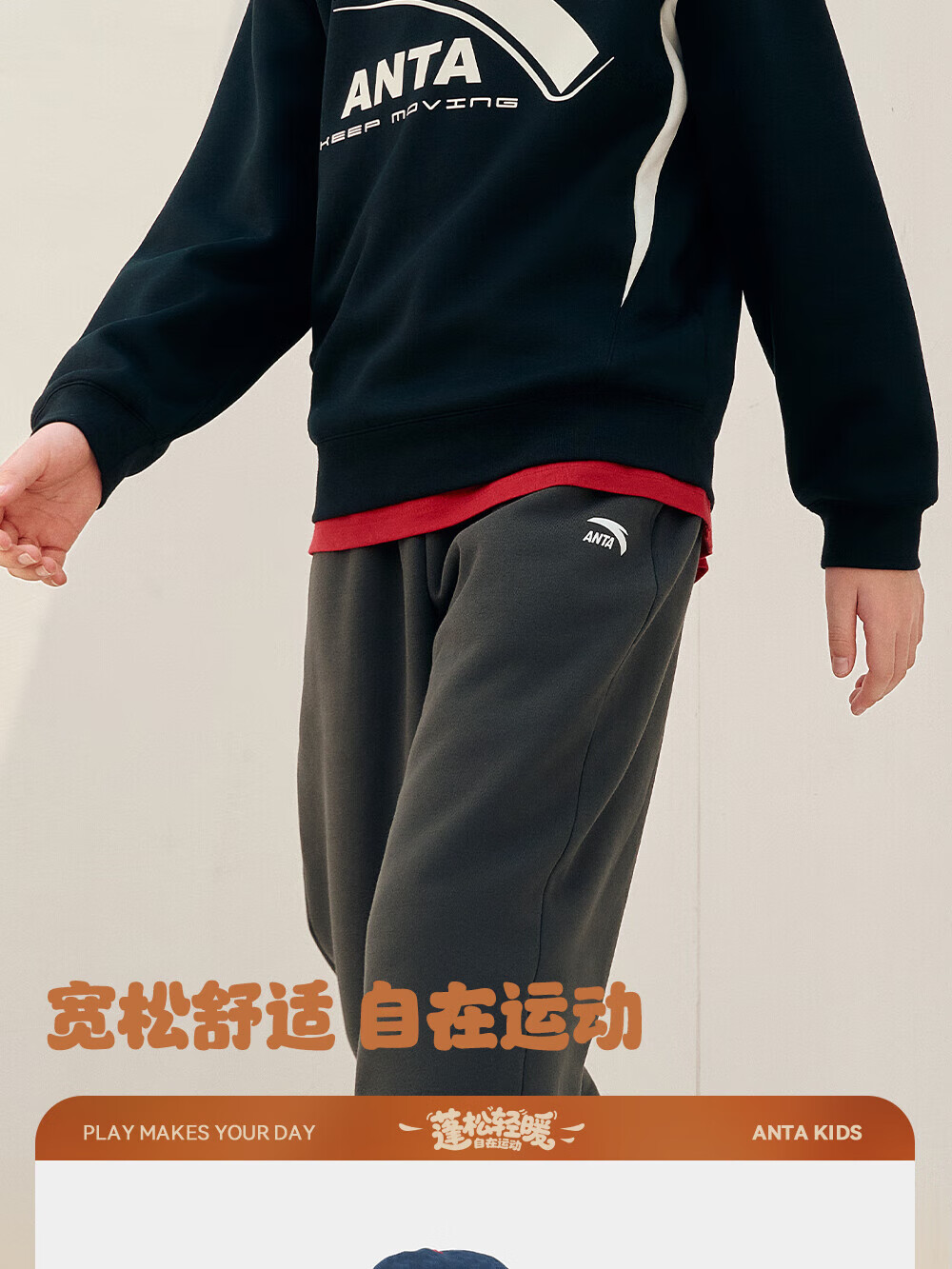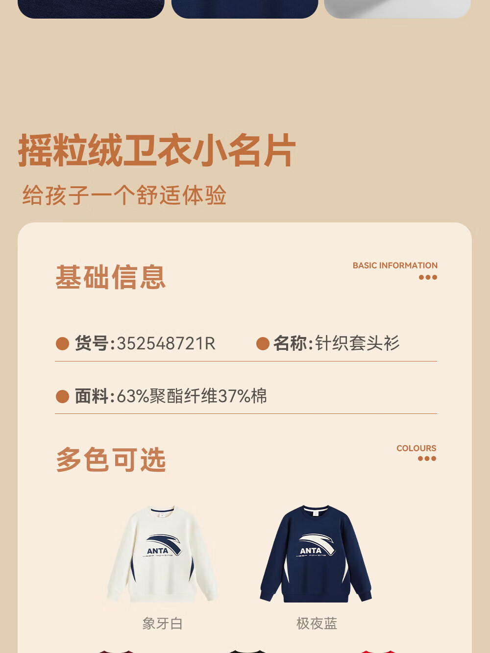 ANTA children's sweatshirt for boys and girls 2025 autumn and winter sweatshirt plus velvet warm sports knitted pullover 352548721R