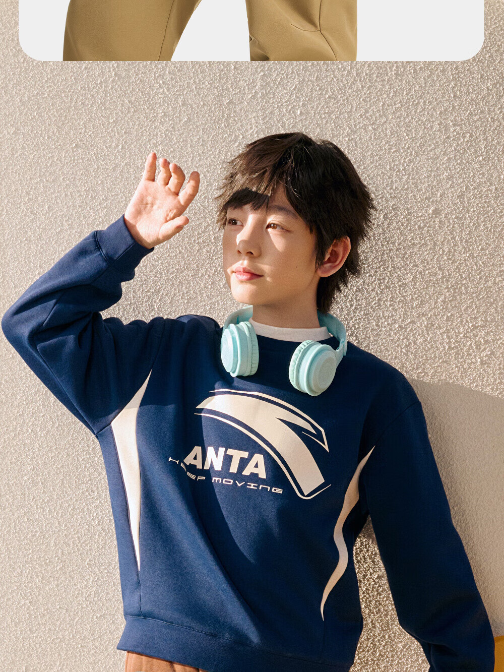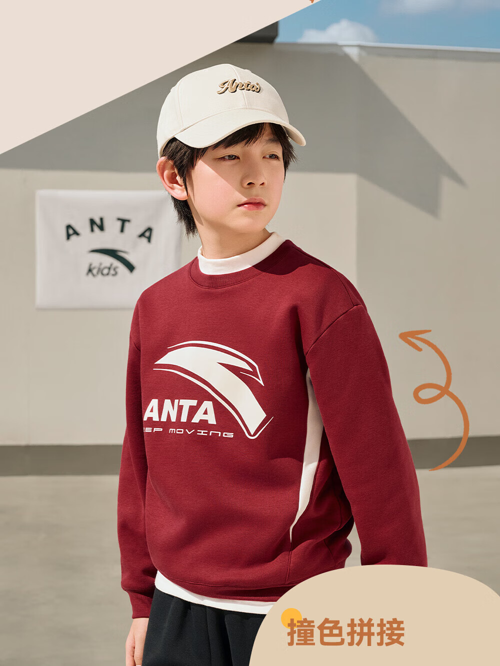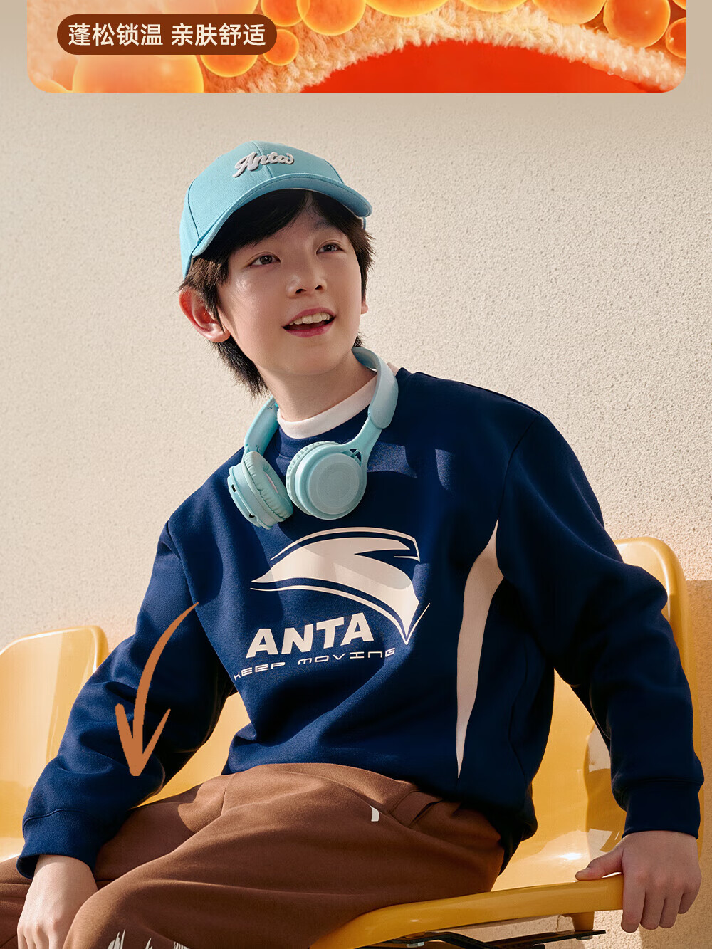 ANTA children's sweatshirt for boys and girls 2025 autumn and winter sweatshirt plus velvet warm sports knitted pullover 352548721R