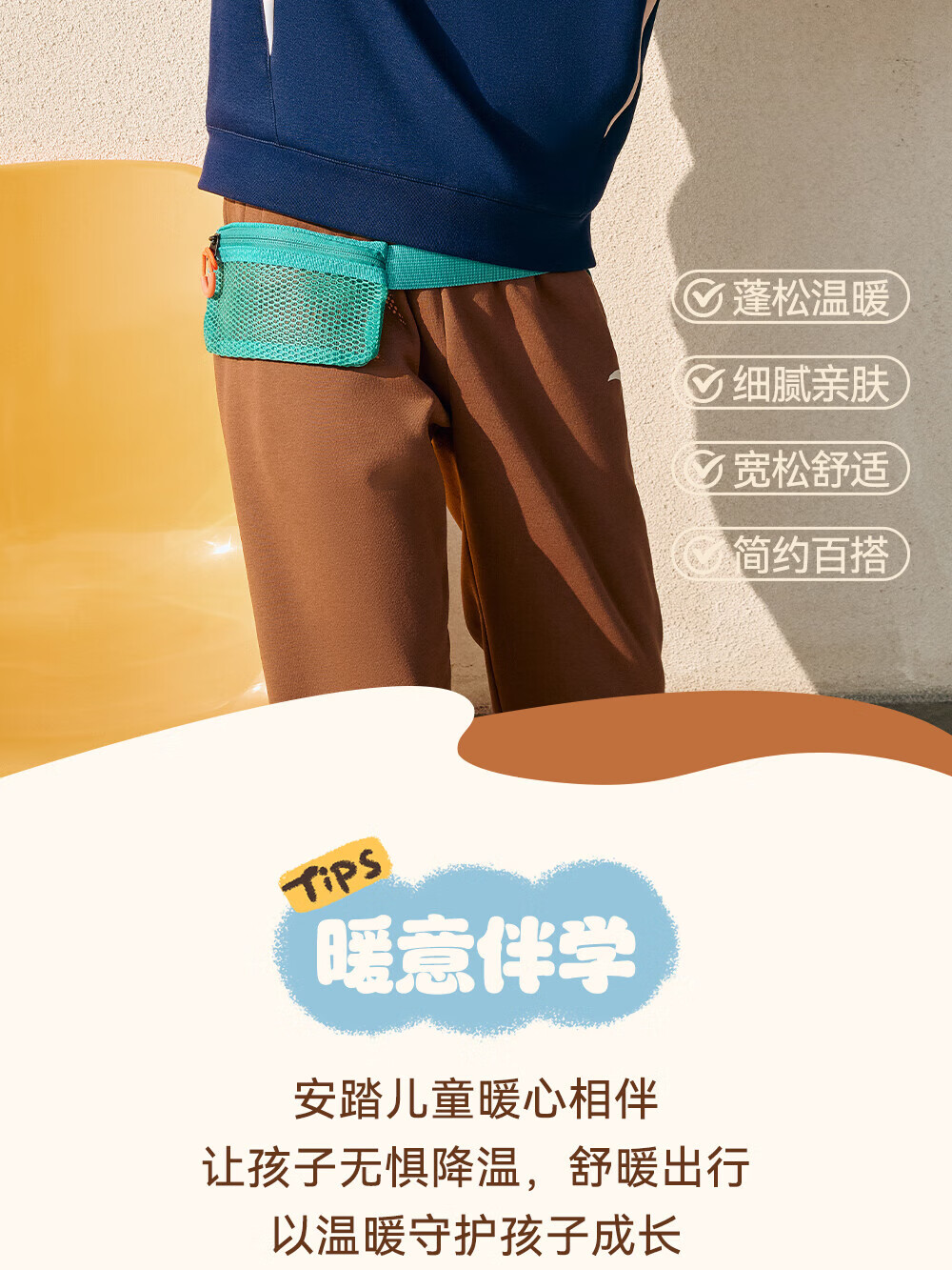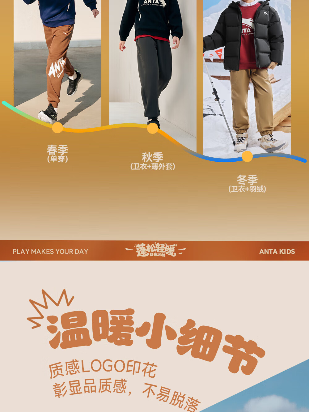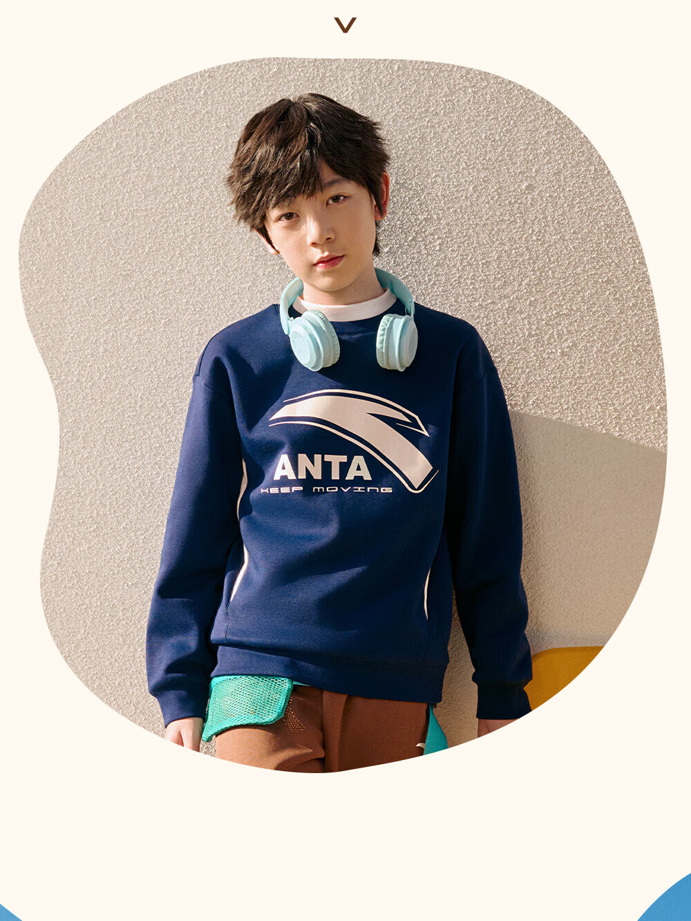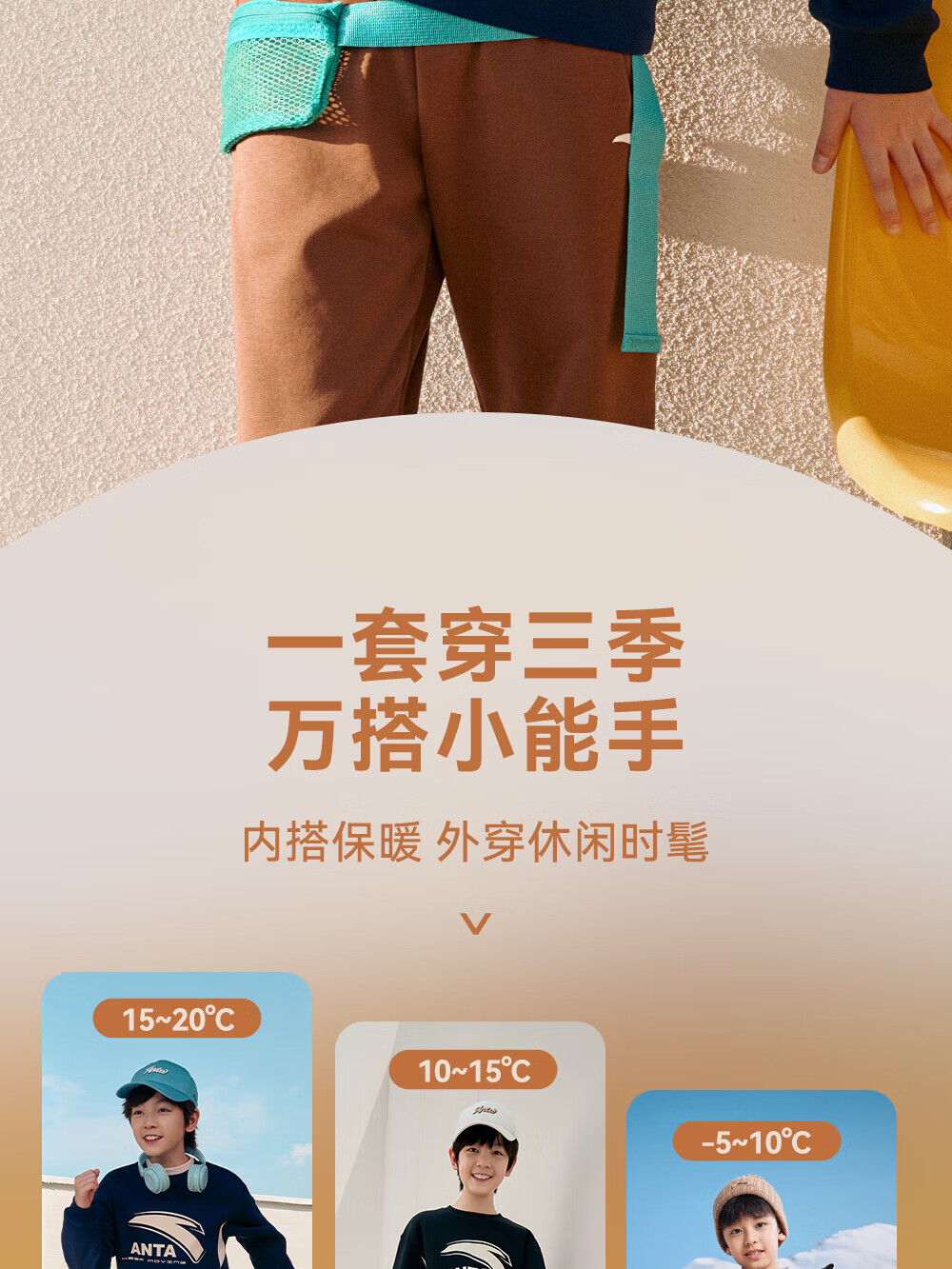 ANTA children's sweatshirt for boys and girls 2025 autumn and winter sweatshirt plus velvet warm sports knitted pullover 352548721R
