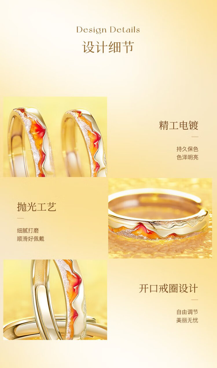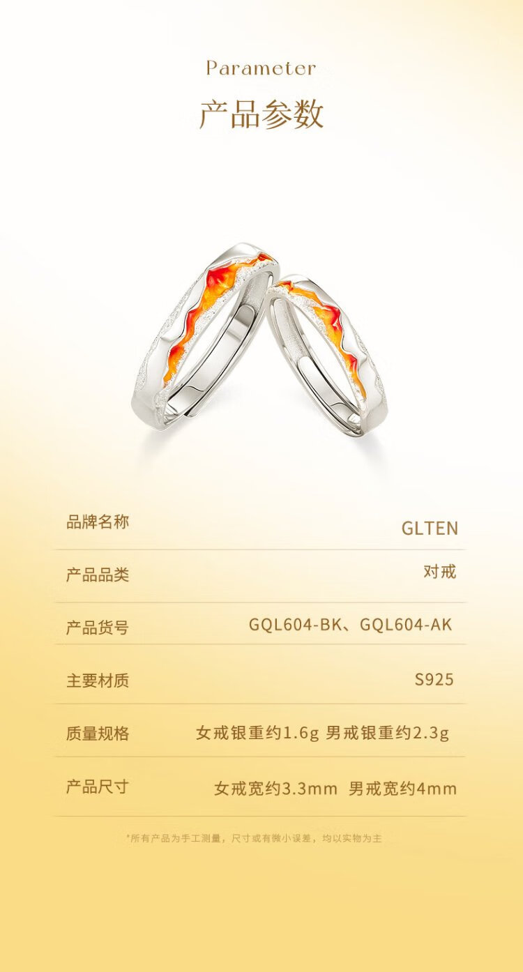 GLTEN Rizhao Jinshan couple's ring silver ring couple's light luxury high-end niche birthday gift for girlfriend and wife