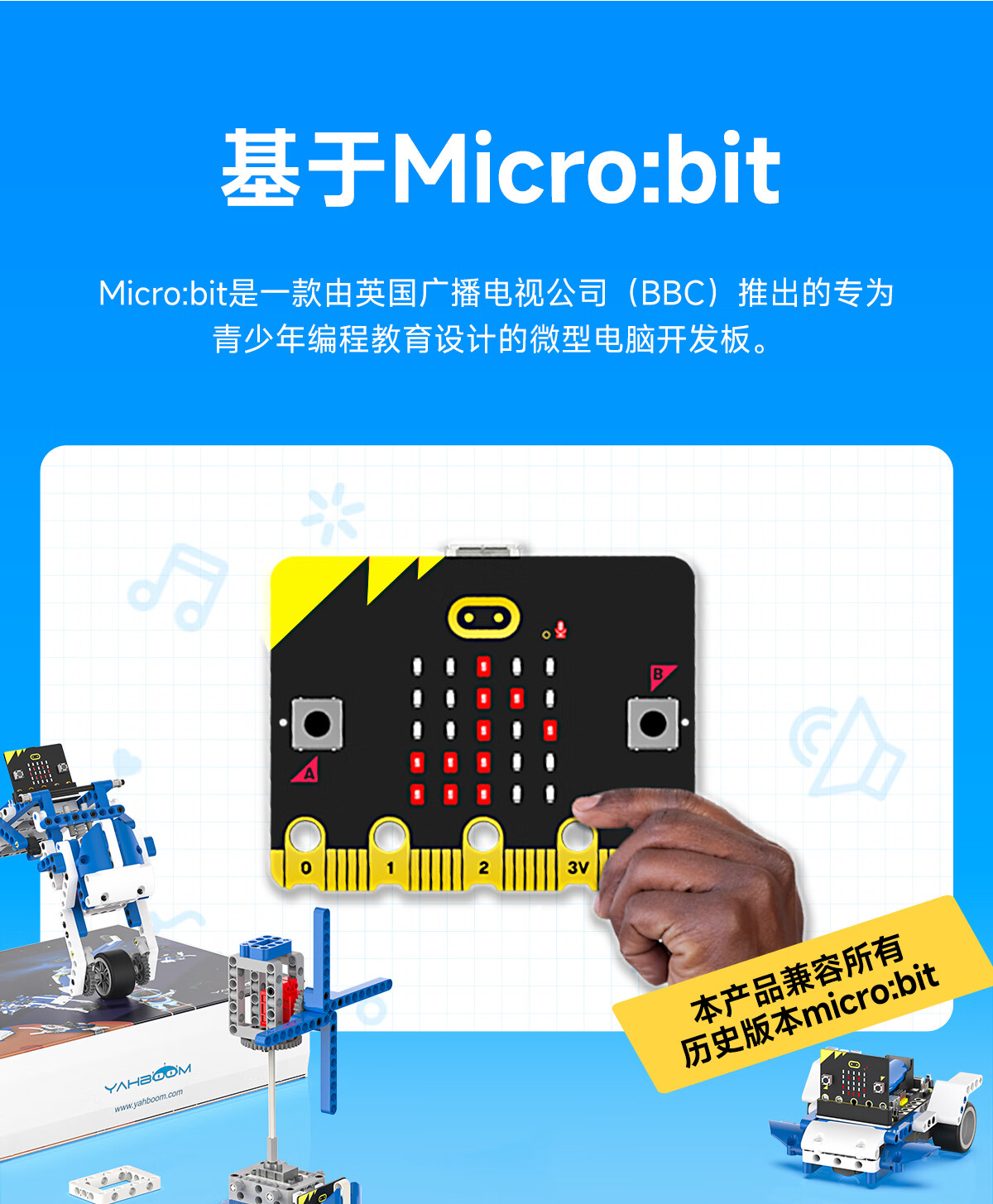 Yabo Intelligent microbit programmable building block robot kit graphical Python maker education V2 entry sensor advanced version (including Microbit V2 motherboard)