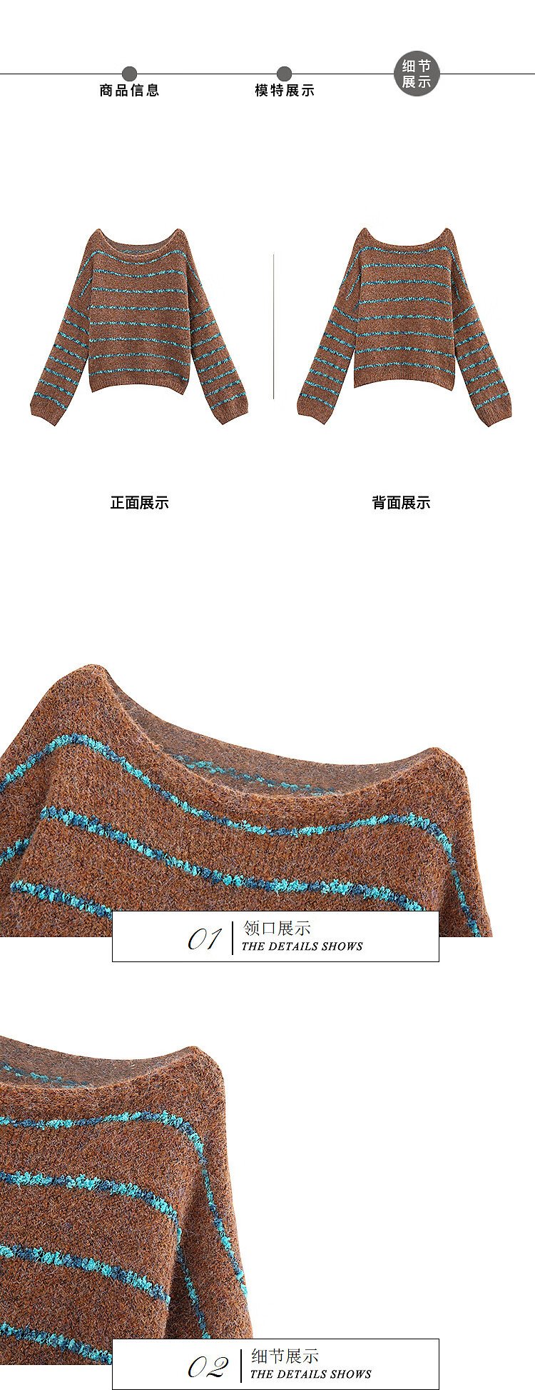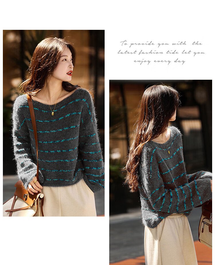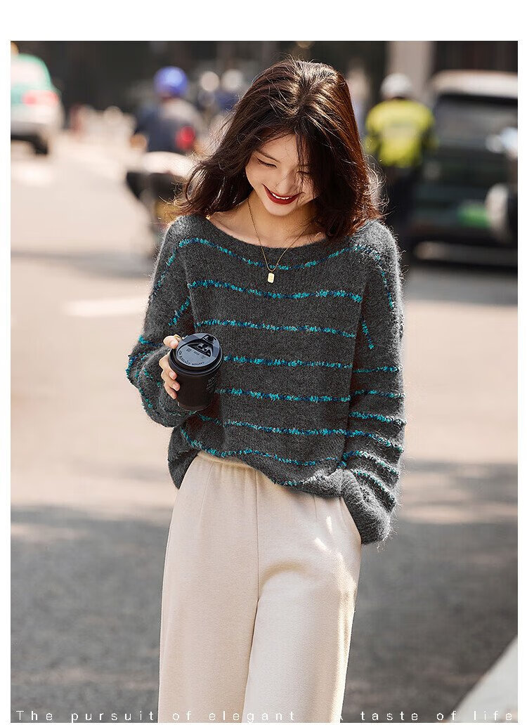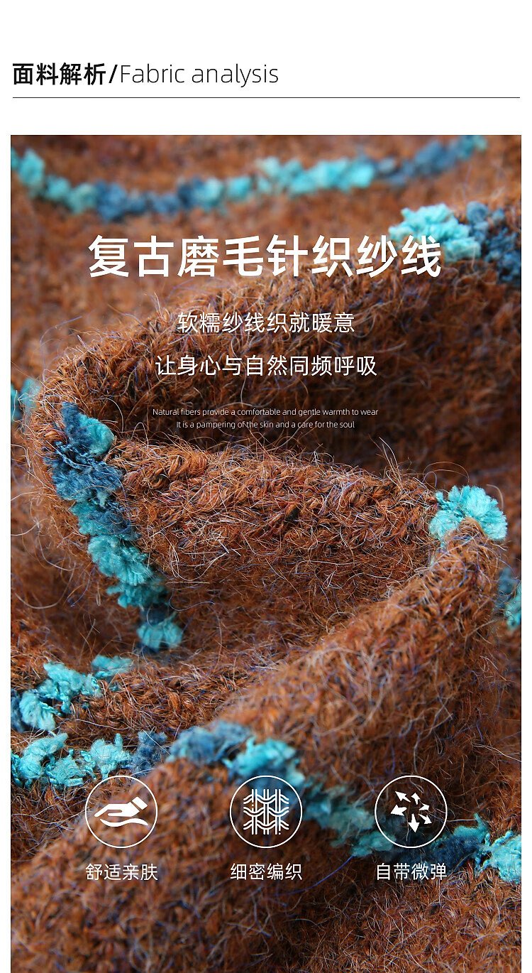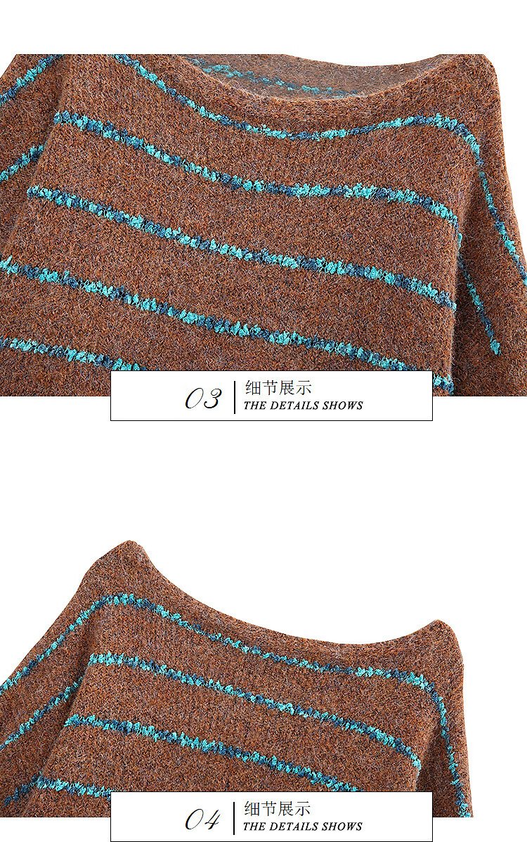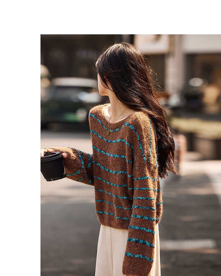 Awakening Paradise Winter Fashion Lazy Style Retro Brushed Temperament Round Neck Striped Sweater Pullover Knitwear Brown One Size
